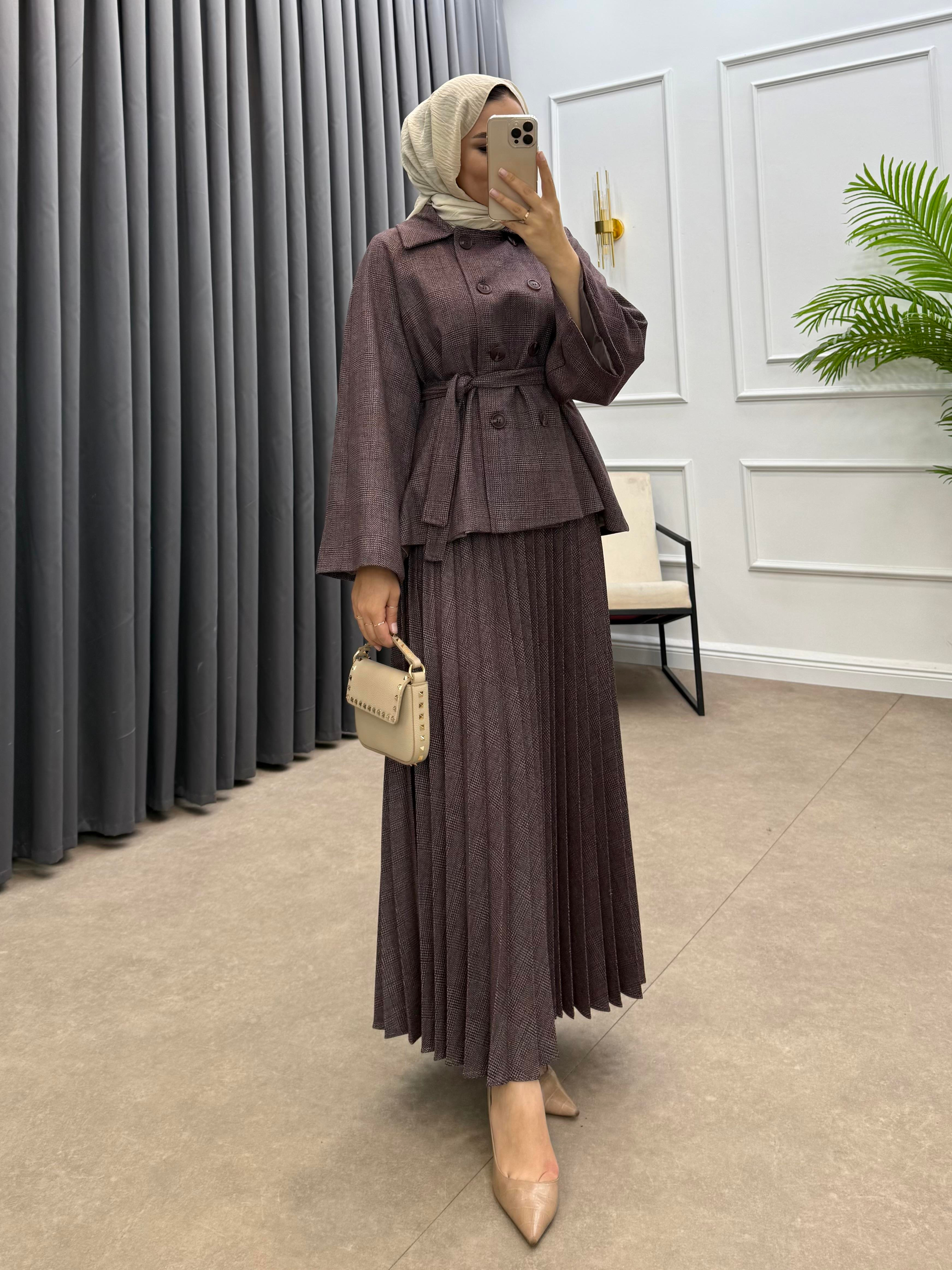 Ceket astarlı Etek (lastikli bel ) TEKNİK BİLGİLER Üst Boyu: 65 cm Etek Boyu: 97 cm Beden Aralığı: 1 / 2 Kumaş: Pamuklu (nefes alan, yumuşak, gün boyu konforlu) Bel Formu (Etek): Tam elastik lastikli DETAYLAR İkili set formunda pratik ve uyumlu kombin çözümü. Pamuklu dokusu sayesinde yumuşak tutum ve hava geçirgenliği. Lastikli bel eteği farklı vücut tiplerine uyumlu kılar. Opak yapı iç göstermez. Mevsim geçişleri ve yaz aylarına uygun hafiflikte. BEDEN SEÇENEKLERİ 1 Beden (36-38-40 uyumlu) 2 Beden (42-44-46 uyumlu)