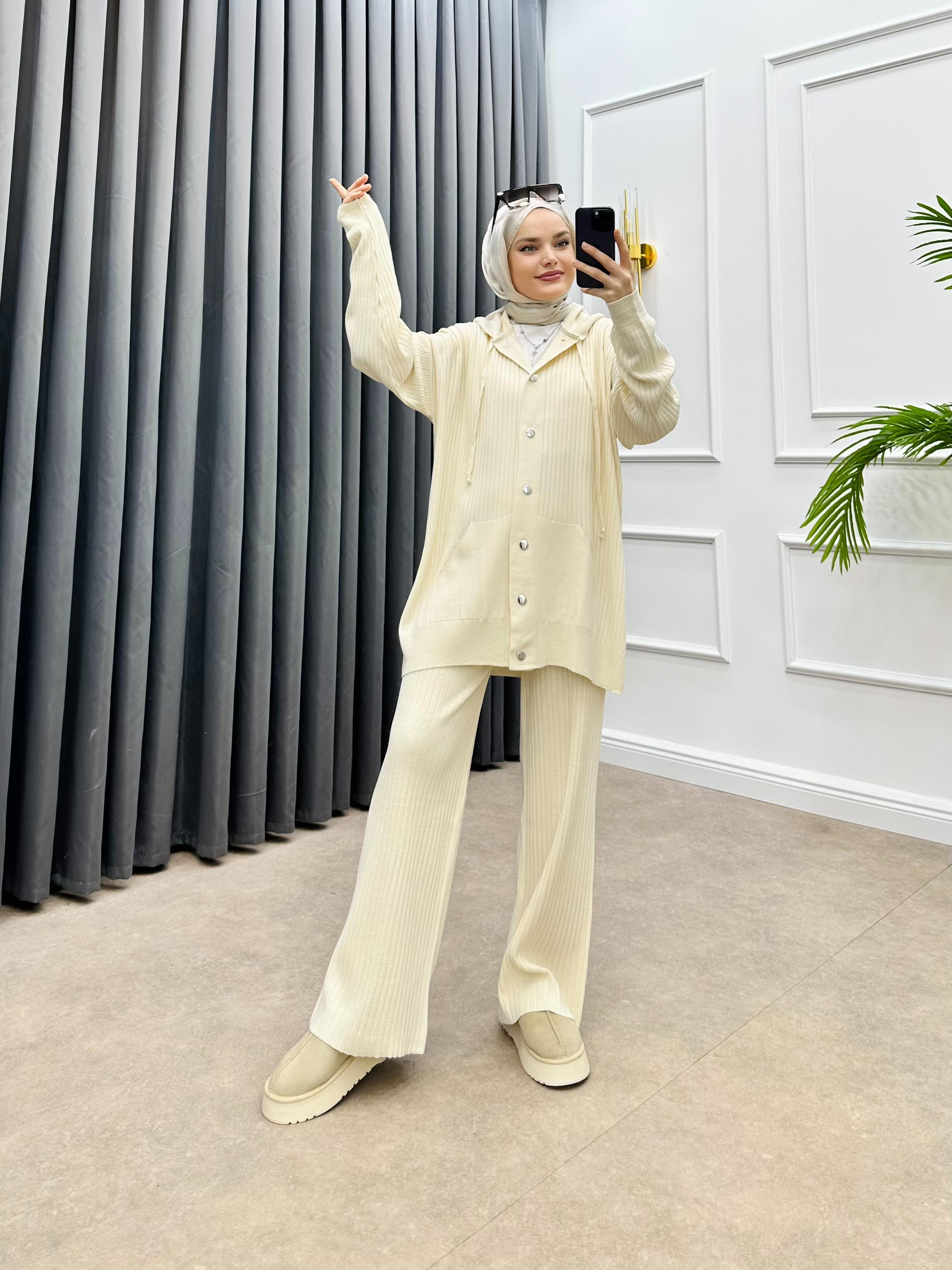 ELA ÖNDEN DÜĞMELİ TRİKO TAKIM KREM