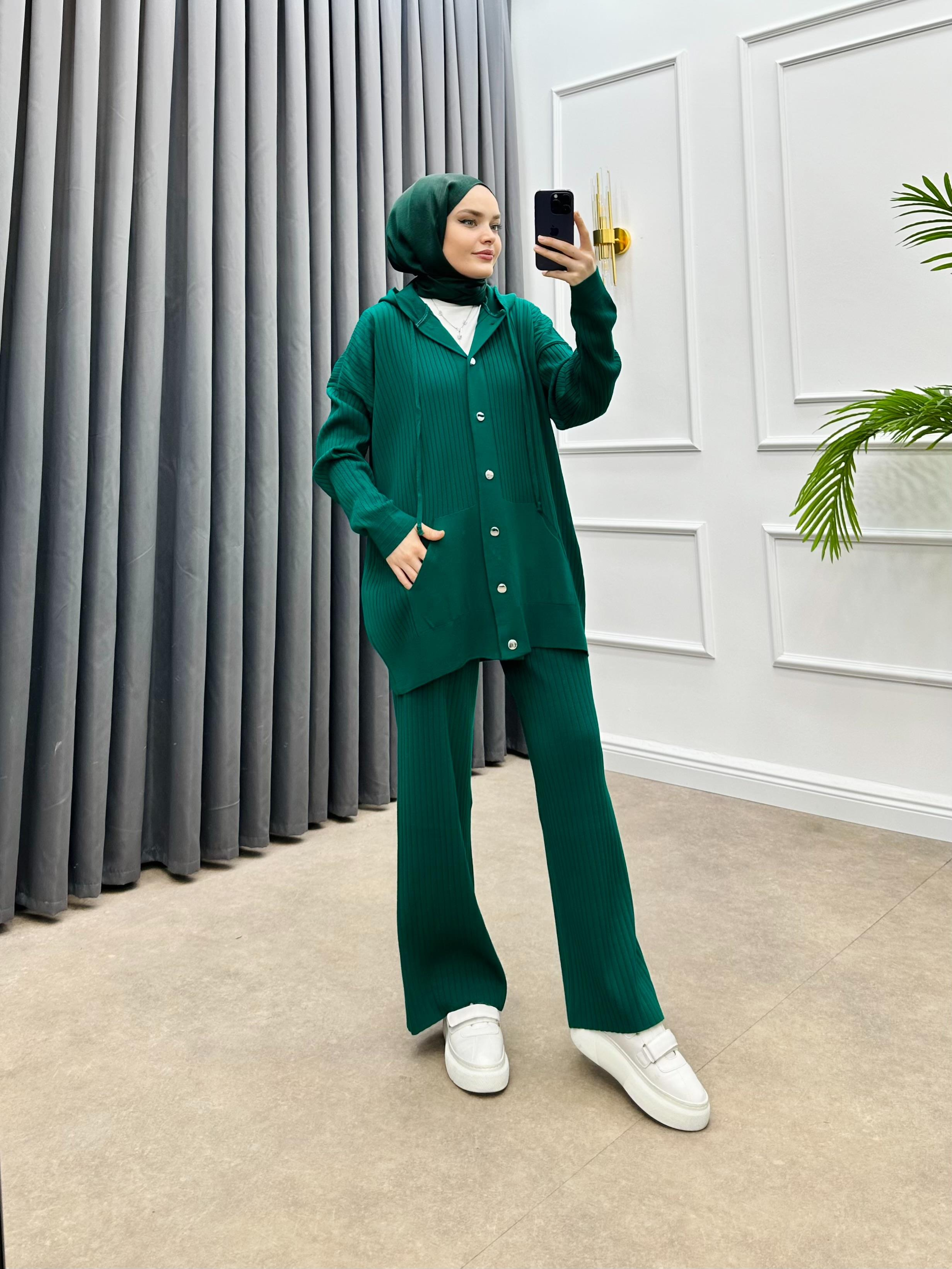 ELA ÖNDEN DÜĞMELİ TRİKO TAKIM ZÜMRÜT