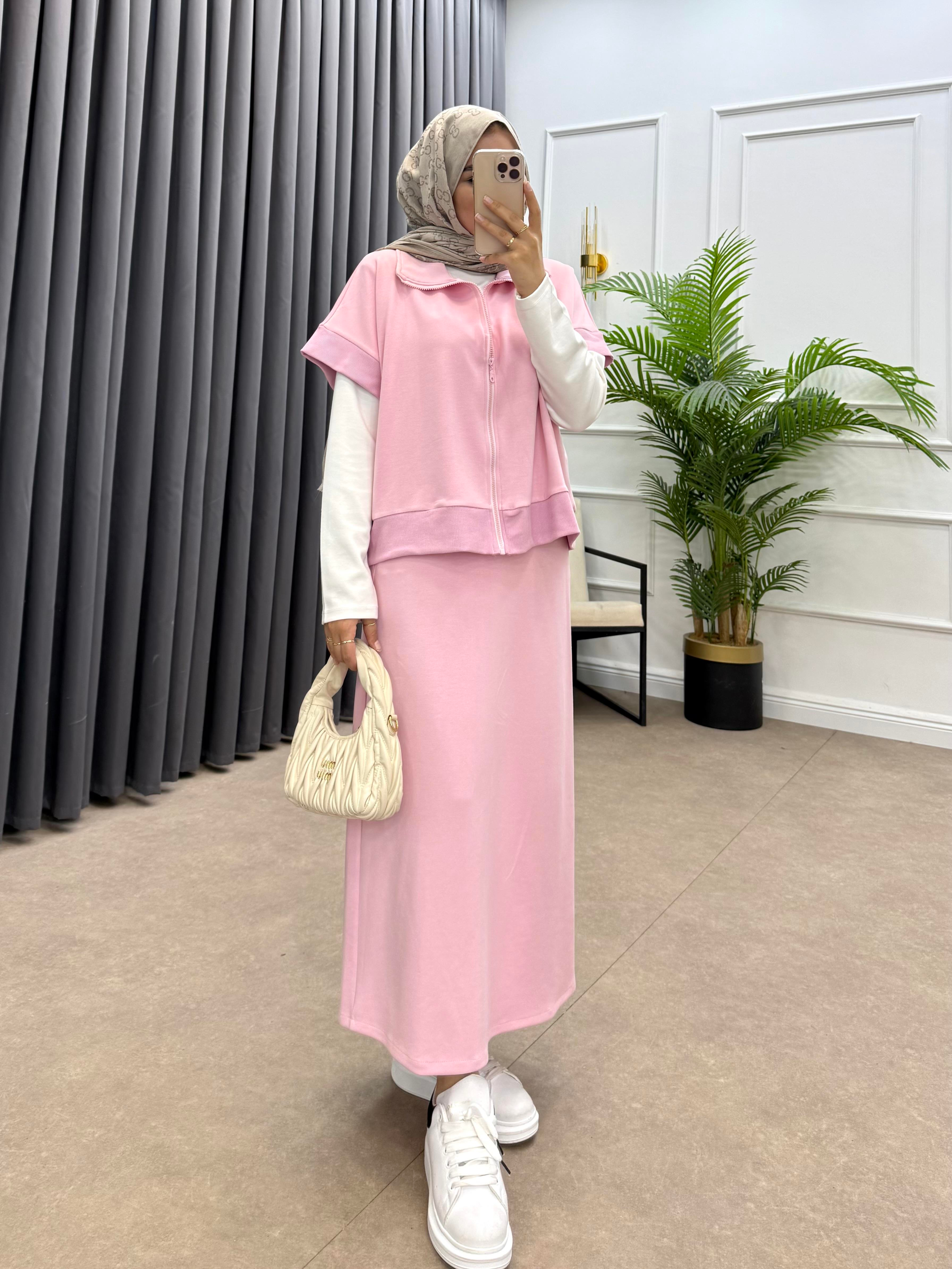 KALEM ETEKLİ YELEKLİ TAKIM PEMBE