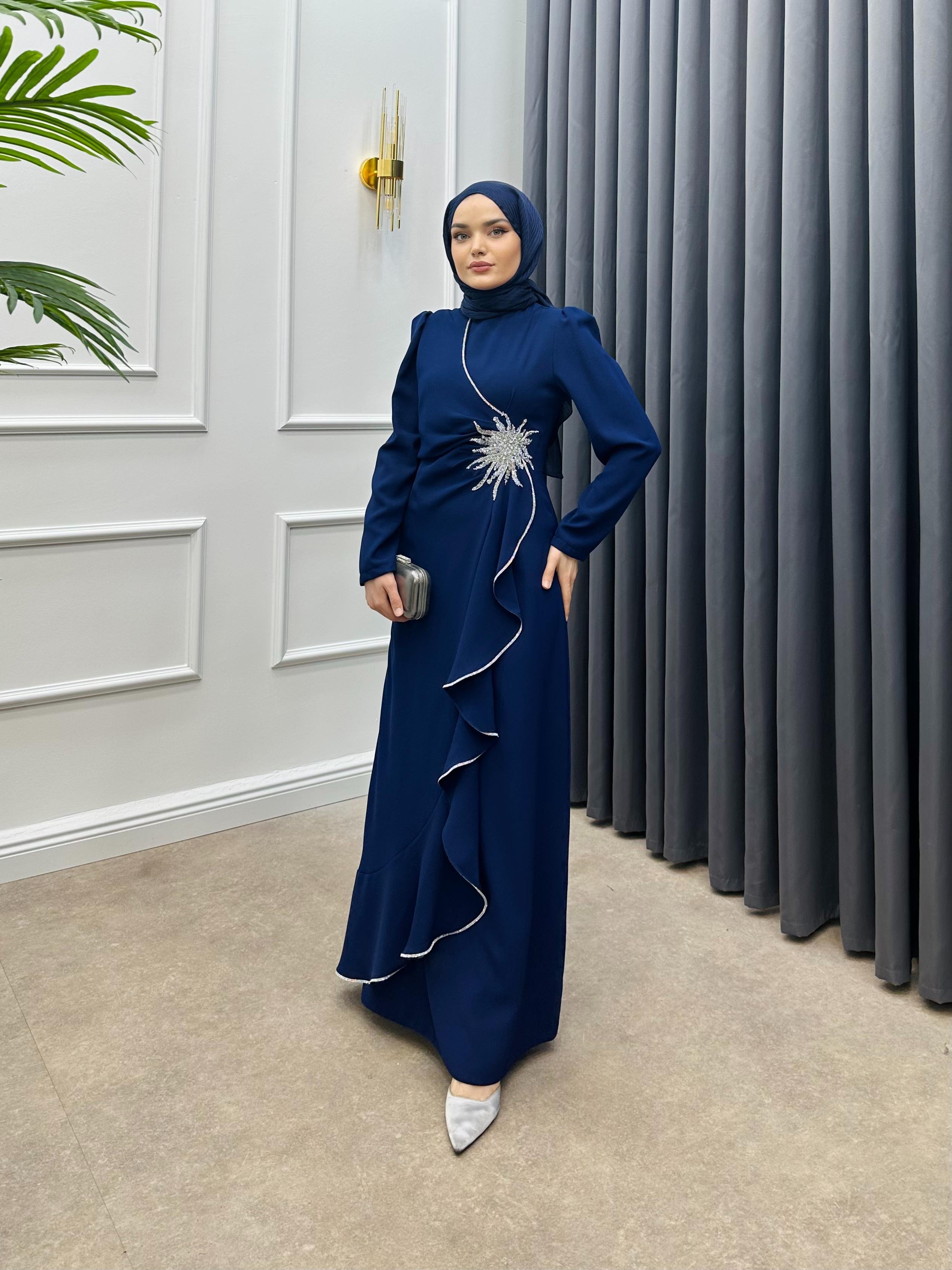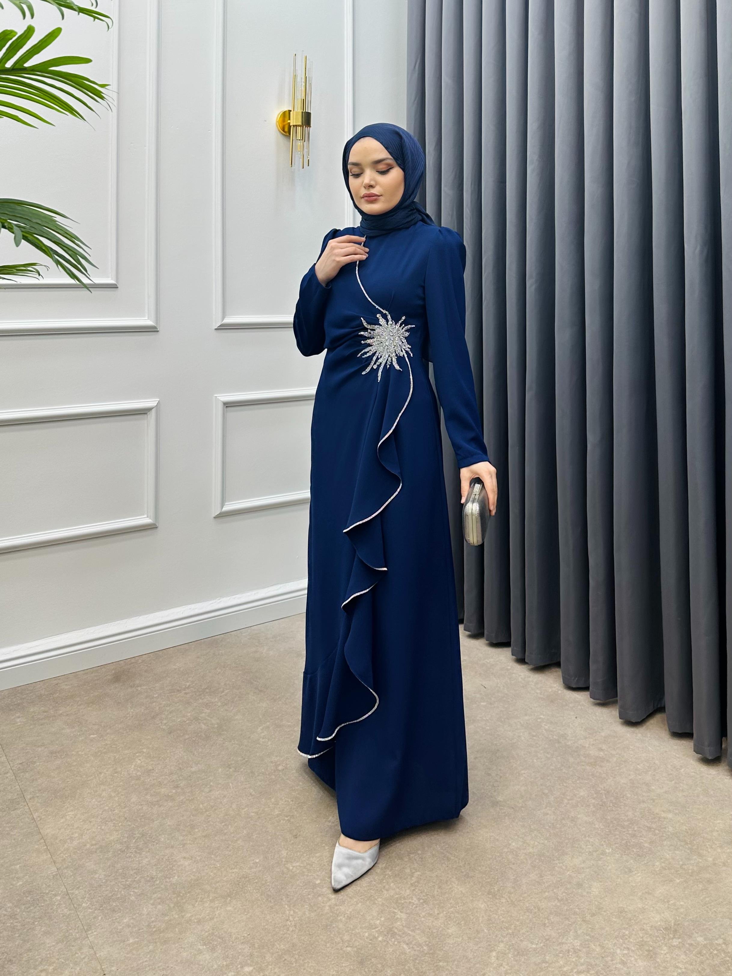 AKSESUAR DETAY KREP ABİYE LACİVERT