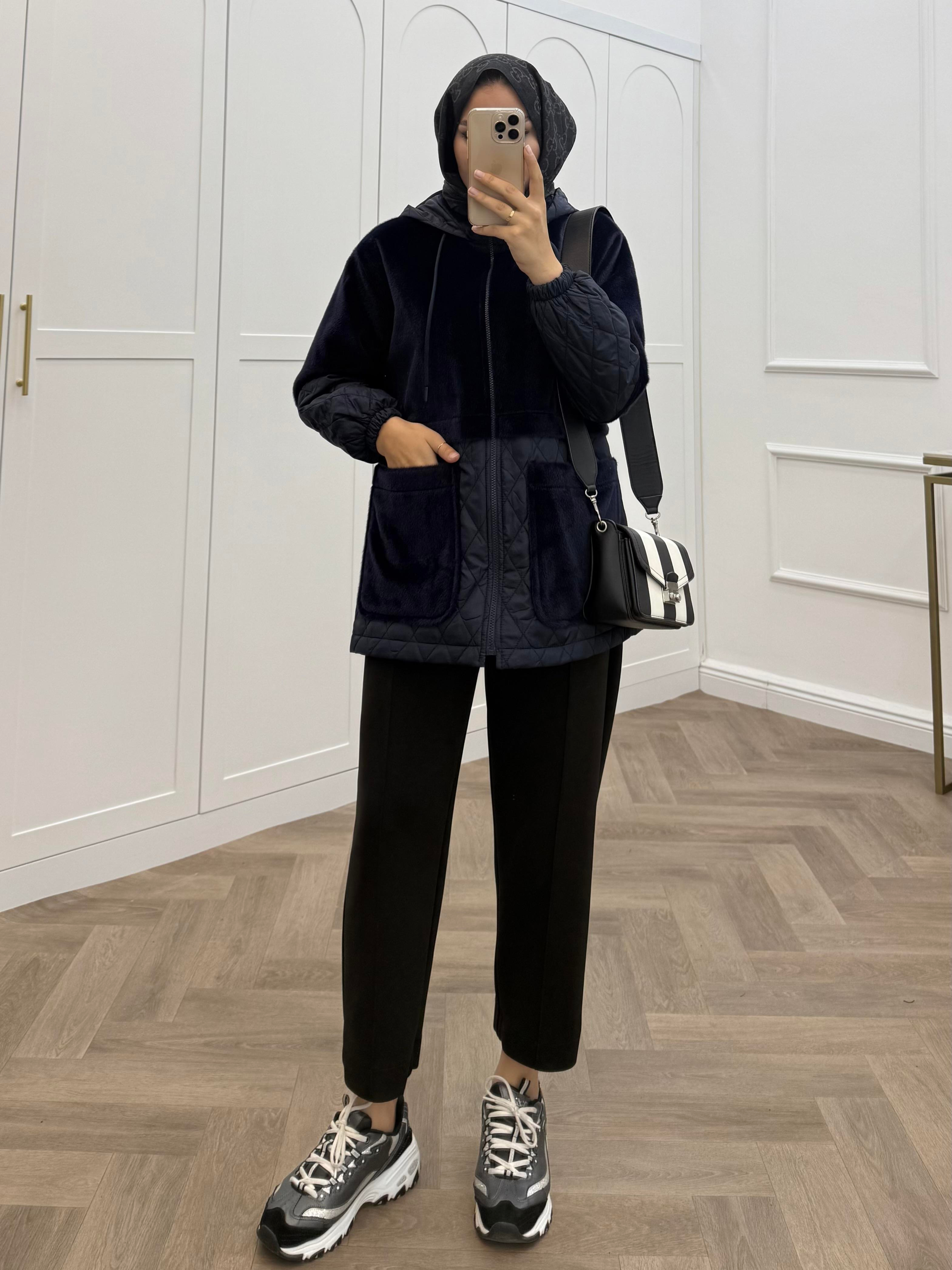 ANGORA CAPİTONE KAPÜŞONLU CEKET LACİVERT
