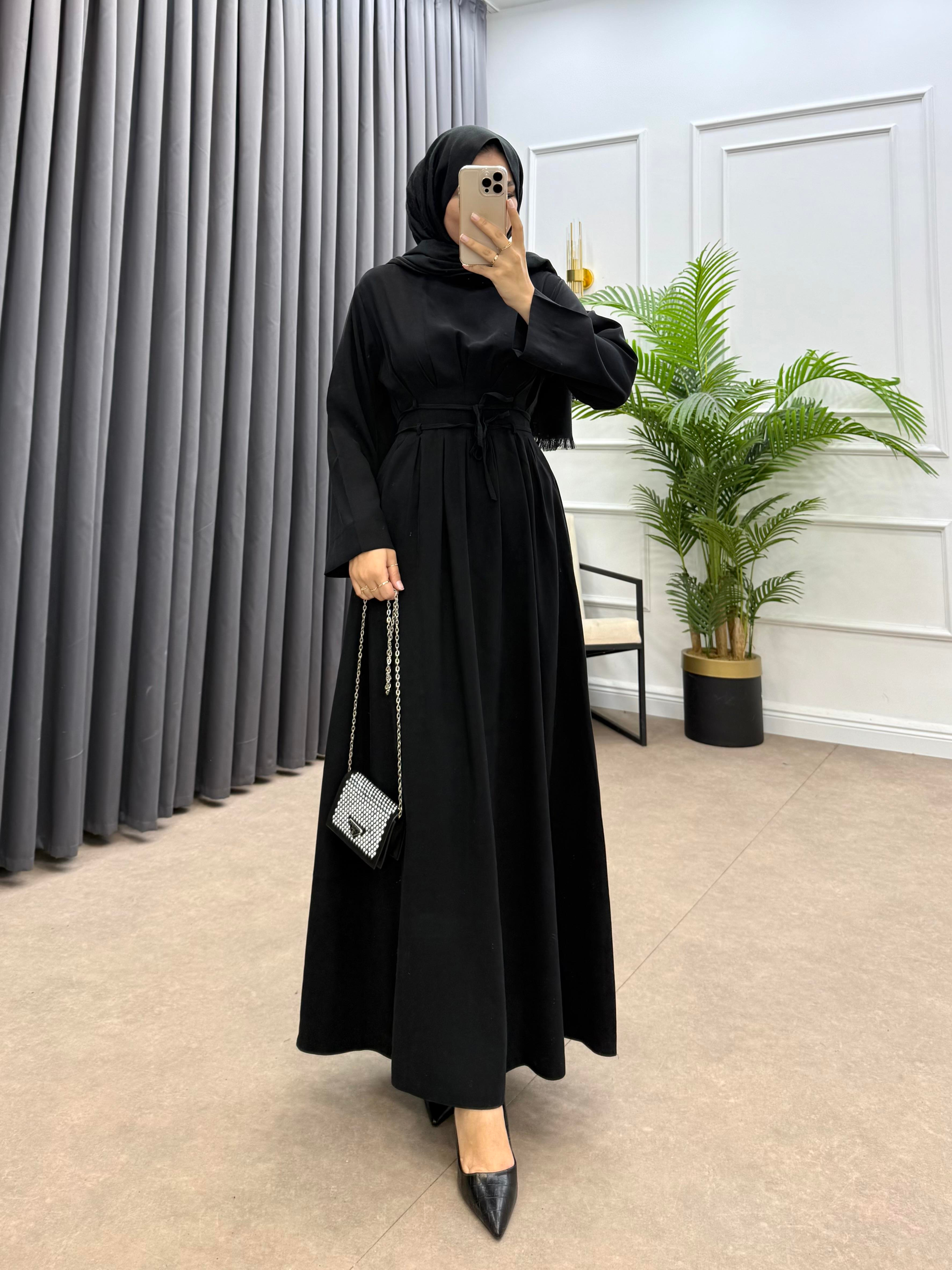 BELDEN İP BAĞLAMALI MODAL ELBİSE SİYAH