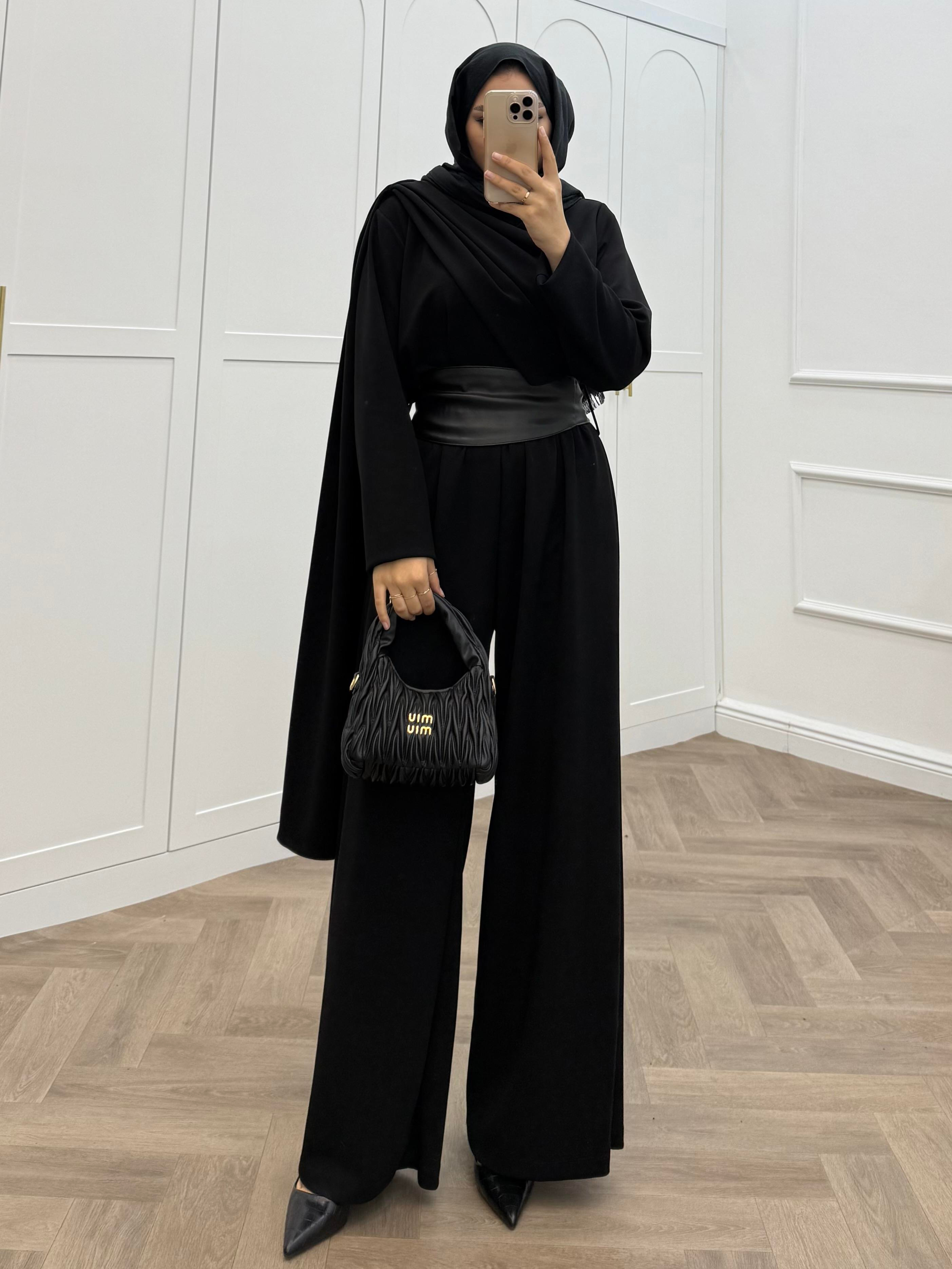 DERİ KEMERLİ PANTOLONLU TAKIM SİYAH