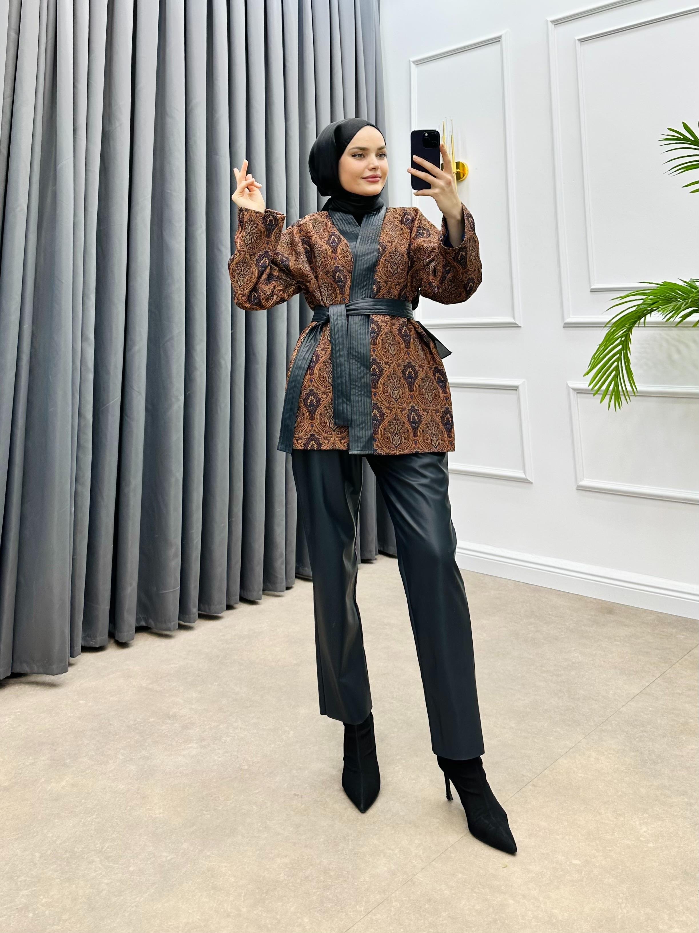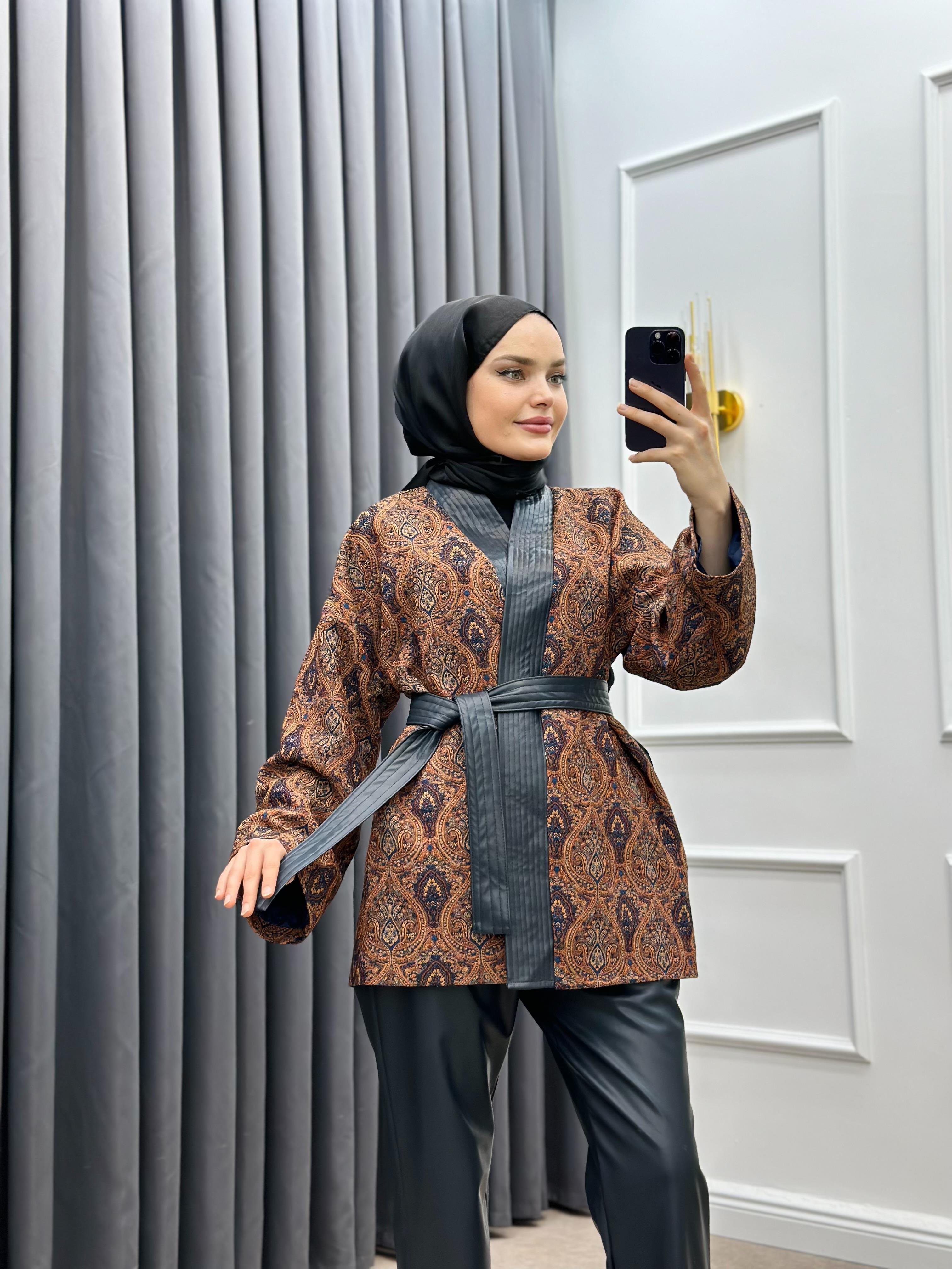 DESENLİ DERİ PANTOLONLU TAKIM TABA