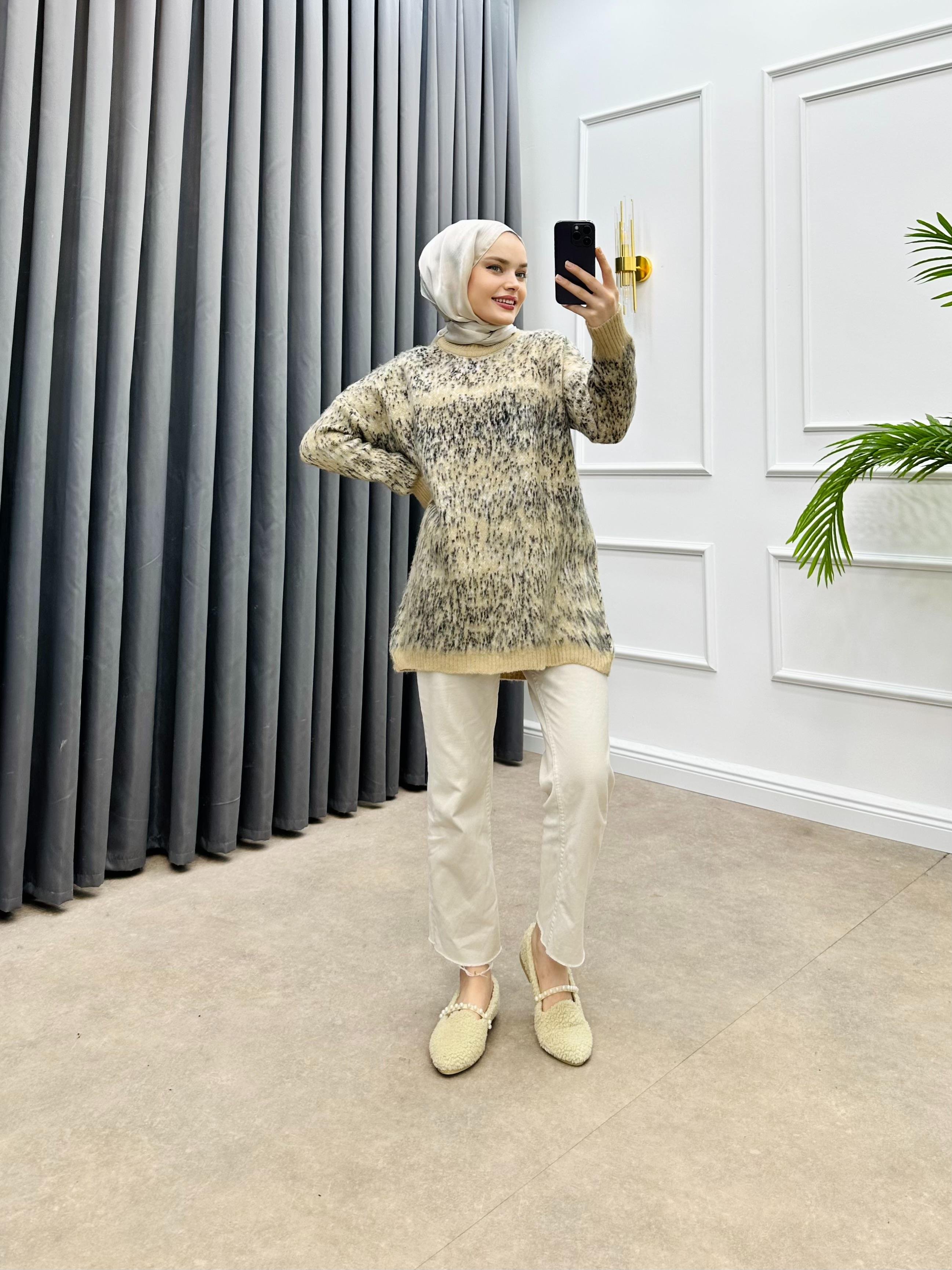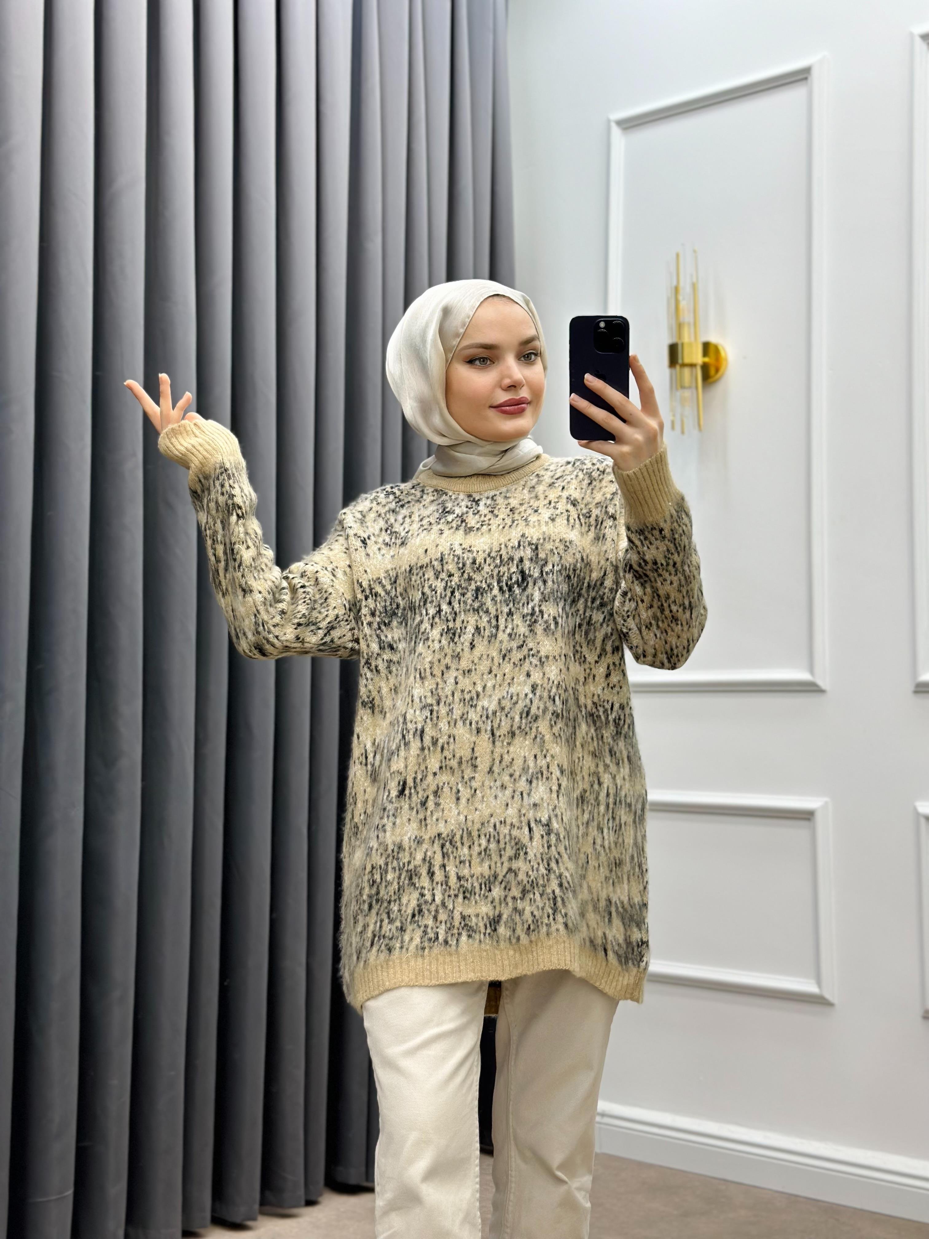 DESENLİ TRİKO KAZAK BEJ