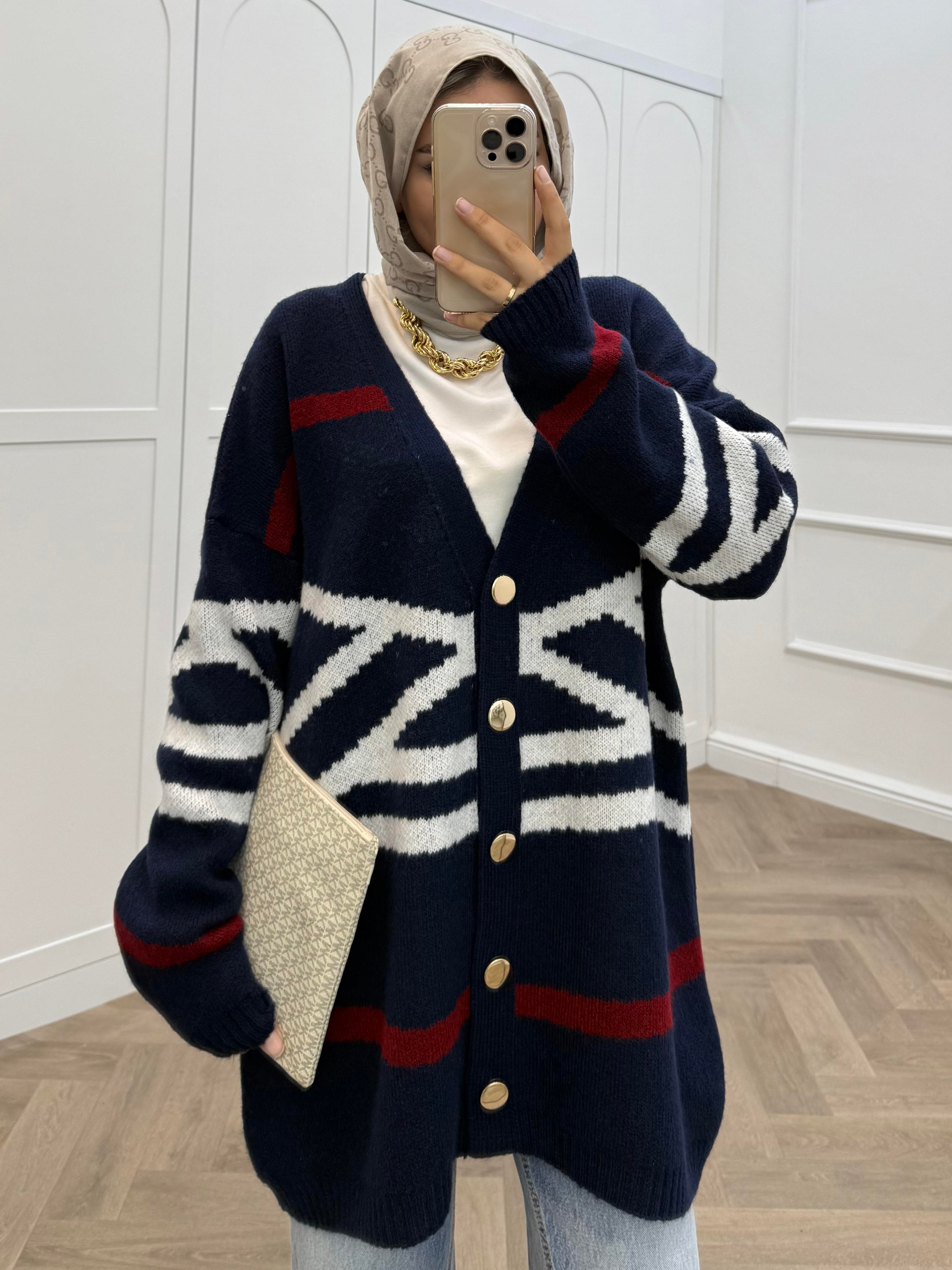 DESENLİ YUMOŞ HIRKA LACİVERT