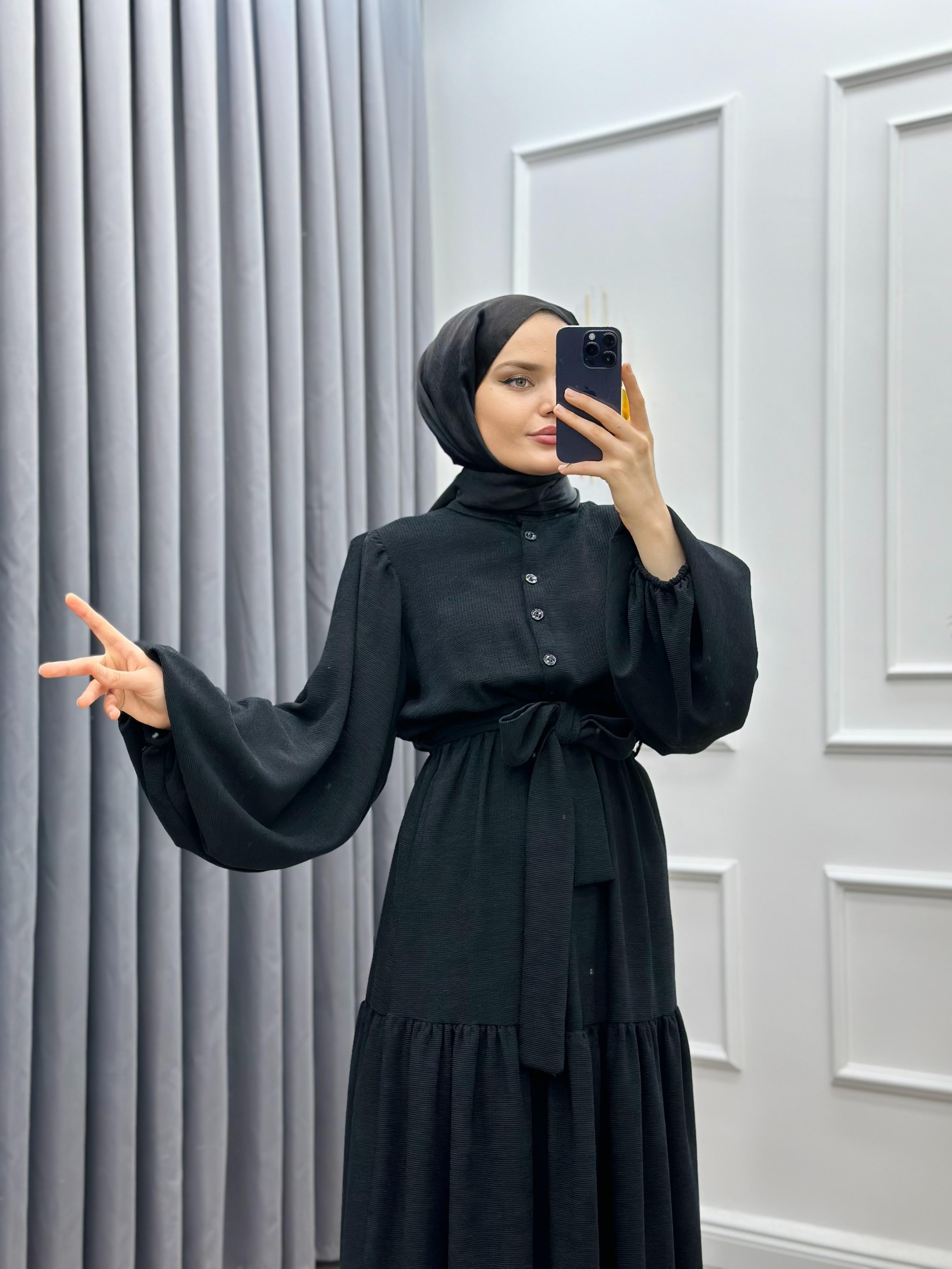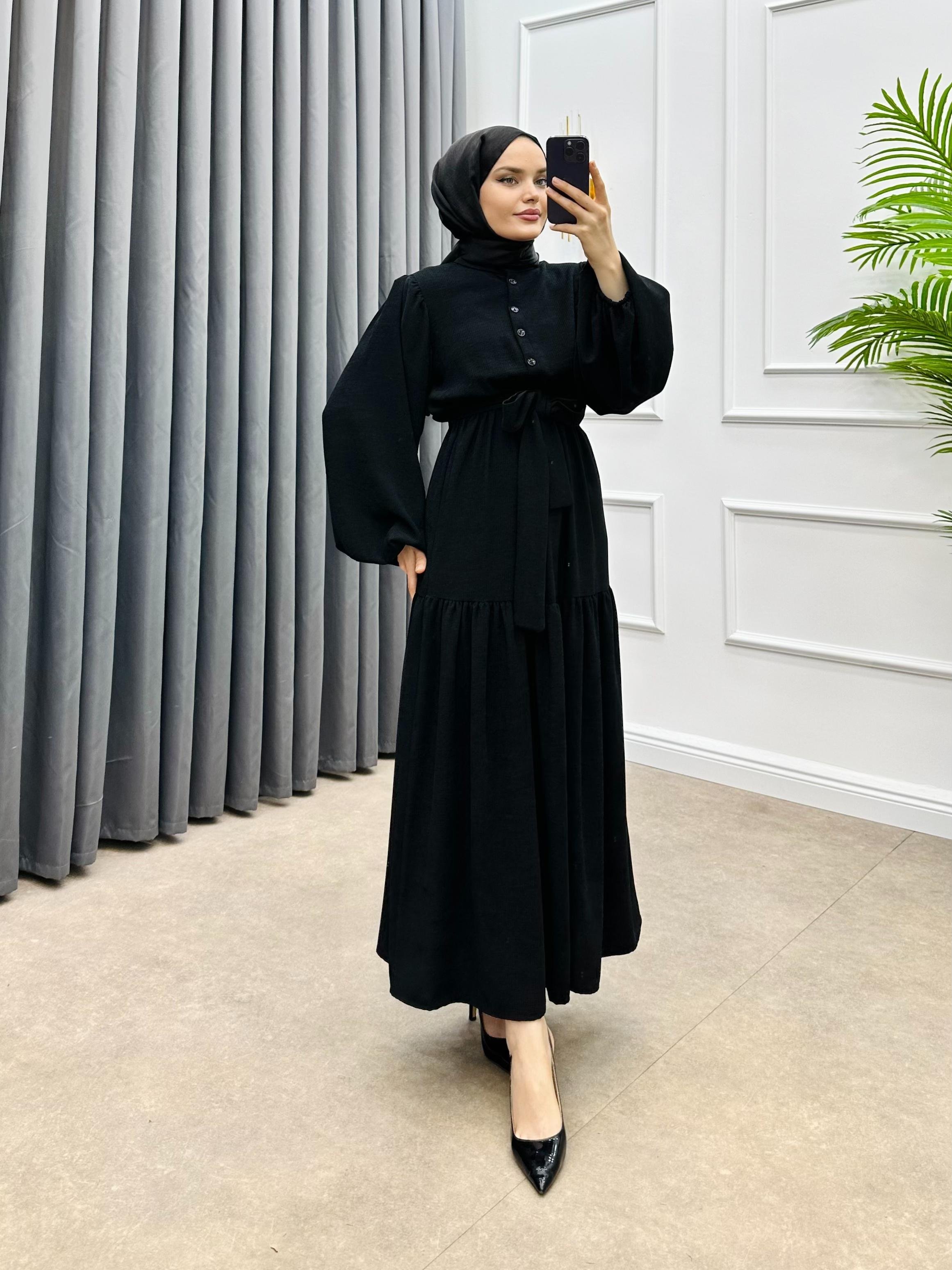 FİTİLLİ KADİFE ELBİSE SİYAH