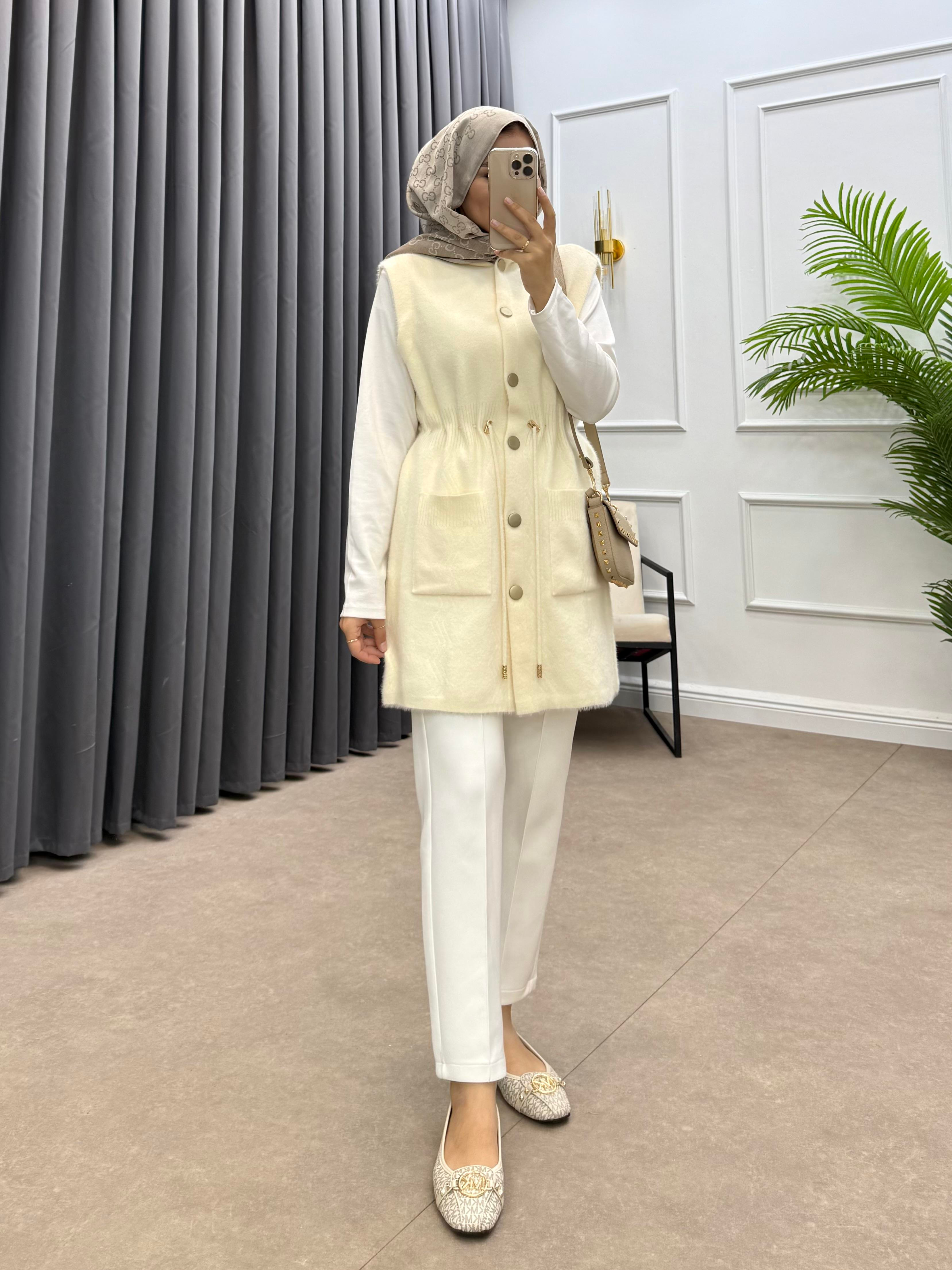 GOLD DÜĞMELİ YÜN YELEK KREM