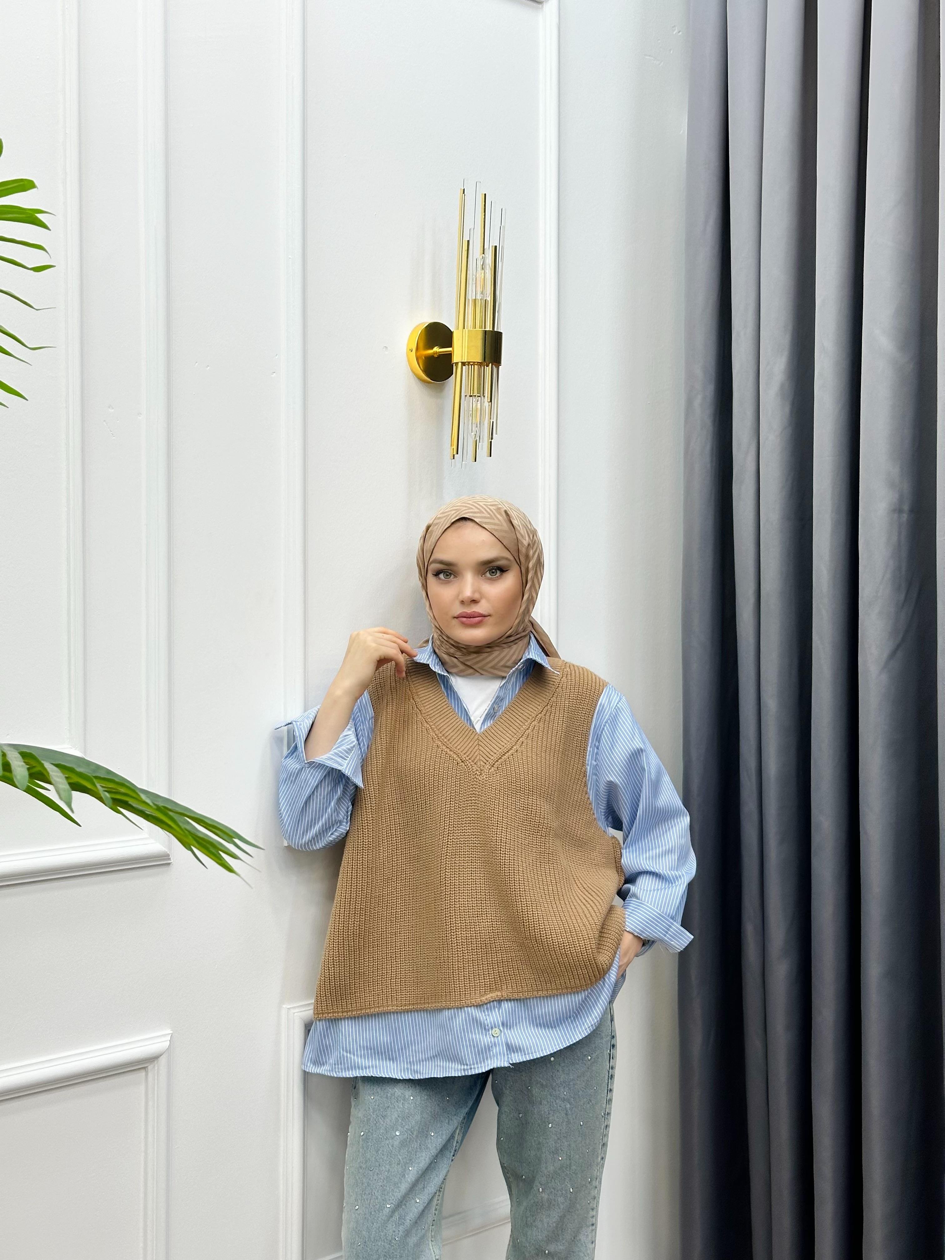GÖMLEKLİ SÜVETER KAZAK CAMEL