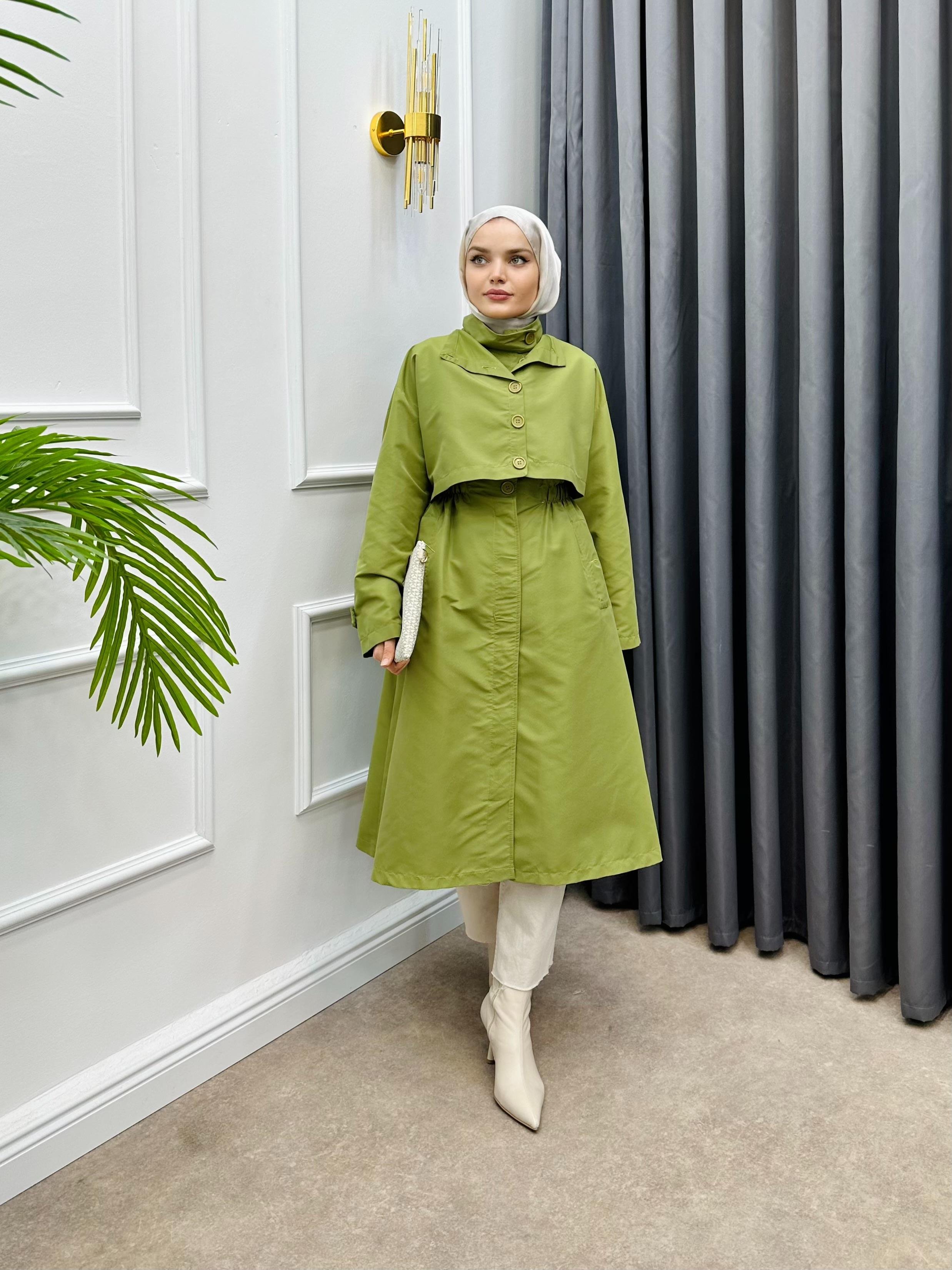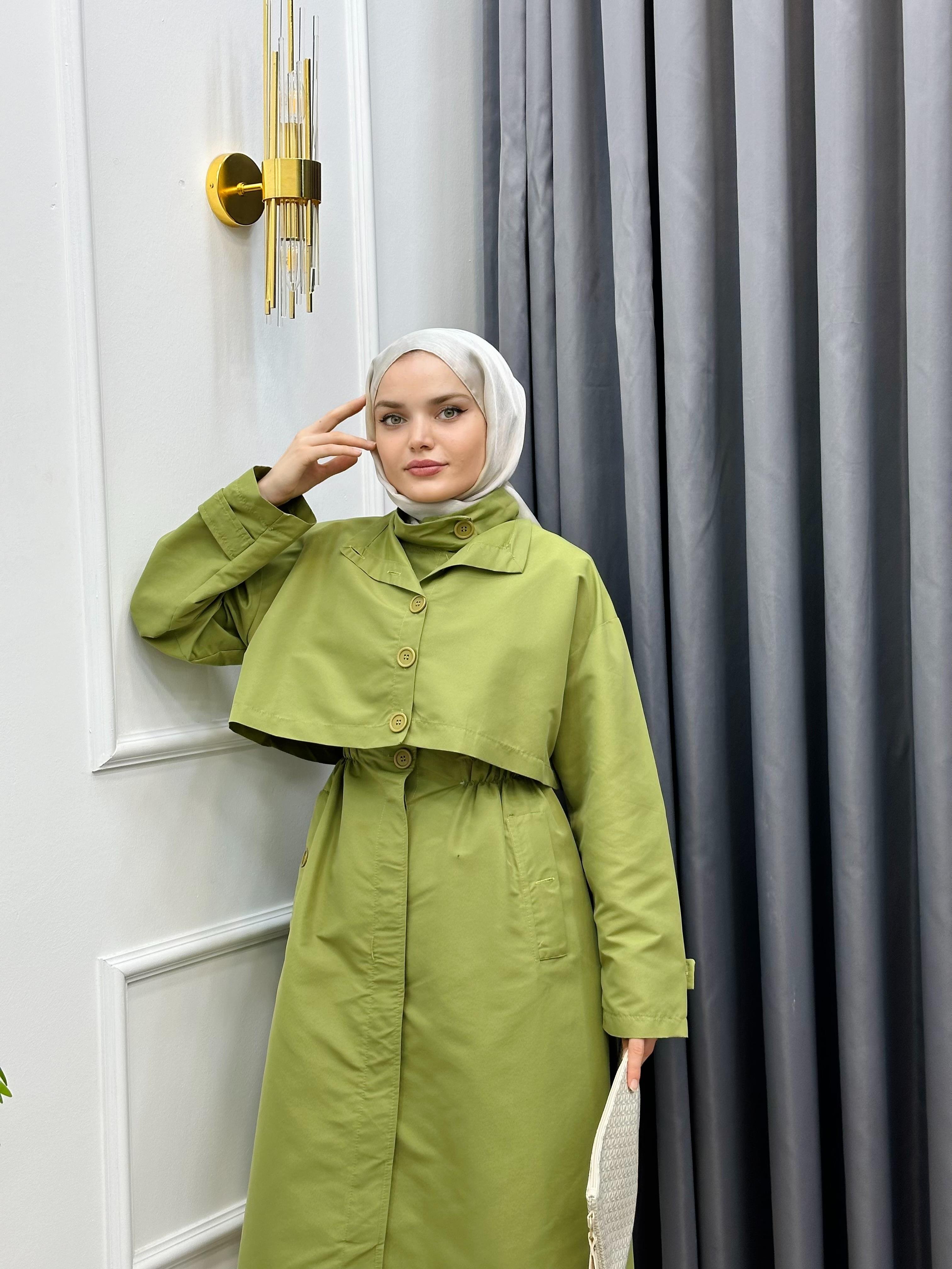 İKİLİ TRENÇKOT FISTIK YEŞİLİ