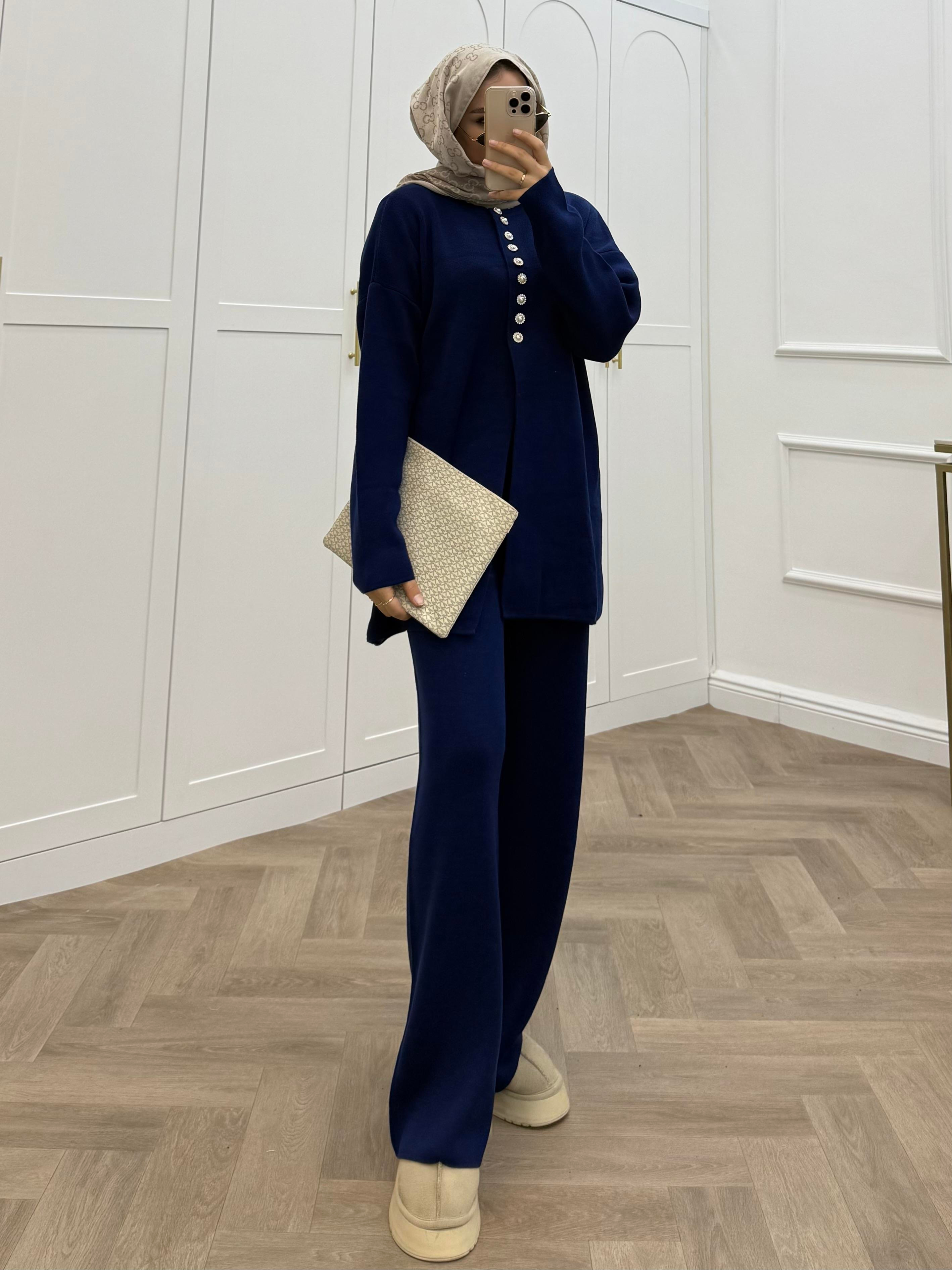 İNCİ DÜĞMELİ TRİKO TAKIM LACİVERT