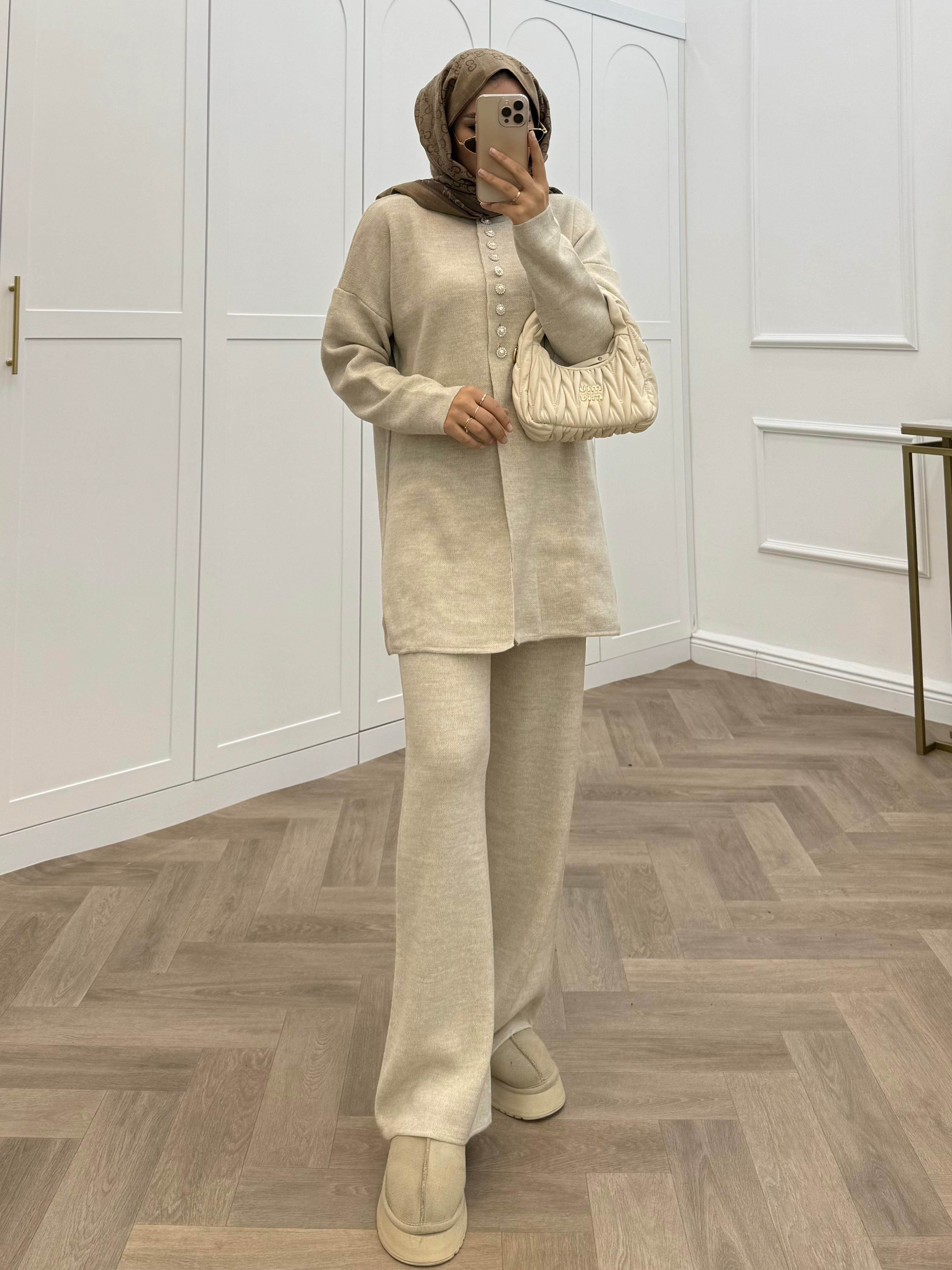 İNCİ DÜĞMELİ TRİKO TAKIM TAŞ