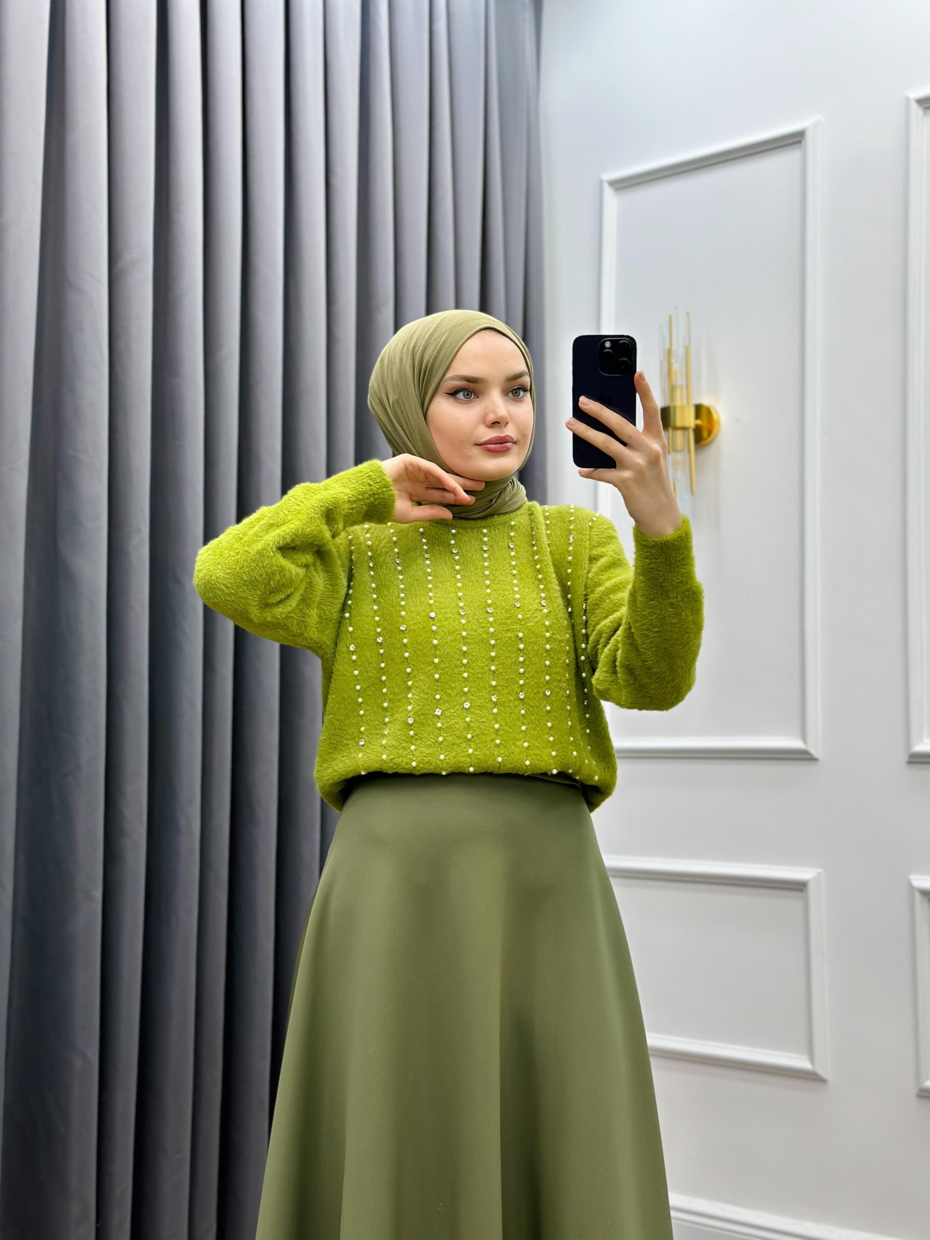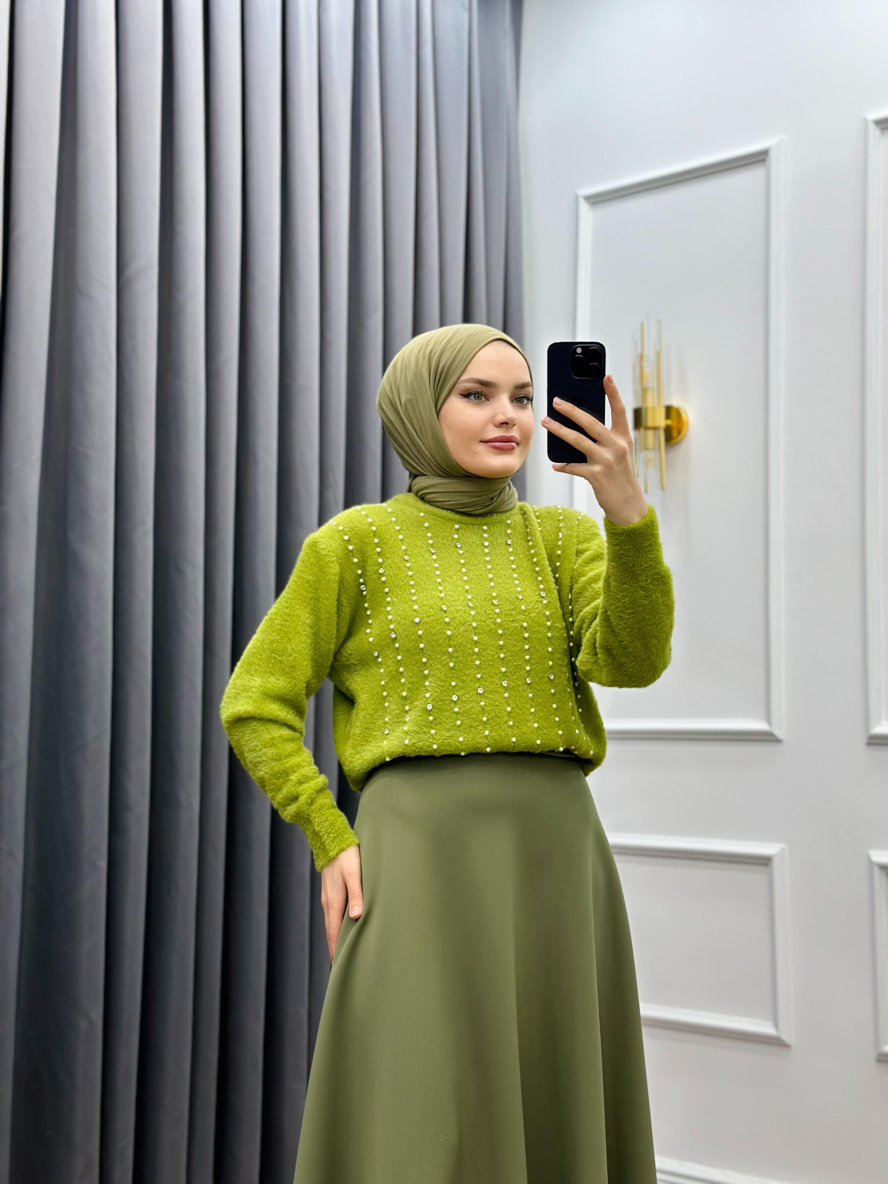 İNCİLİ TRİKO KAZAK YAĞ YEŞİLİ