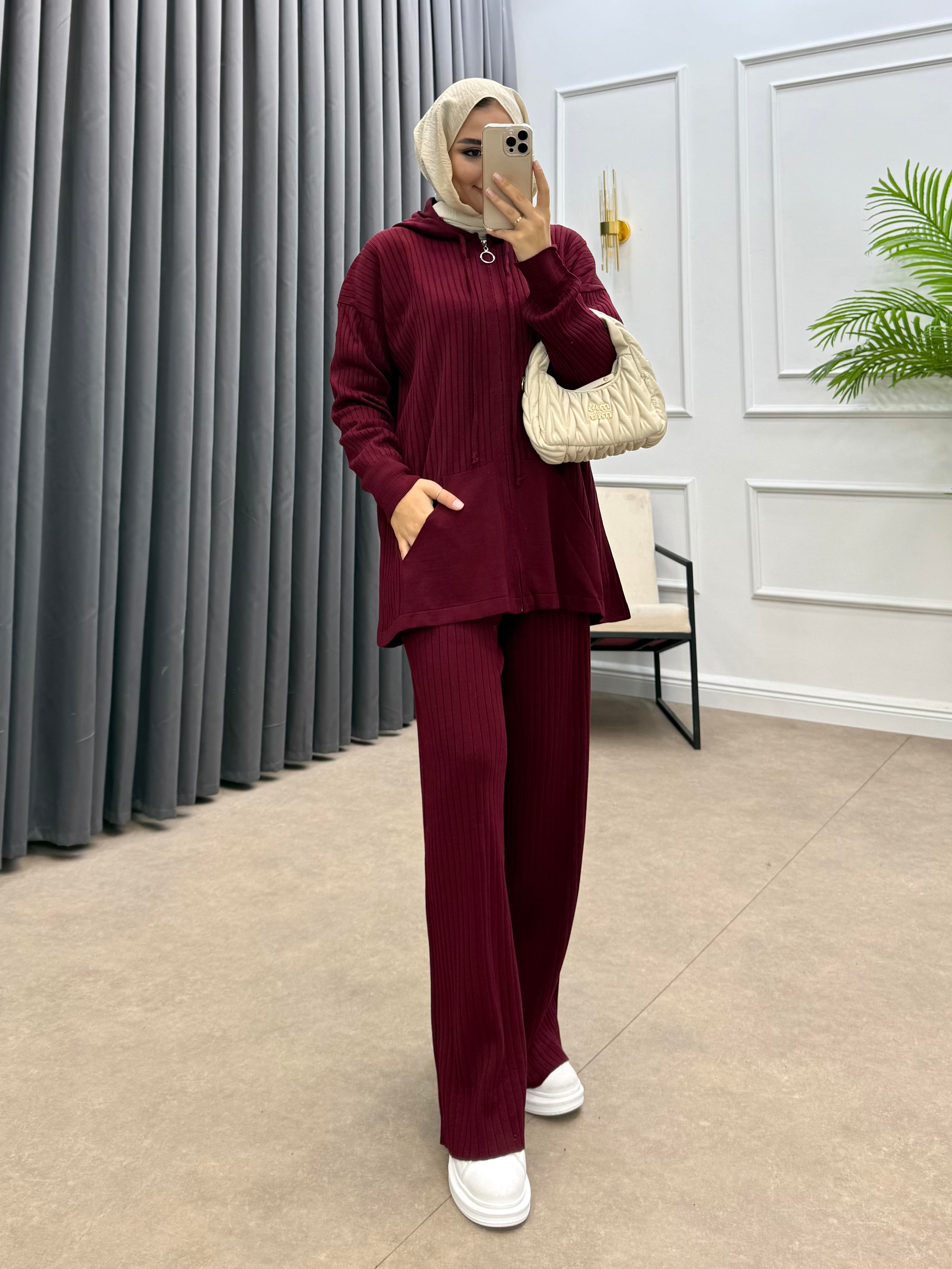 KAPÜŞONLU CEPLİ TRİKO TAKIM BORDO