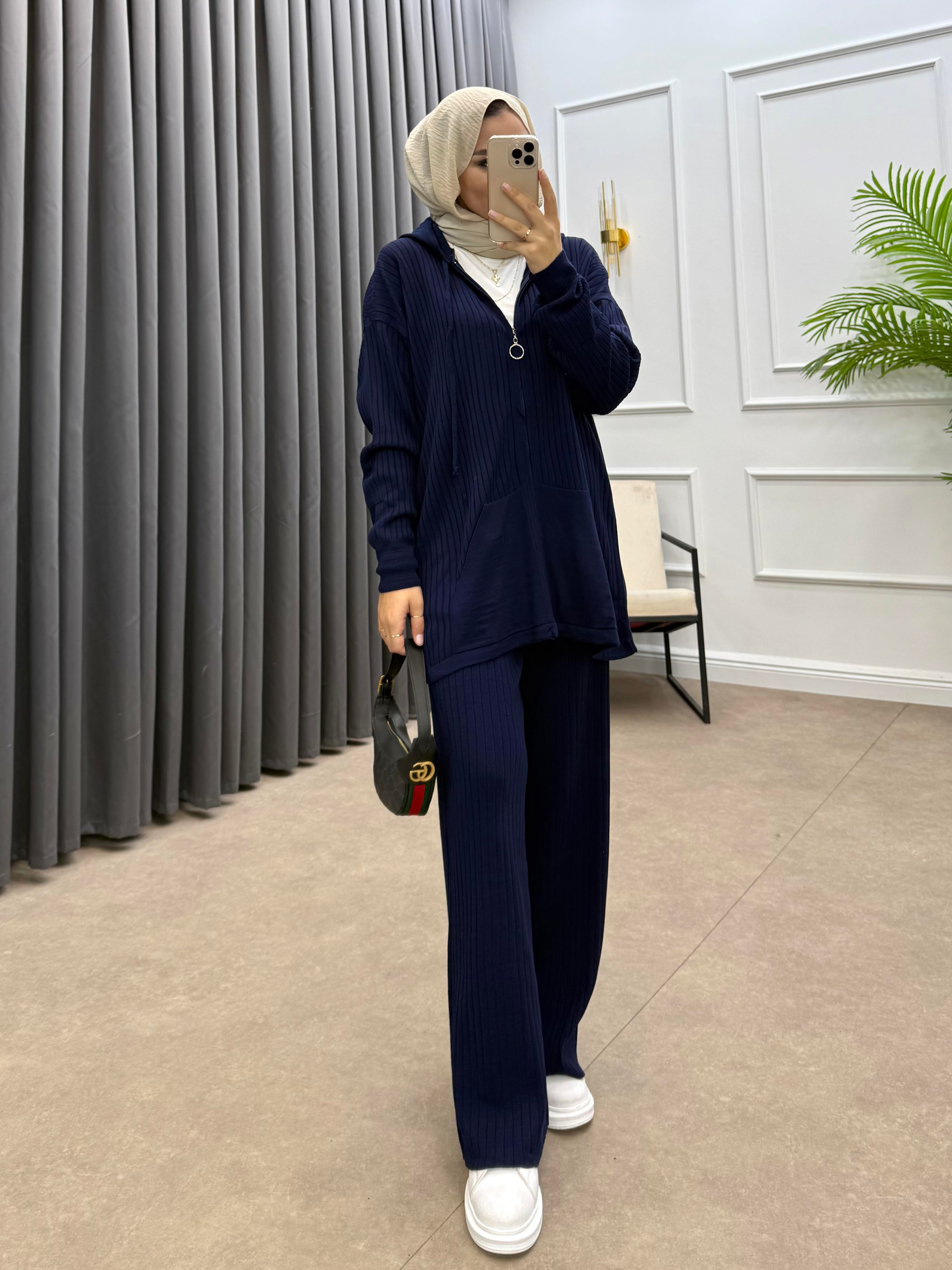 KAPÜŞONLU CEPLİ TRİKO TAKIM LACİVERT