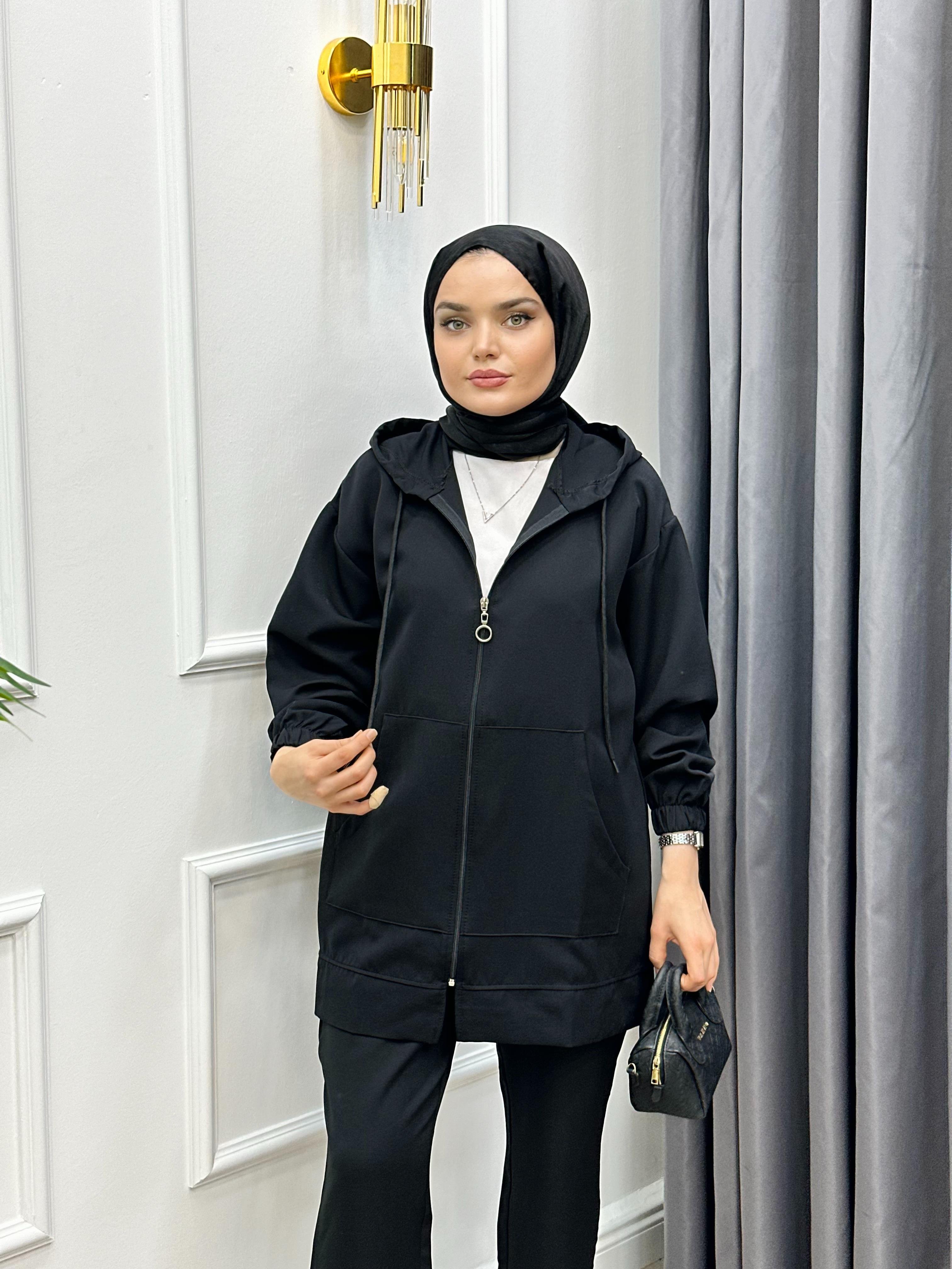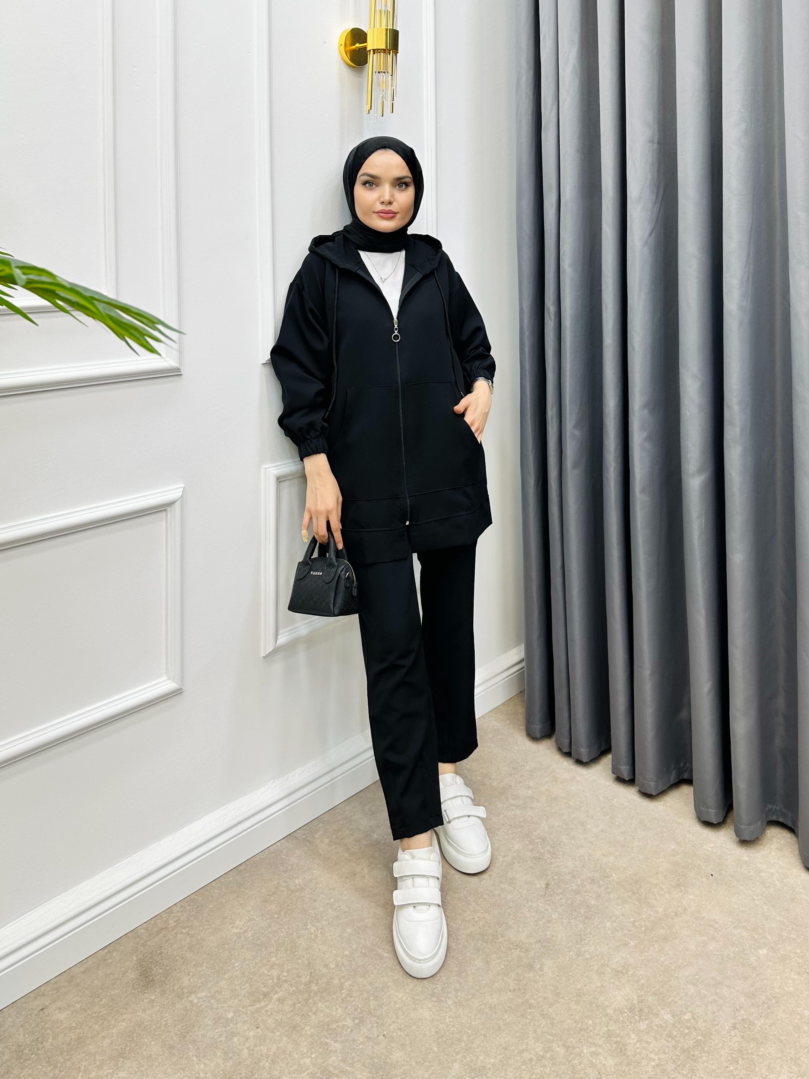 KAPÜŞONLU EŞOFMAN TAKIMI SİYAH