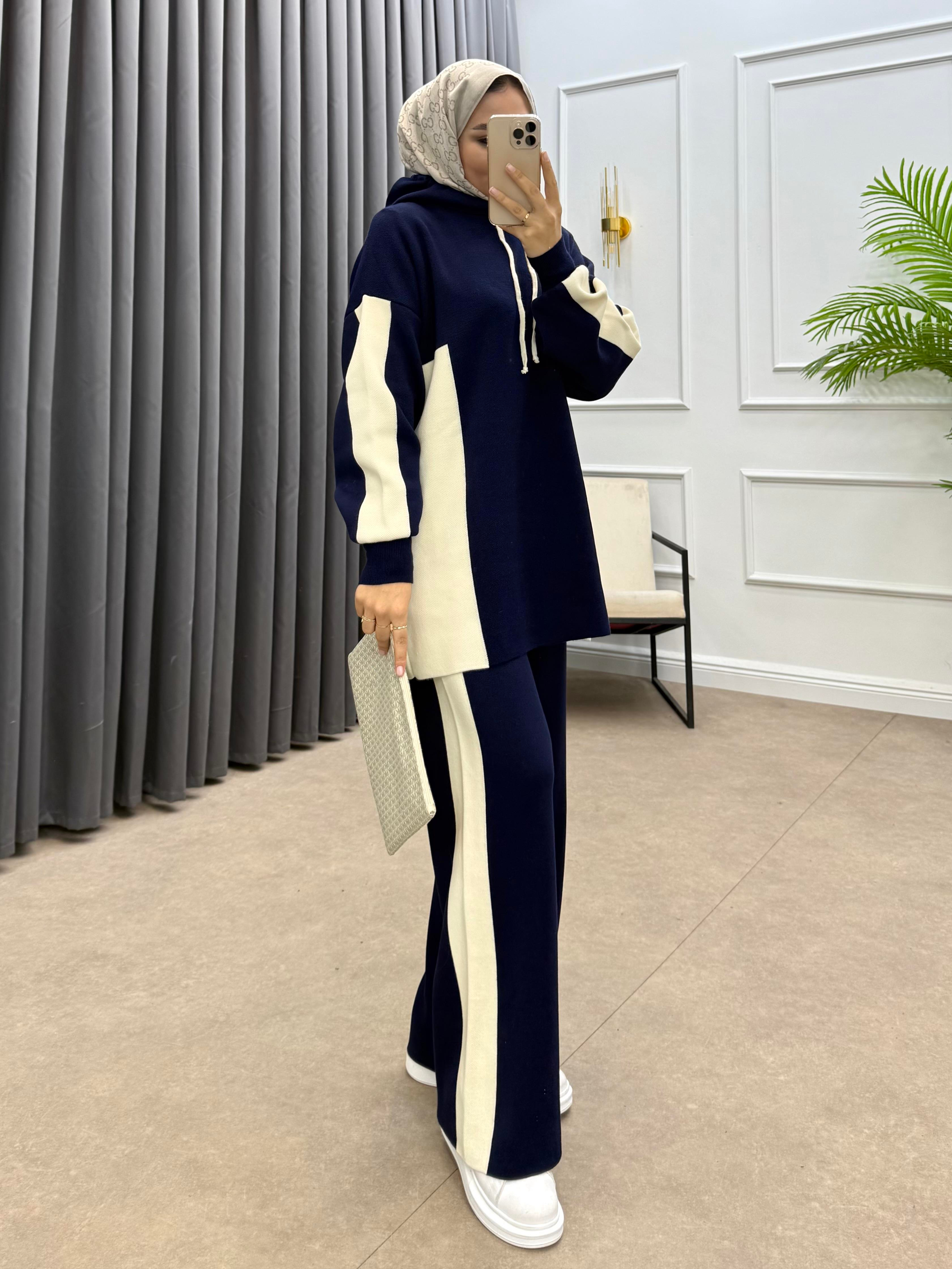 KAPÜŞONLU ŞERİTLİ TRİKO TAKIM LACİVERT