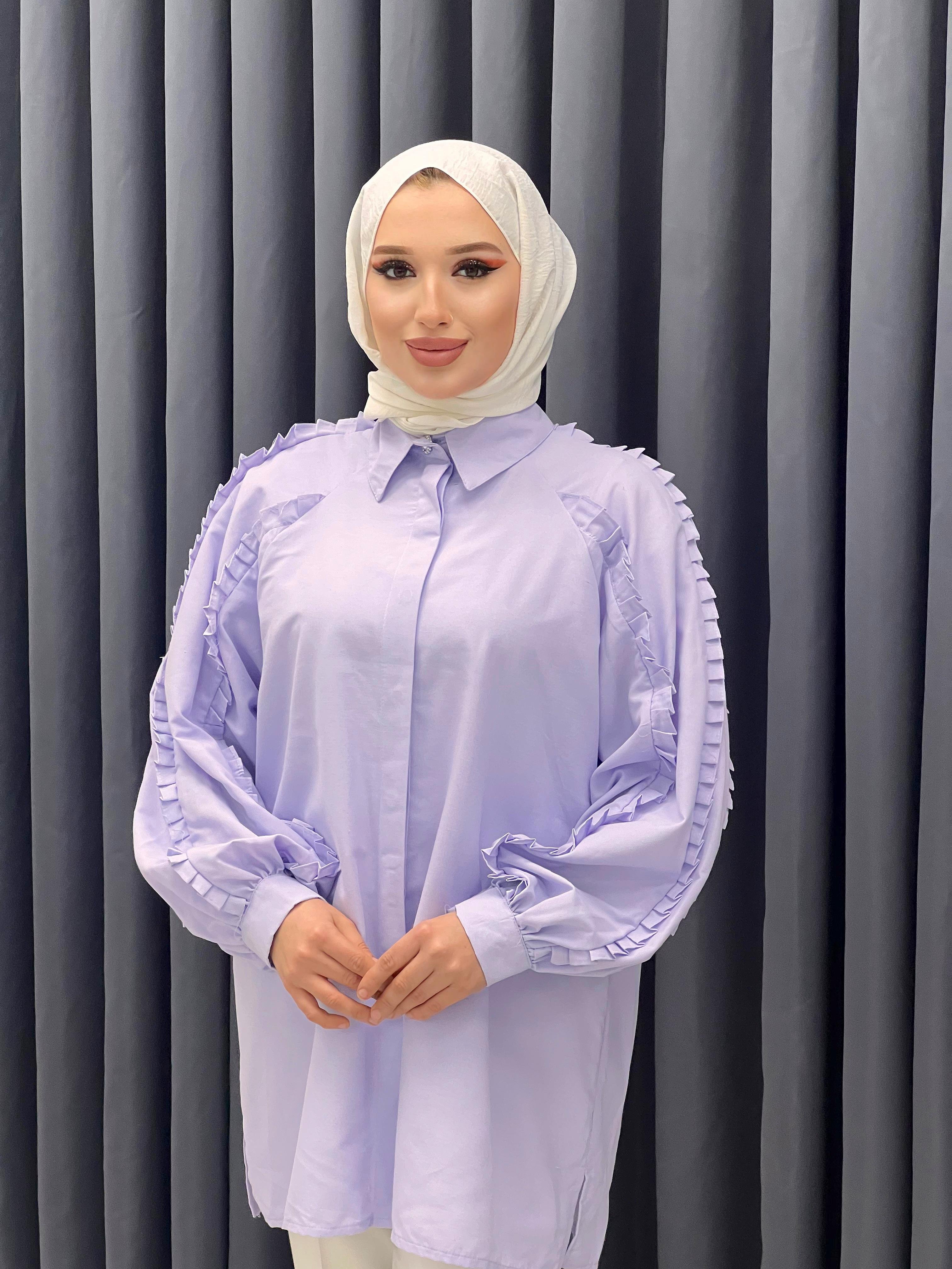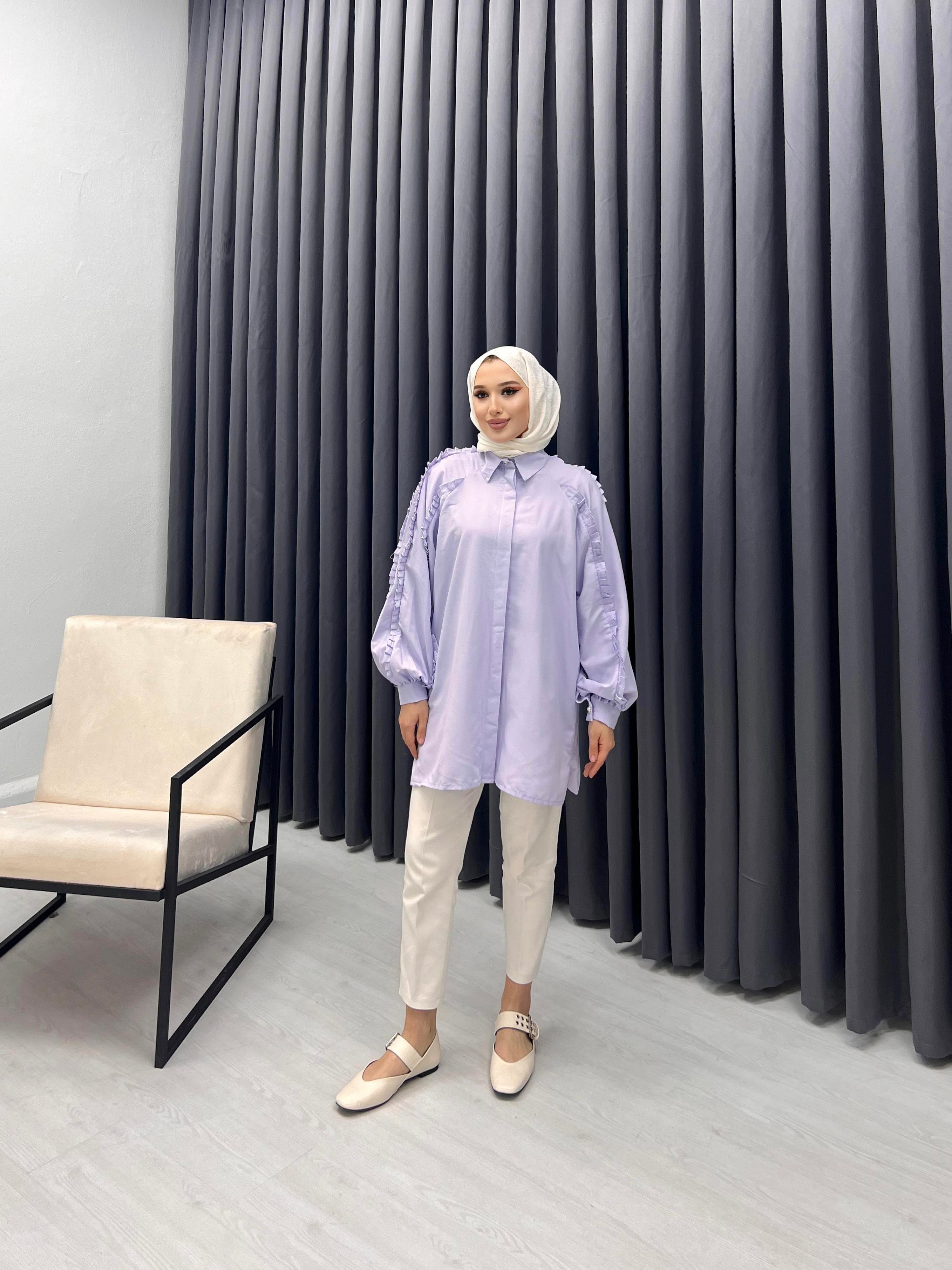KESME ŞERİT DETAYLI GÖMLEK LİLA