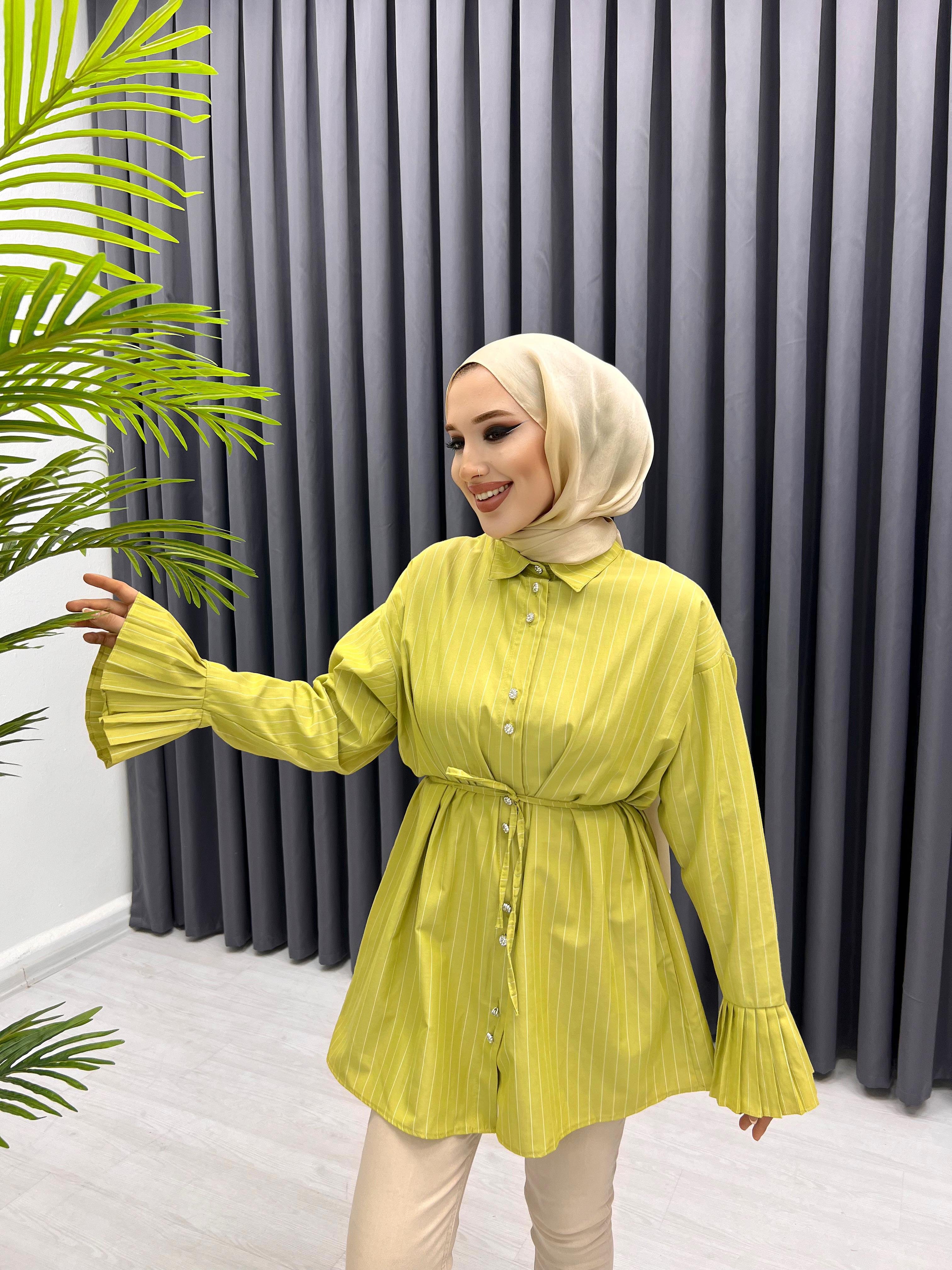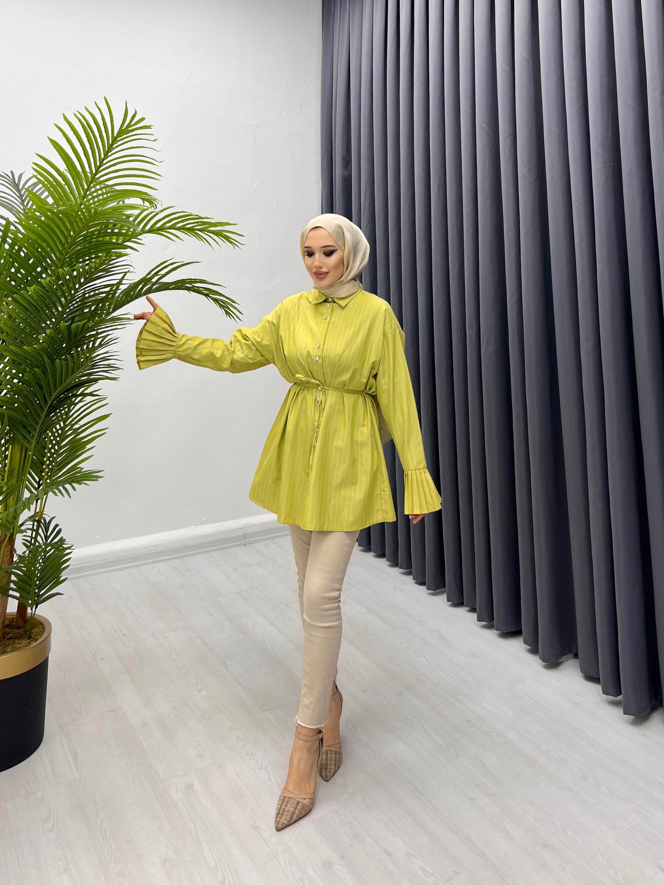 KOLU PİLİSE ÇİZGİLİ GÖMLEK YAĞ YEŞİLİ