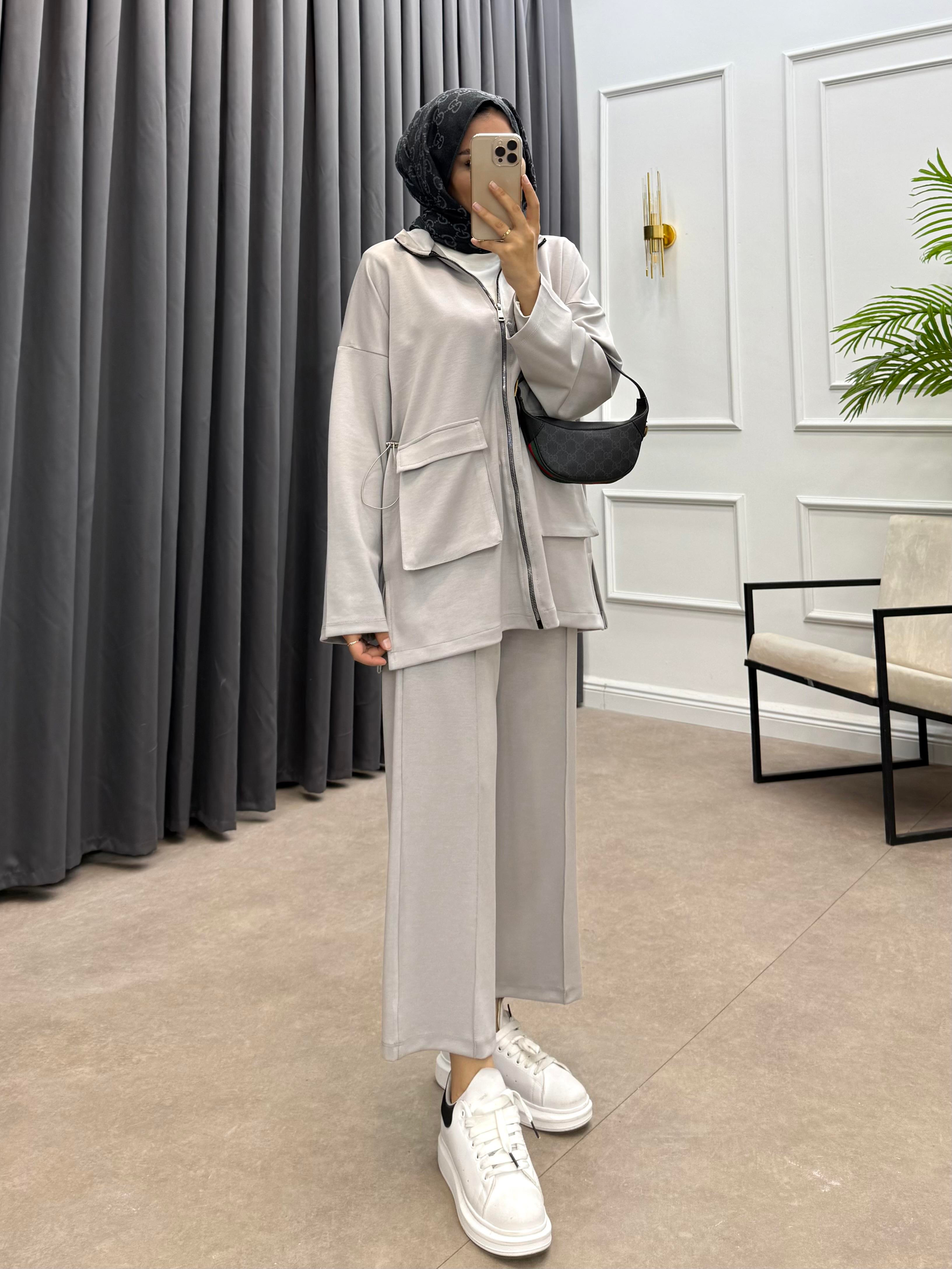 KÖRÜK CEPLİ PANTOLONLU TAKIM GRİ