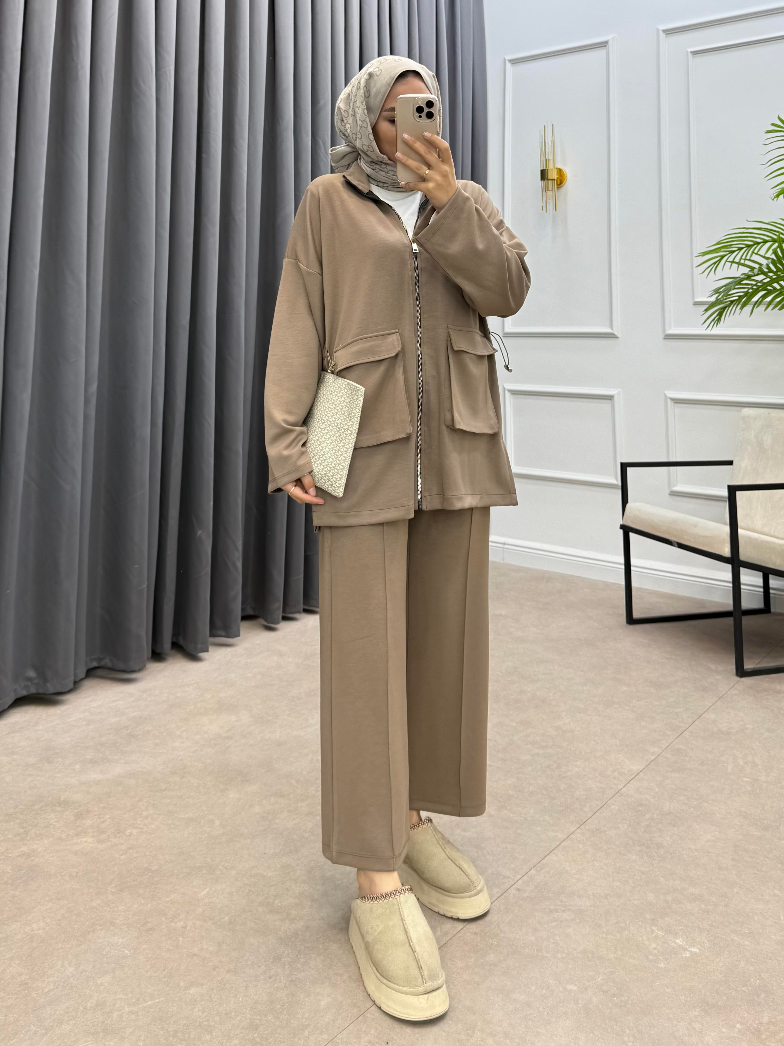 KÖRÜK CEPLİ PANTOLONLU TAKIM VİZON