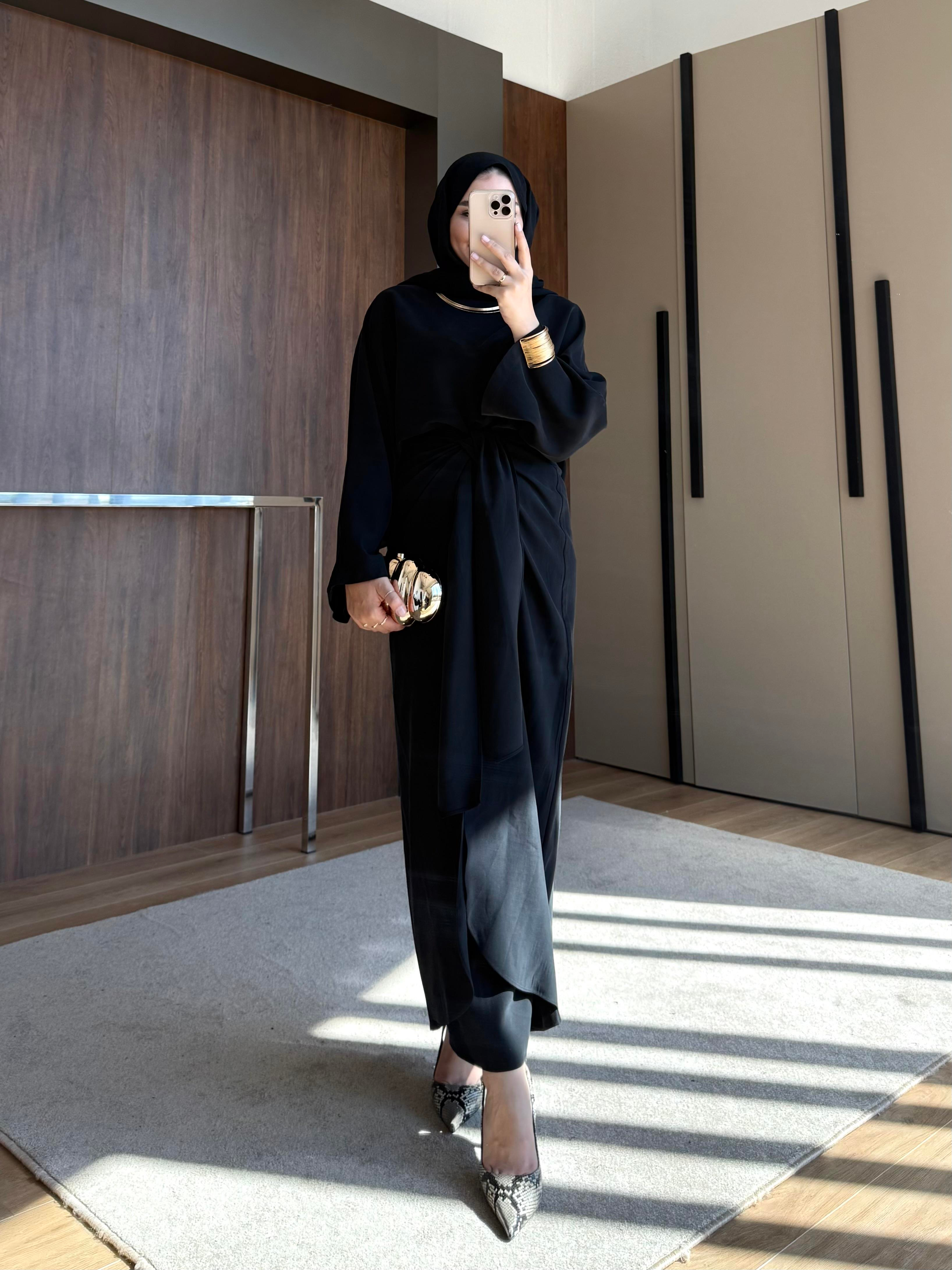 KURDELE DETAY ETEKLİ TAKIM SİYAH