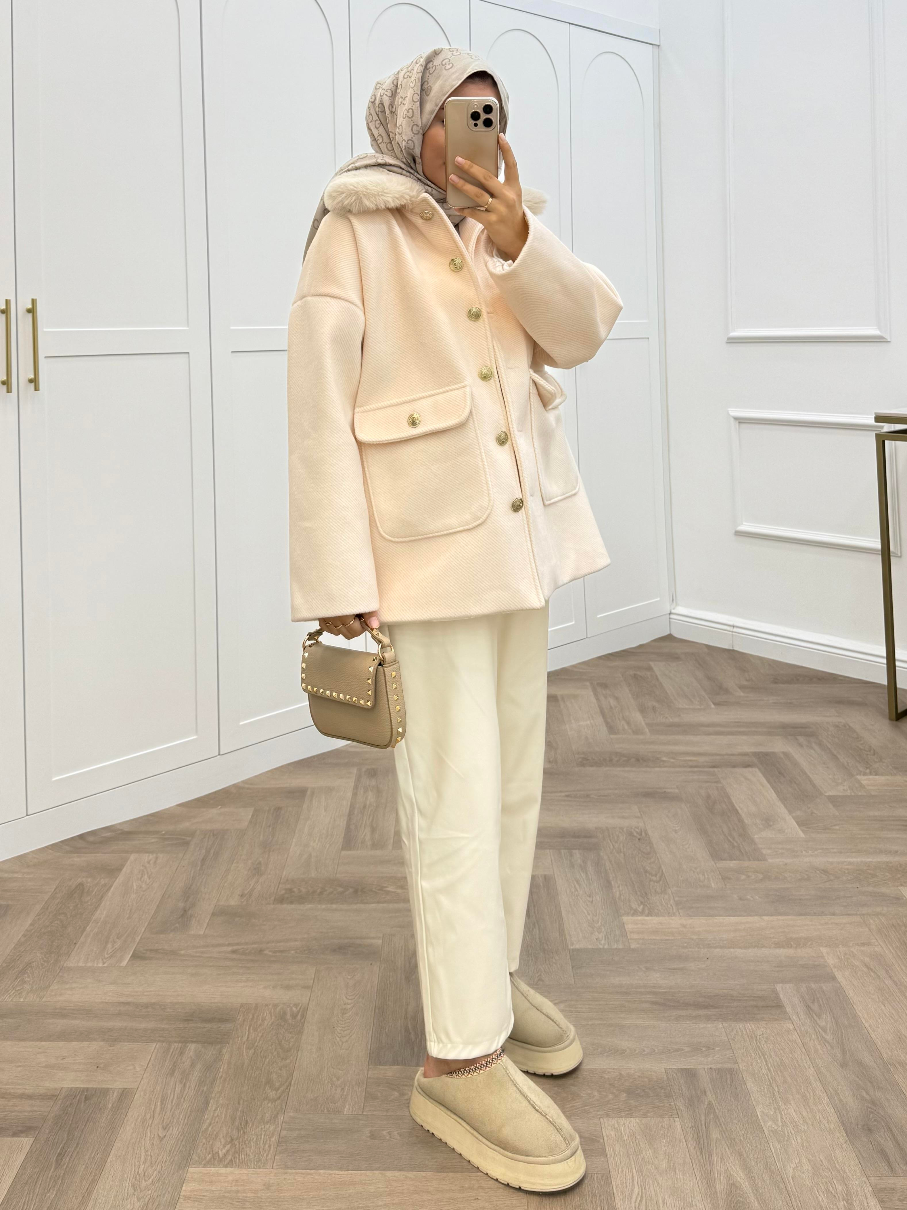 KÜRK YAKA GOLD DÜĞMELİ CEKET TAŞ