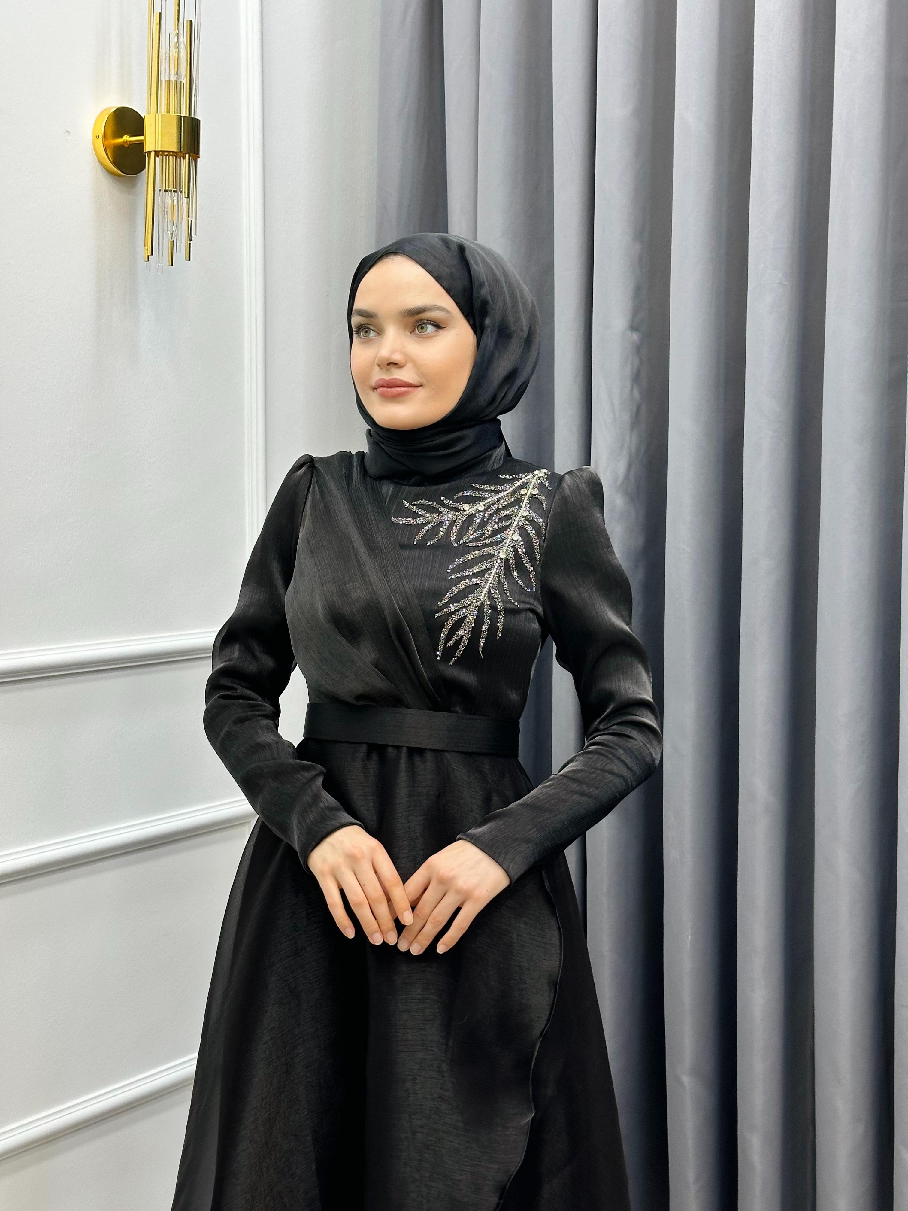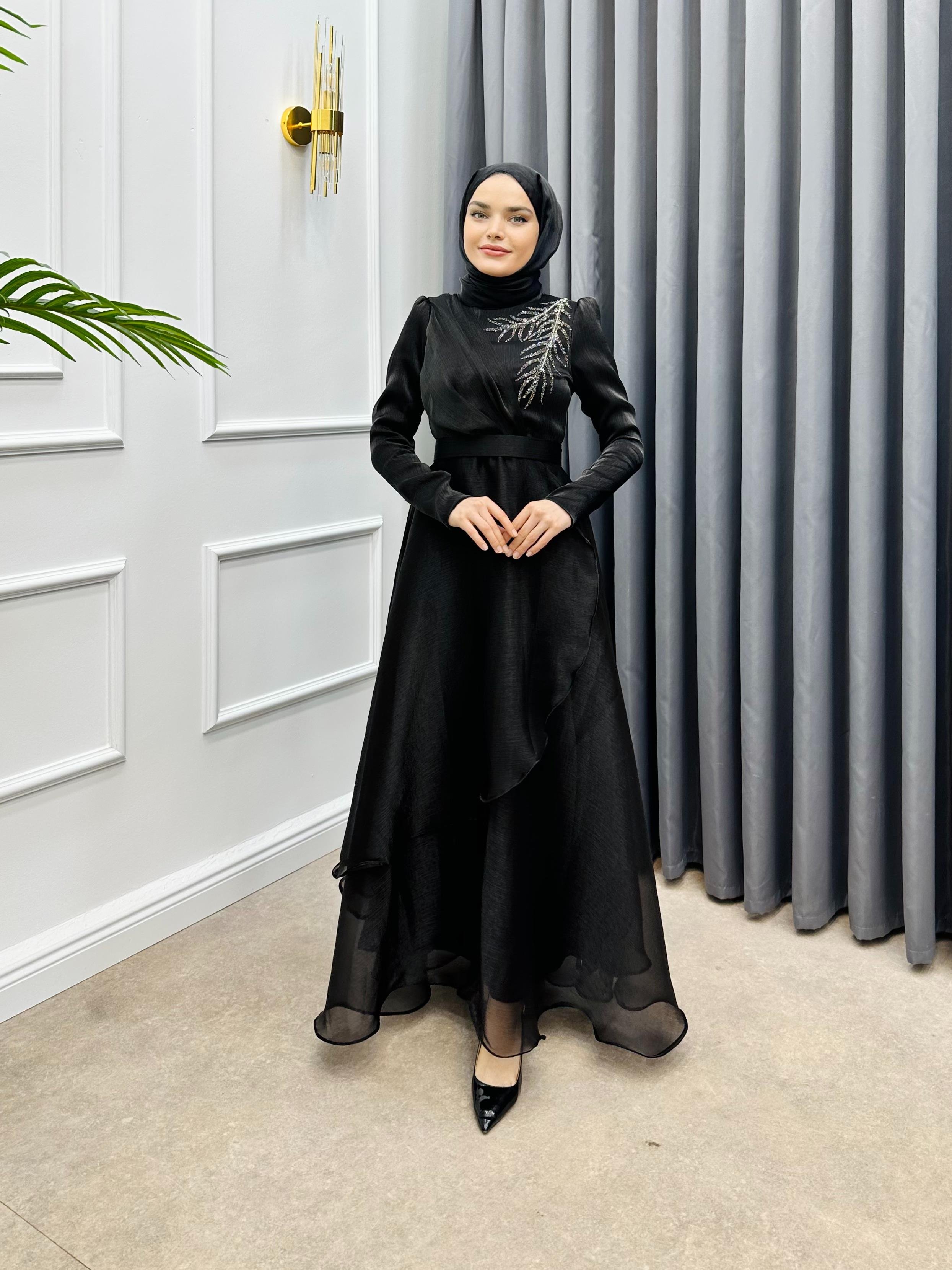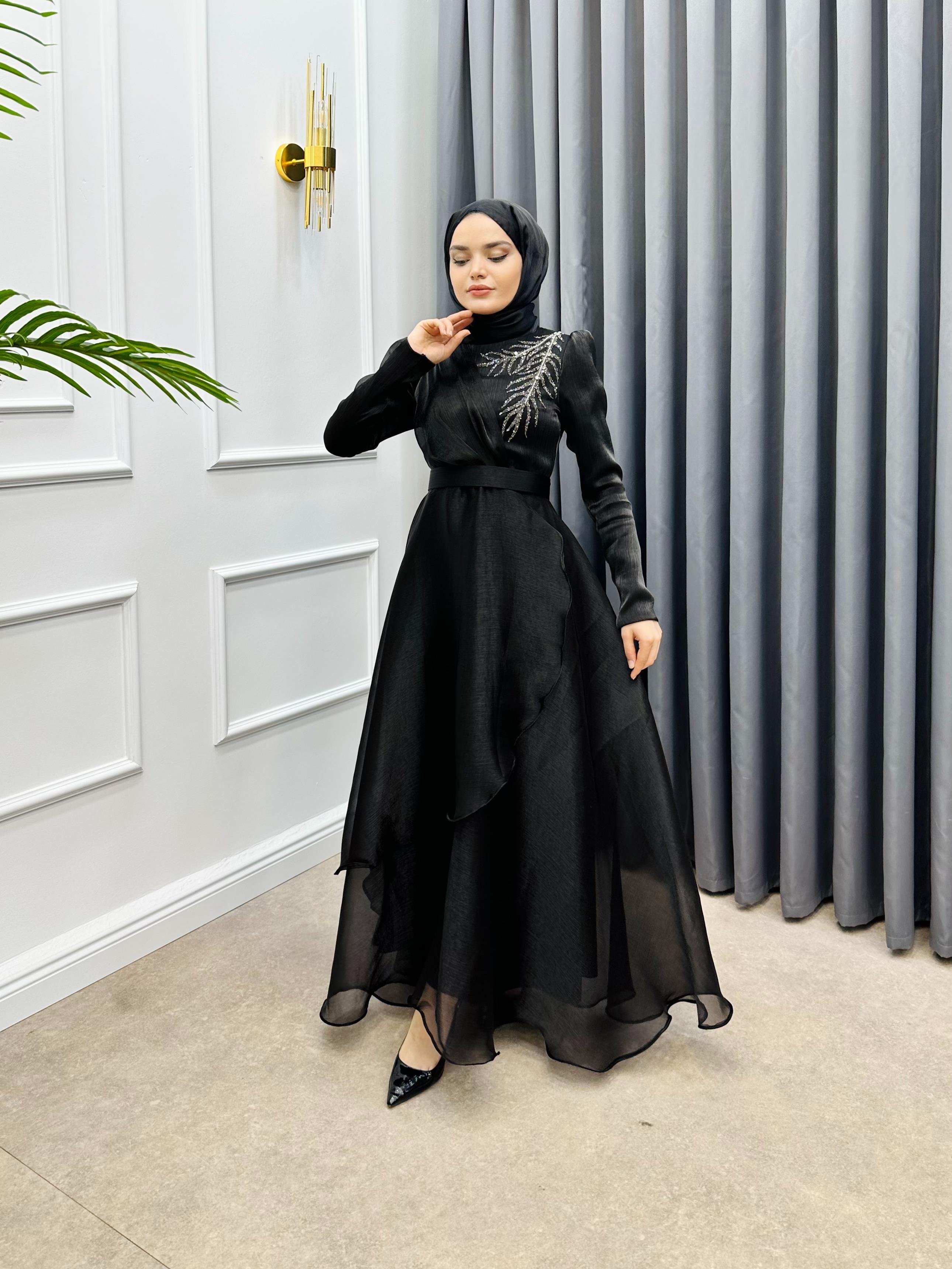 OMZU TAŞLI JANJAN ABİYE SİYAH