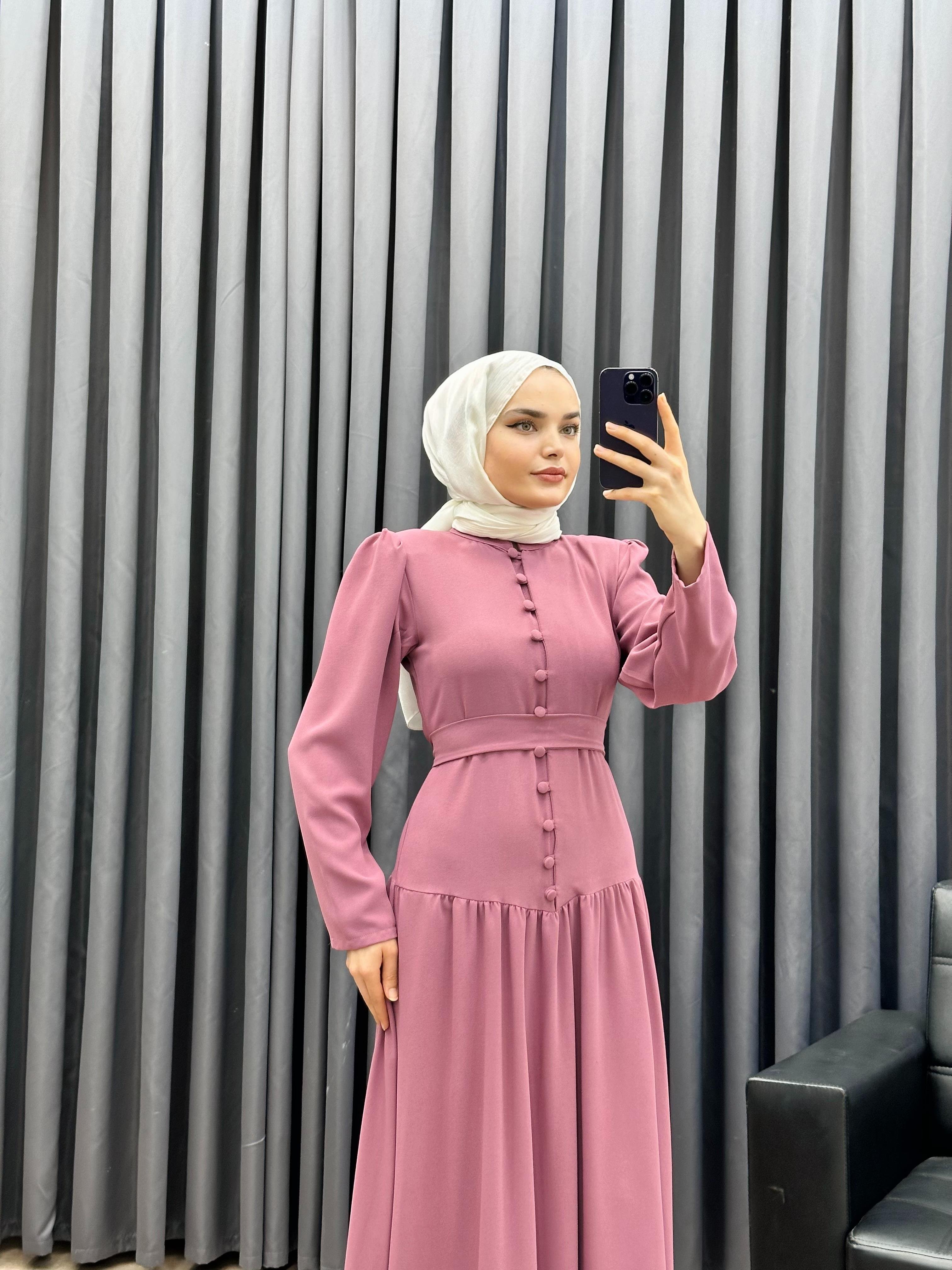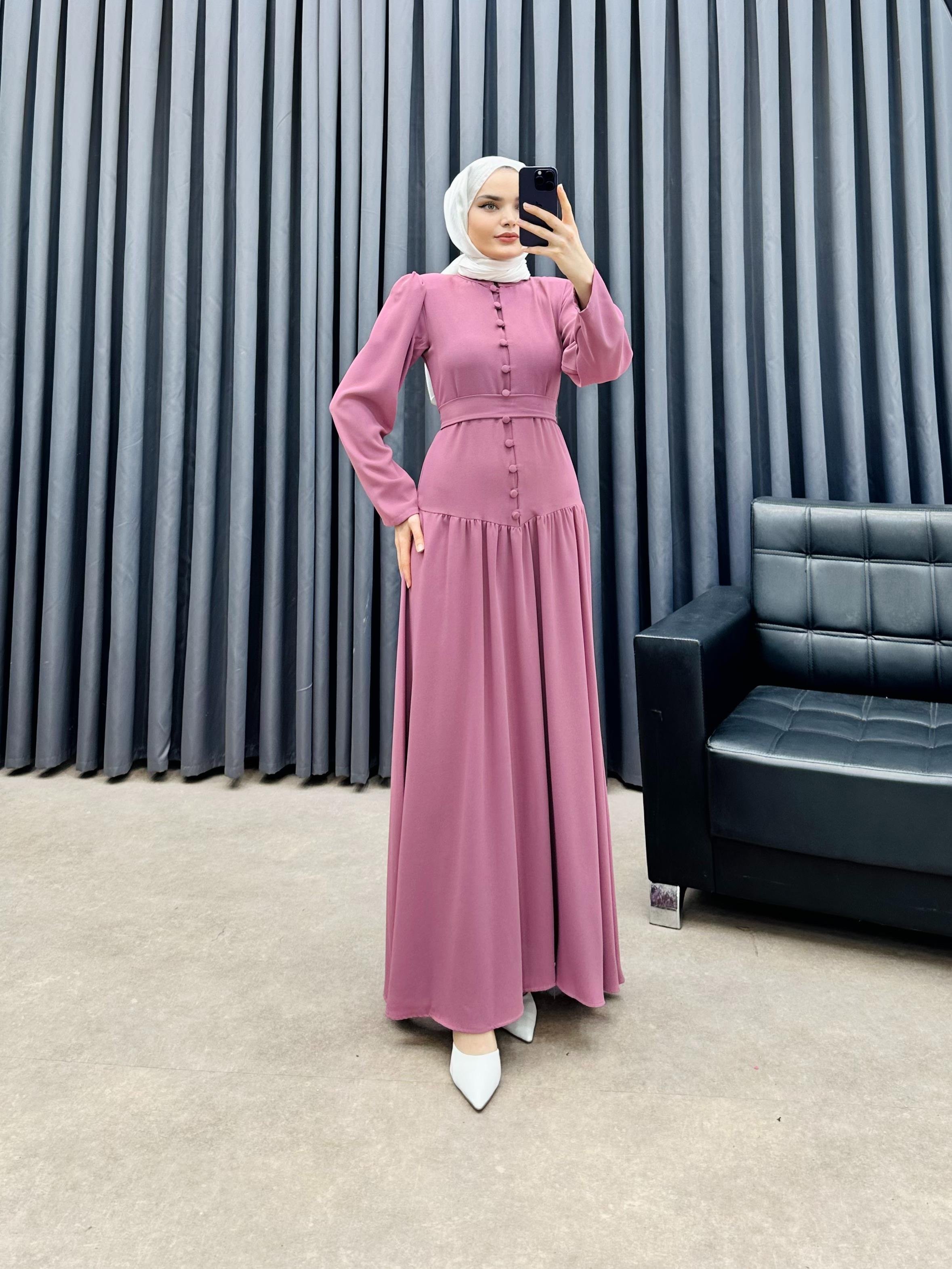 Önü Düğmeli Kemer Detaylı Elbise PUDRA