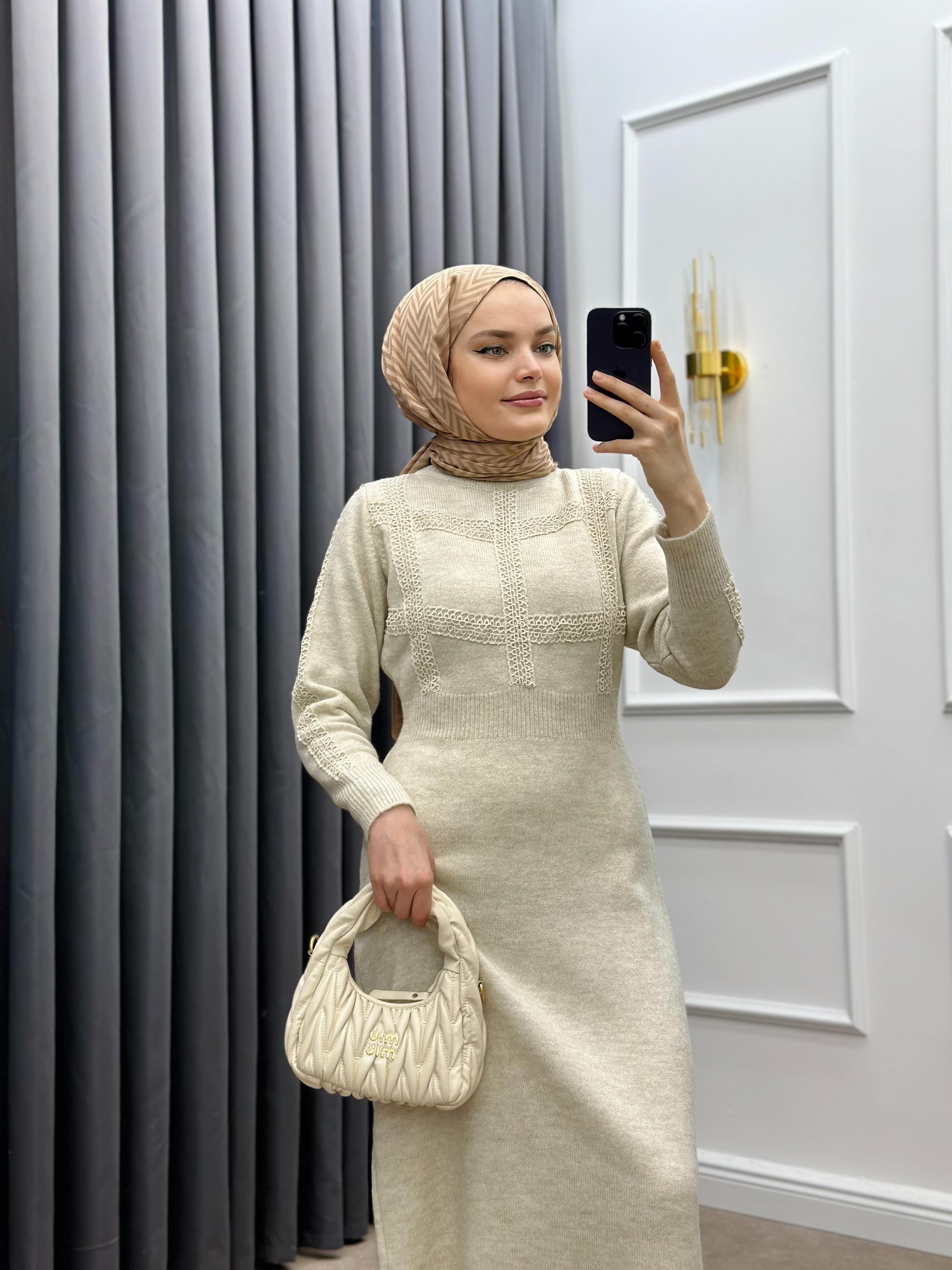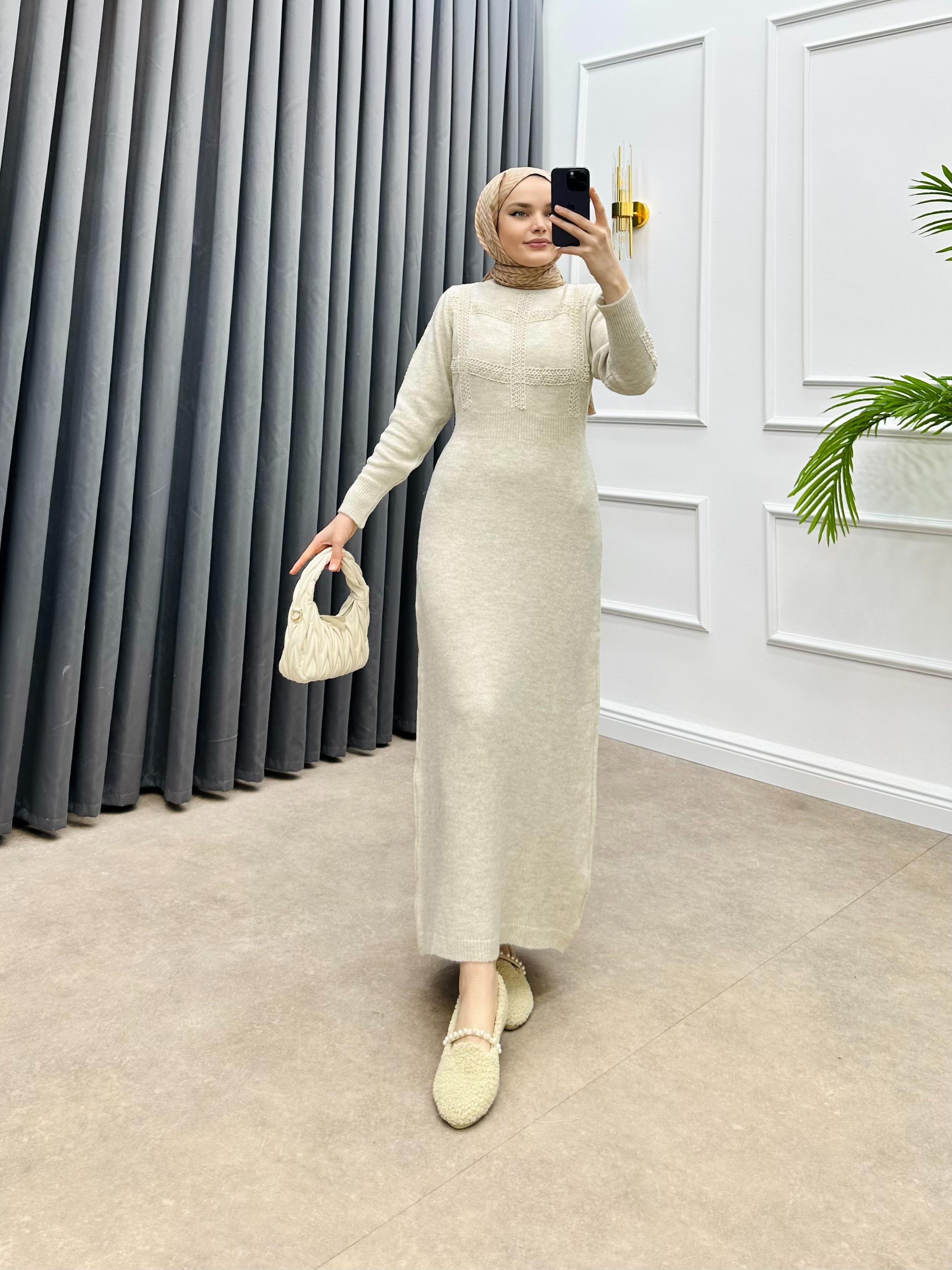 ÖNÜ NAKIŞLI TRİKO ELBİSE TAŞ