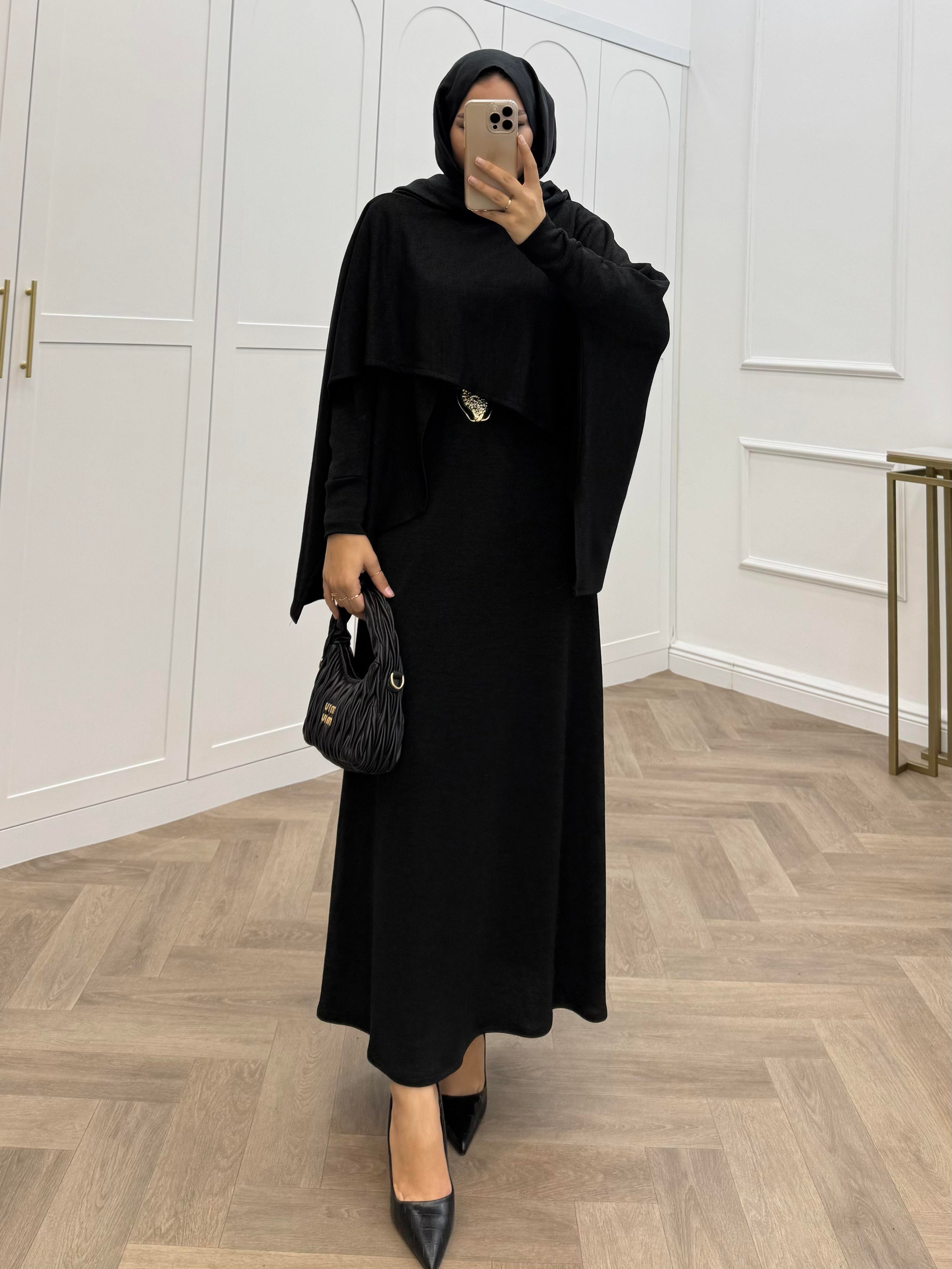 PANÇO DETAY TRİKO ELBİSE SİYAH