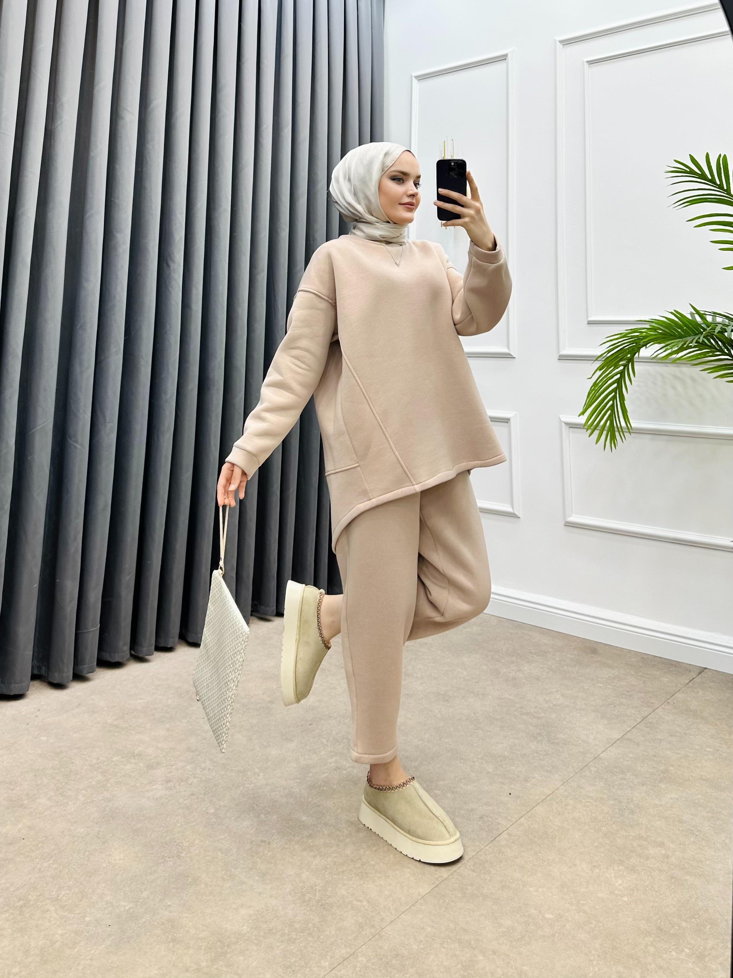 PANTOLONLU BASİC İKİLİ TAKIM BEJ