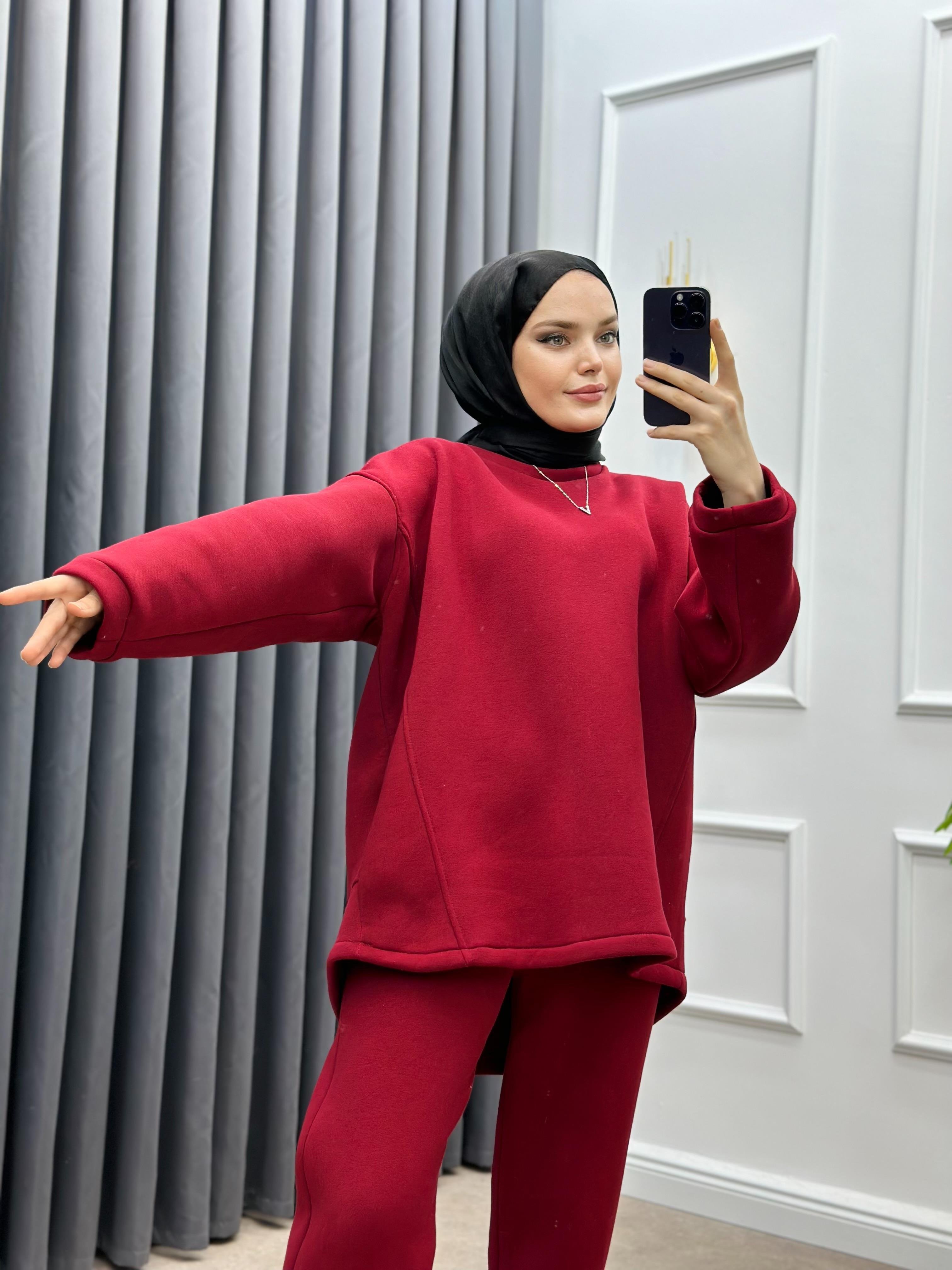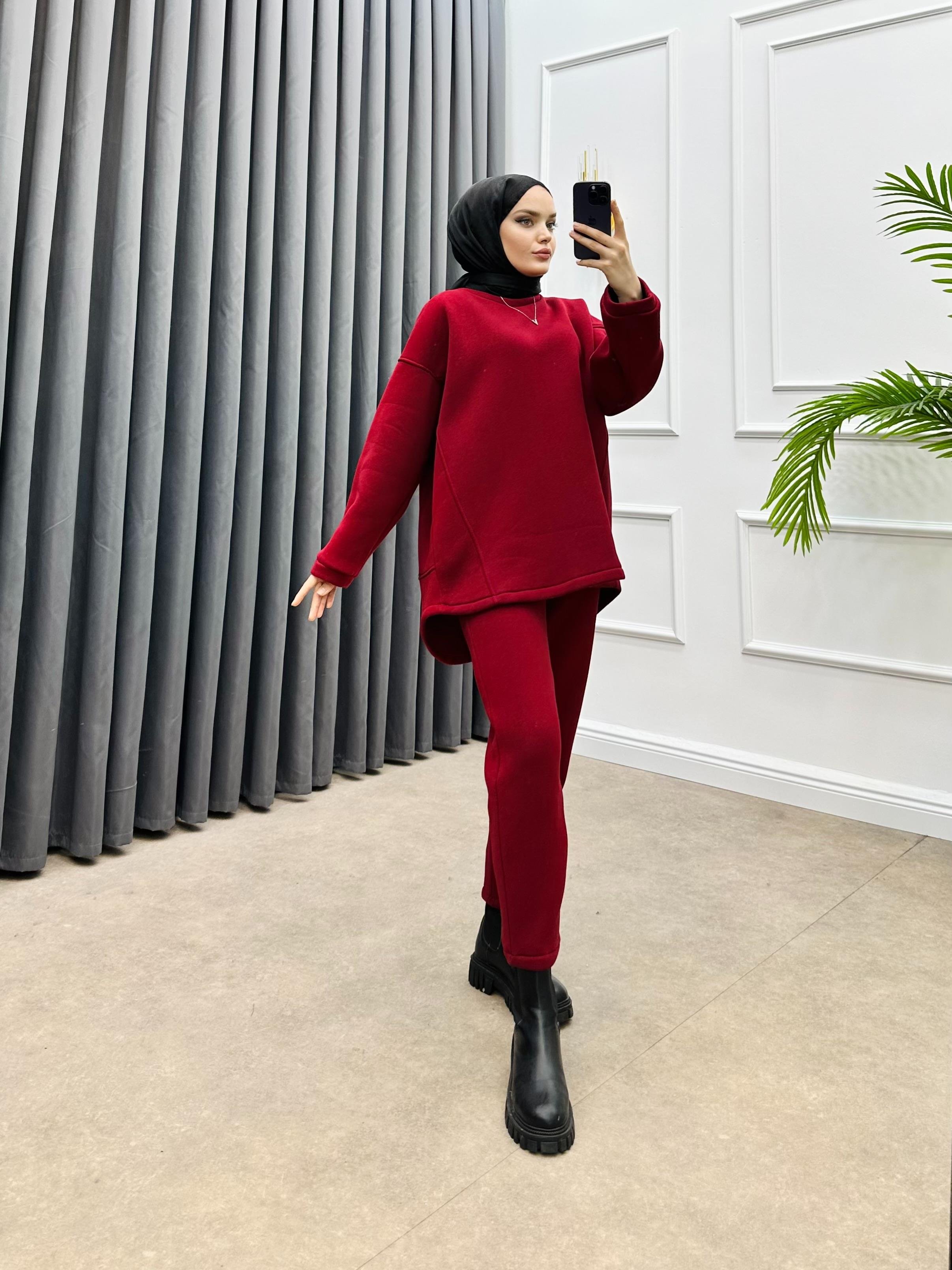 PANTOLONLU BASİC İKİLİ TAKIM BORDO