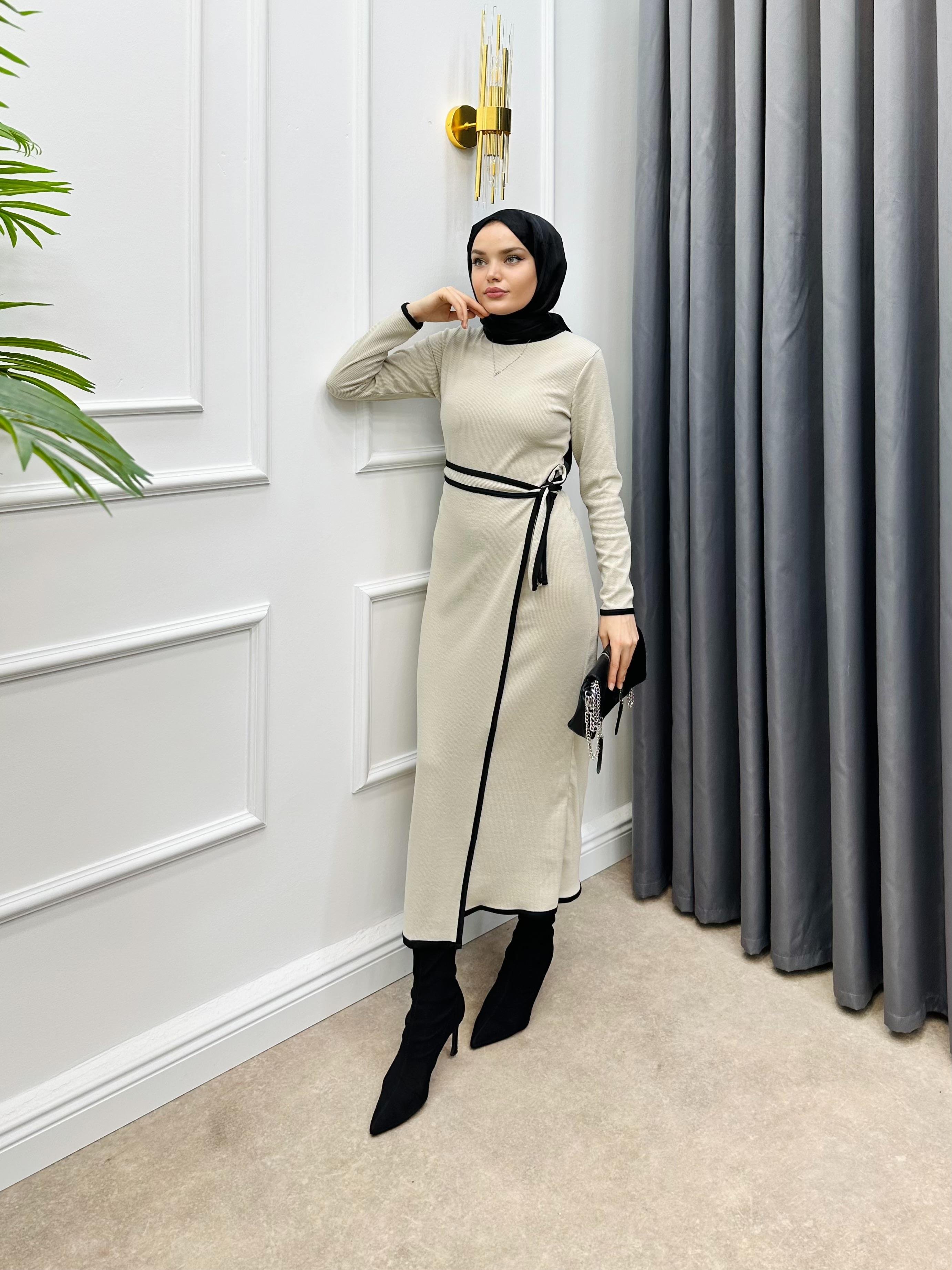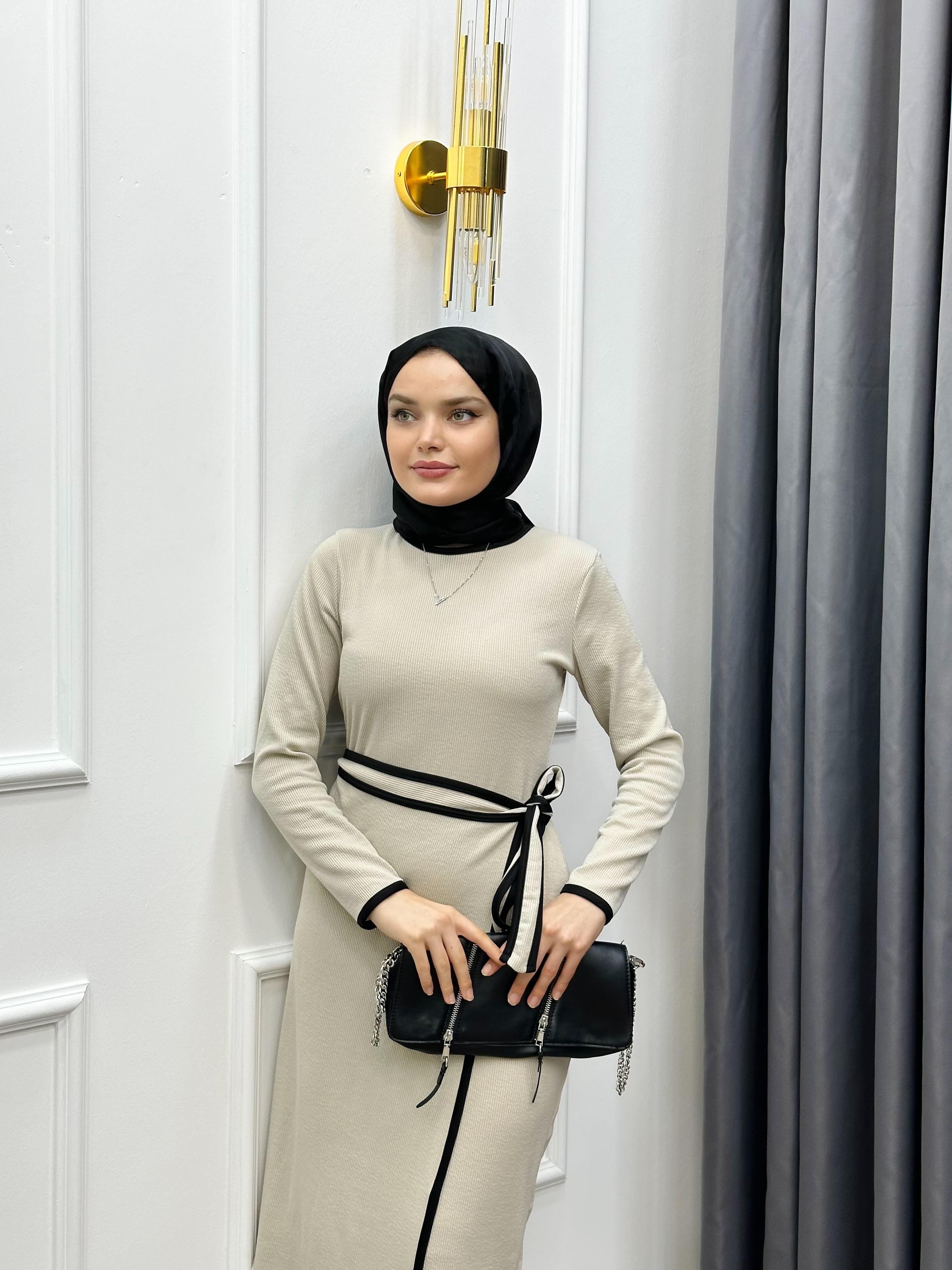 PARÇA DETAY BAĞLAMALI ELBİSE TAŞ
