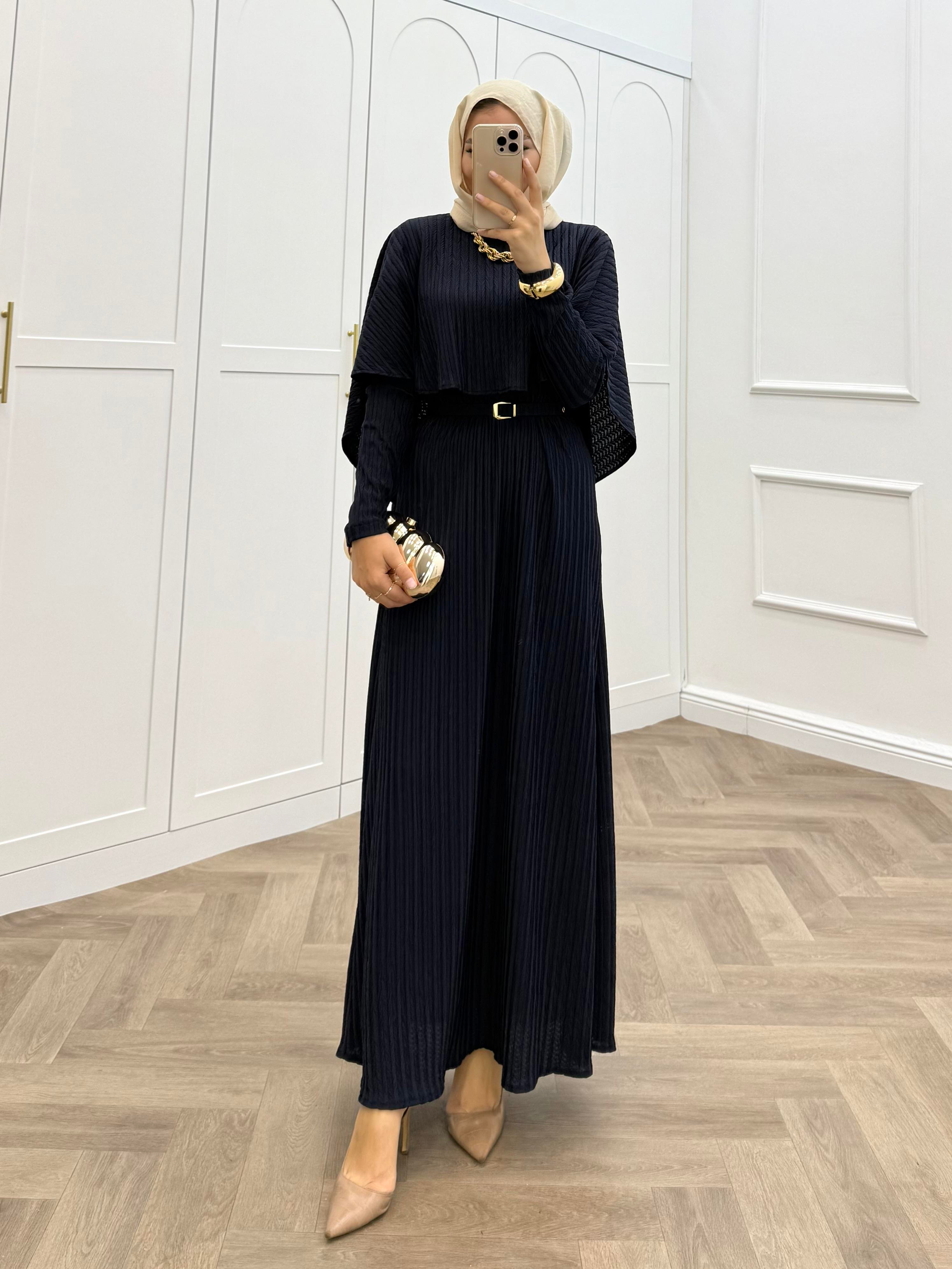 PELERİNLİ DİVA ELBİSE LACİVERT