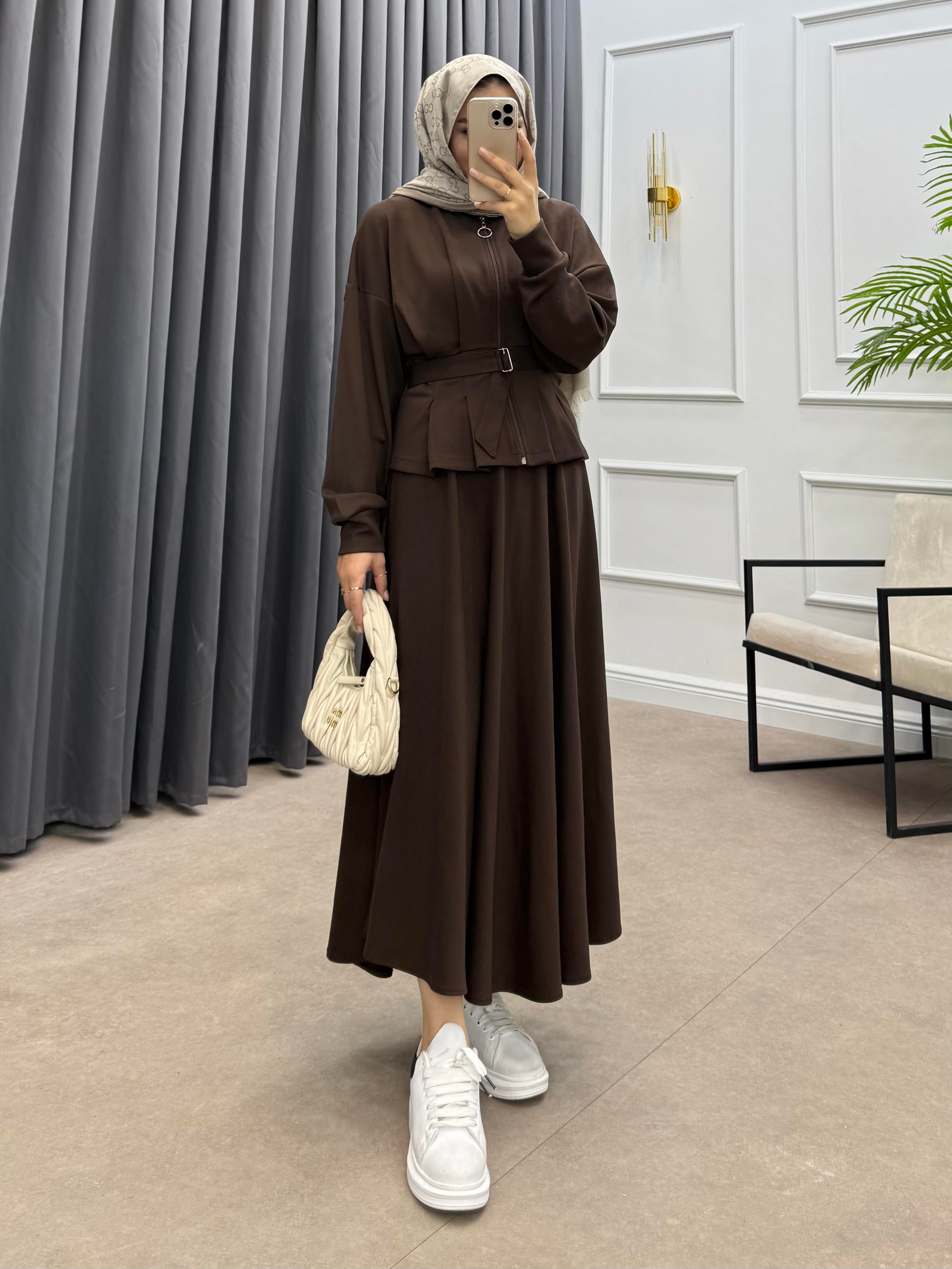 PENSLİ ETEKLİ TAKIM KAHVE