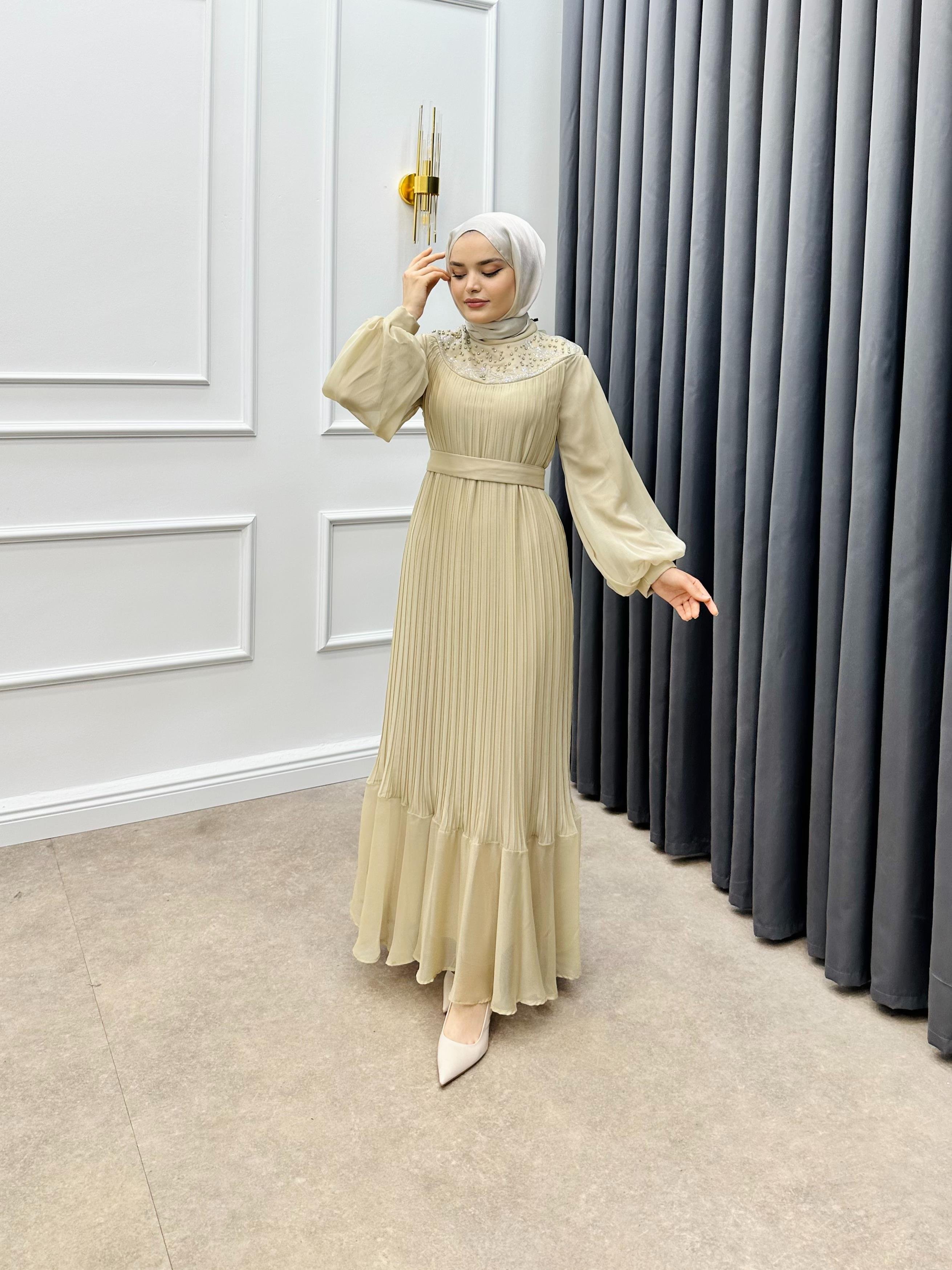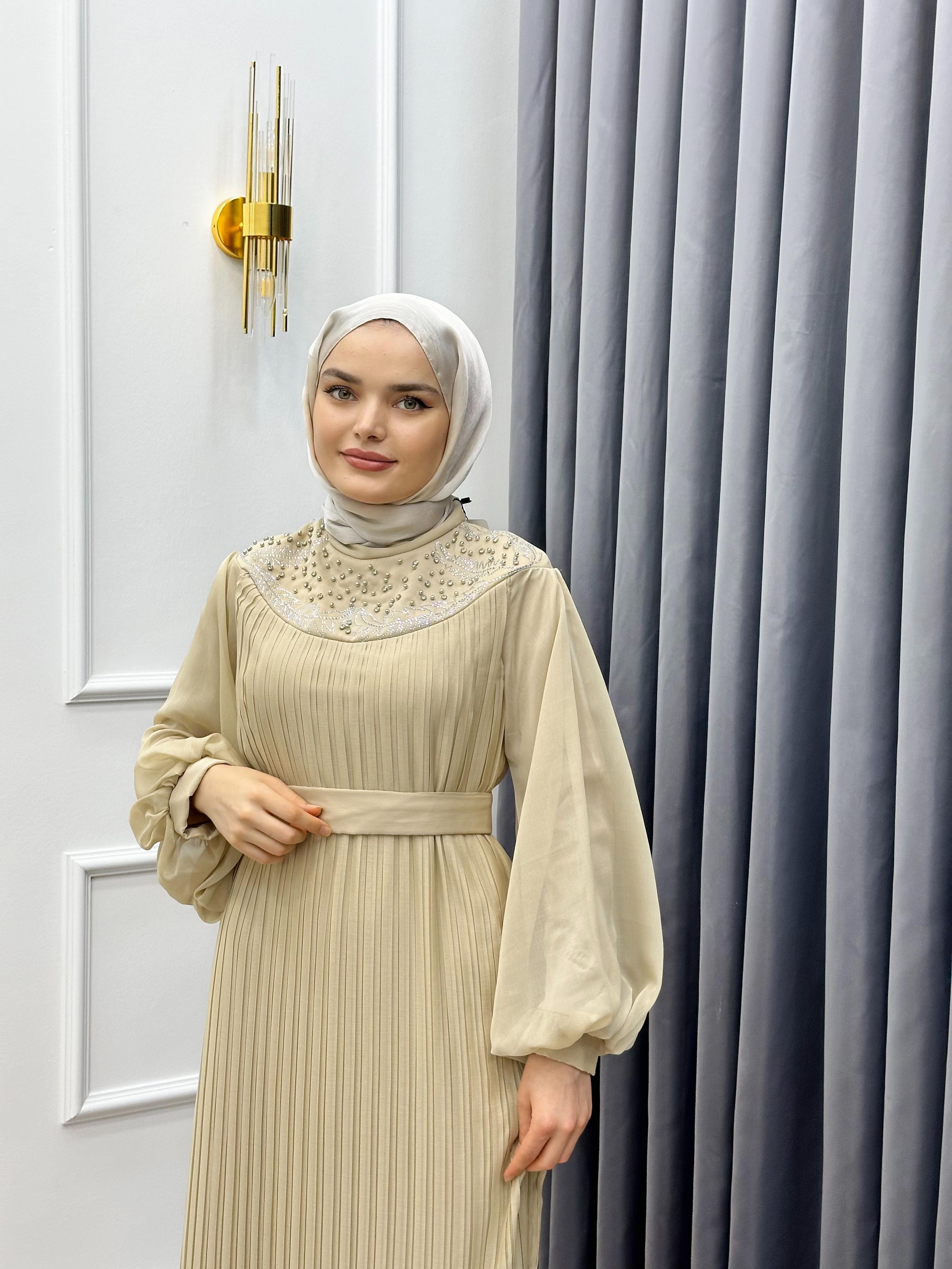 PLİSE JANJAN TAŞLI ABİYE KREM