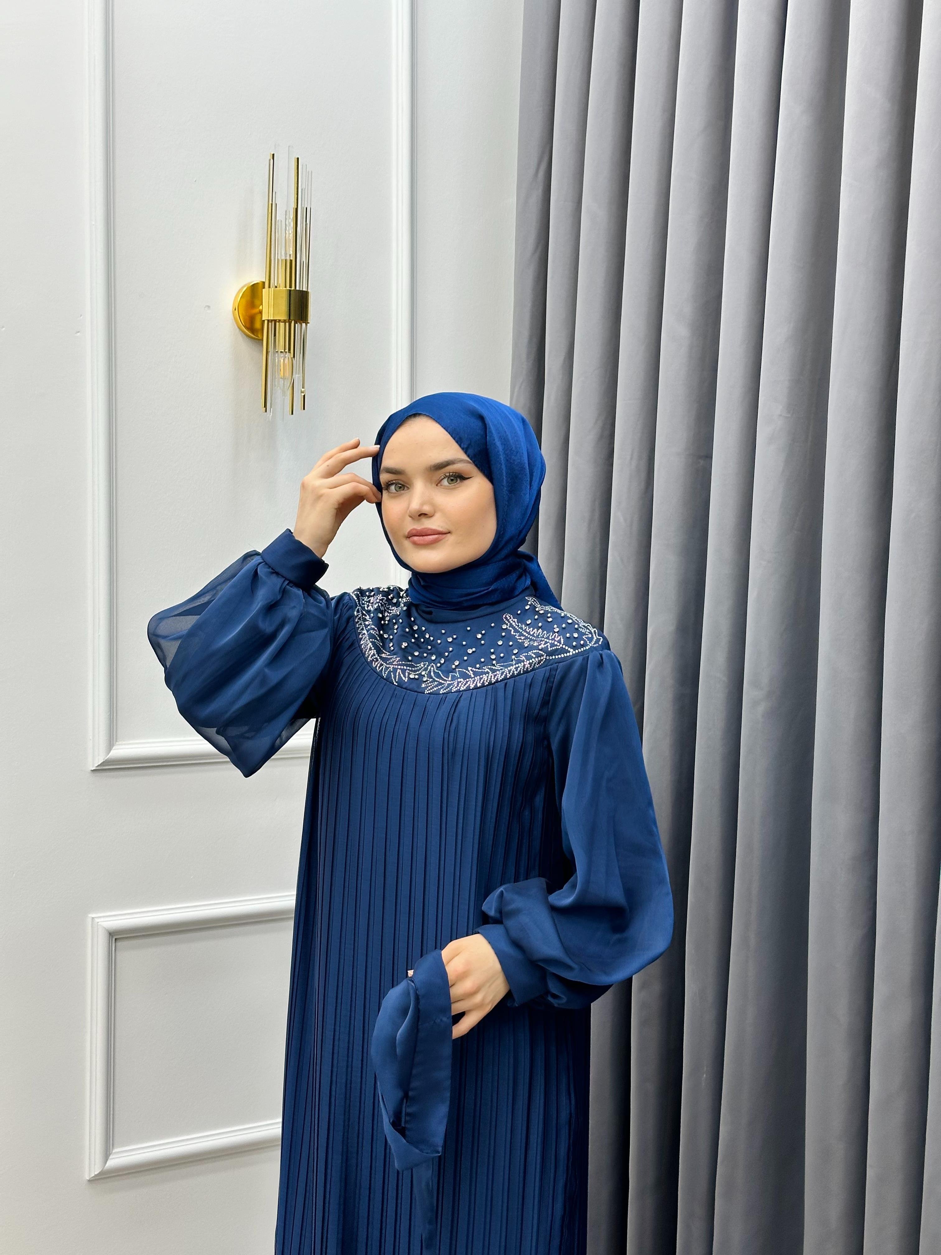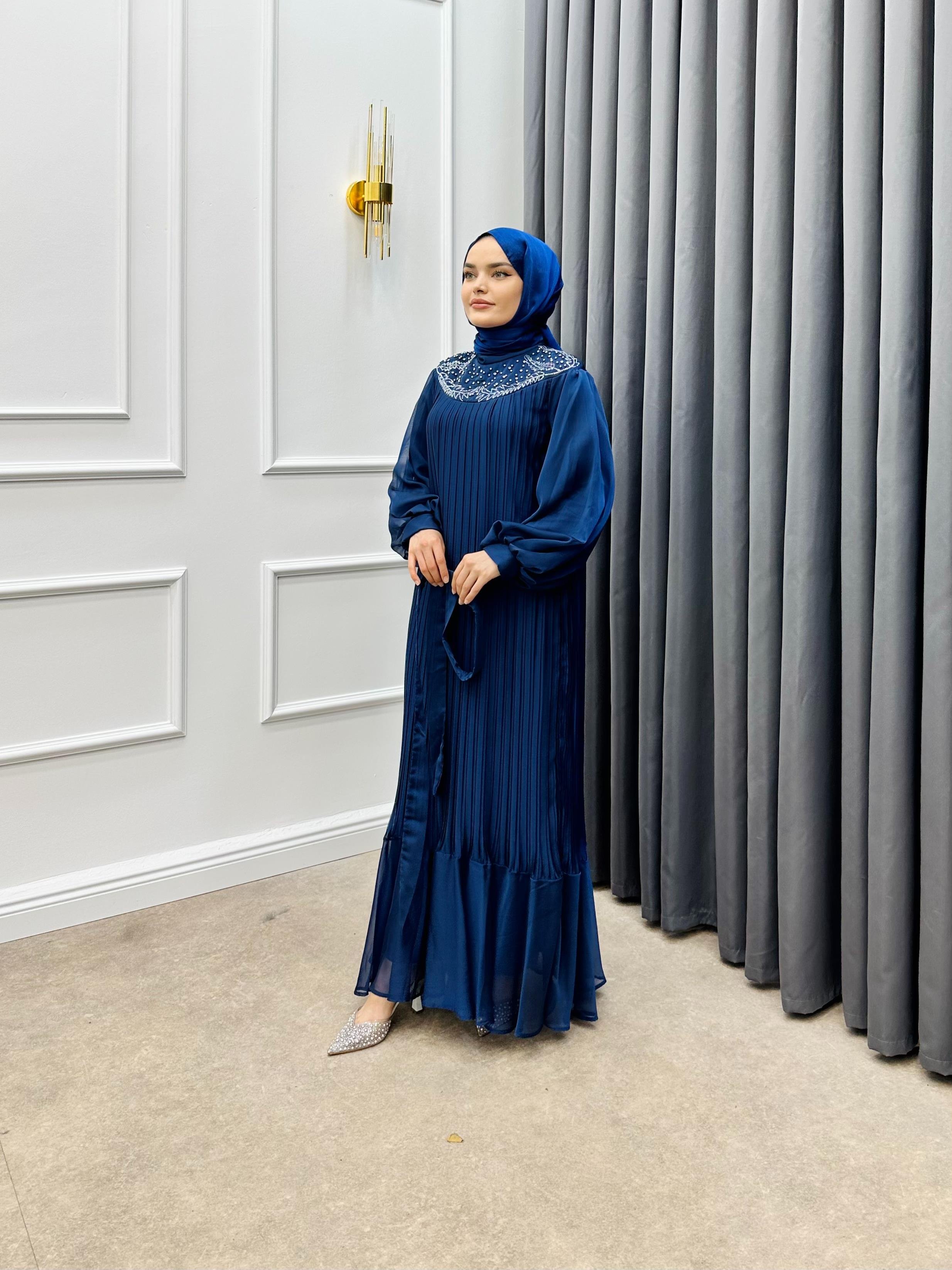 PLİSE JANJAN TAŞLI ABİYE LACİVERT