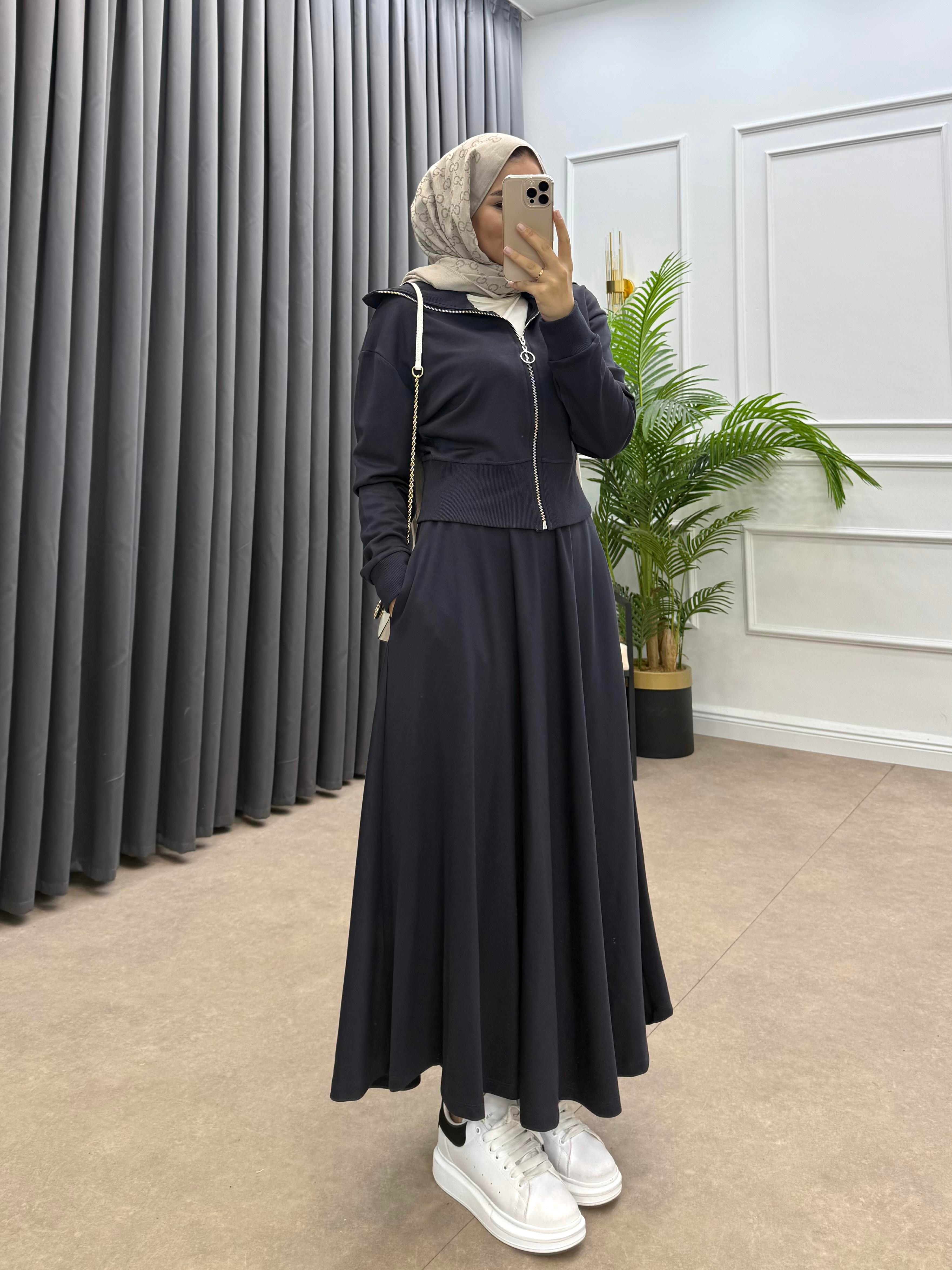 RİBANALI ETEKLİ TAKIM ANTRASİT