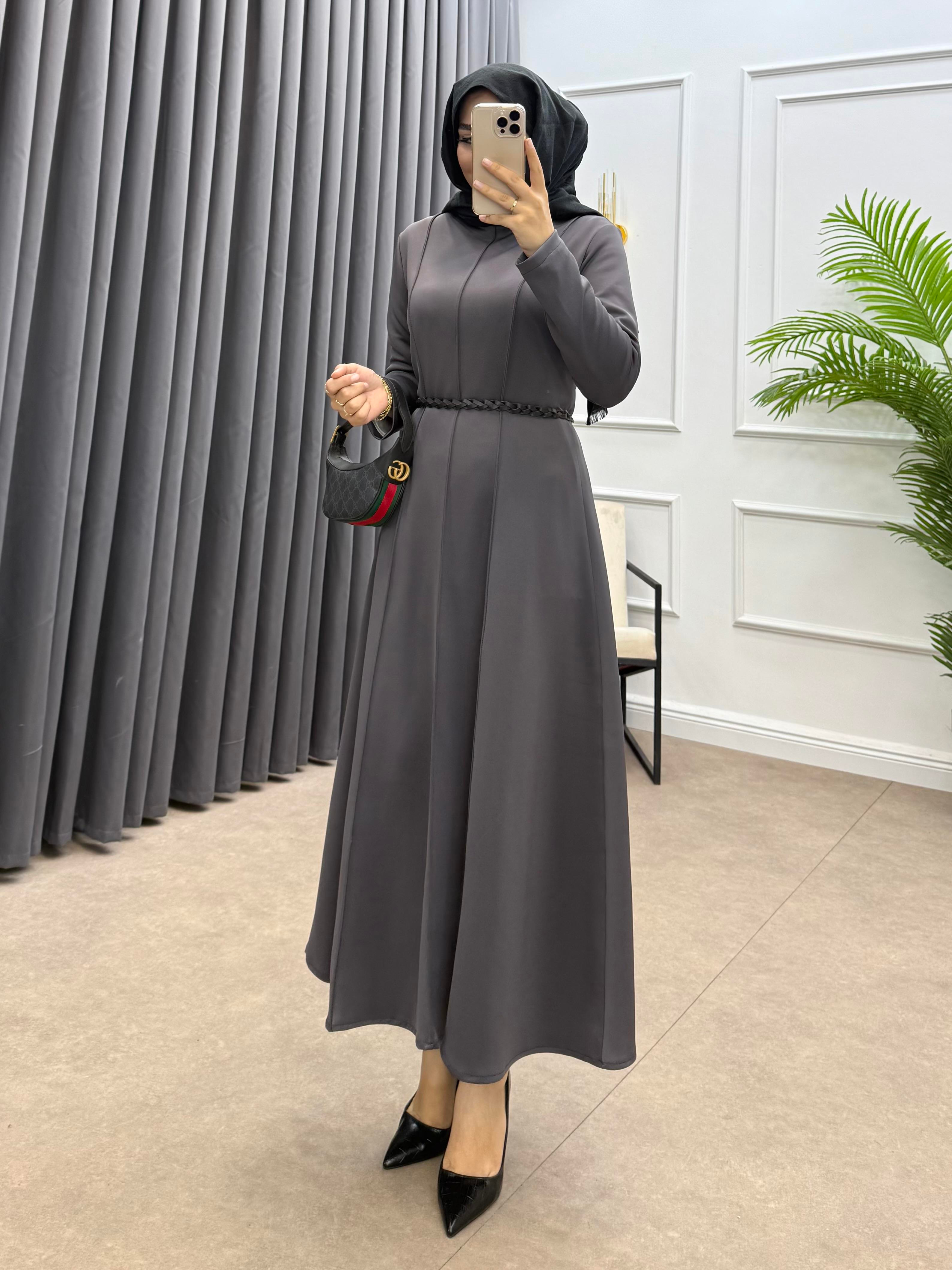 SCUBA ÖRGÜ KEMERLİ ELBİSE ANTRASİT