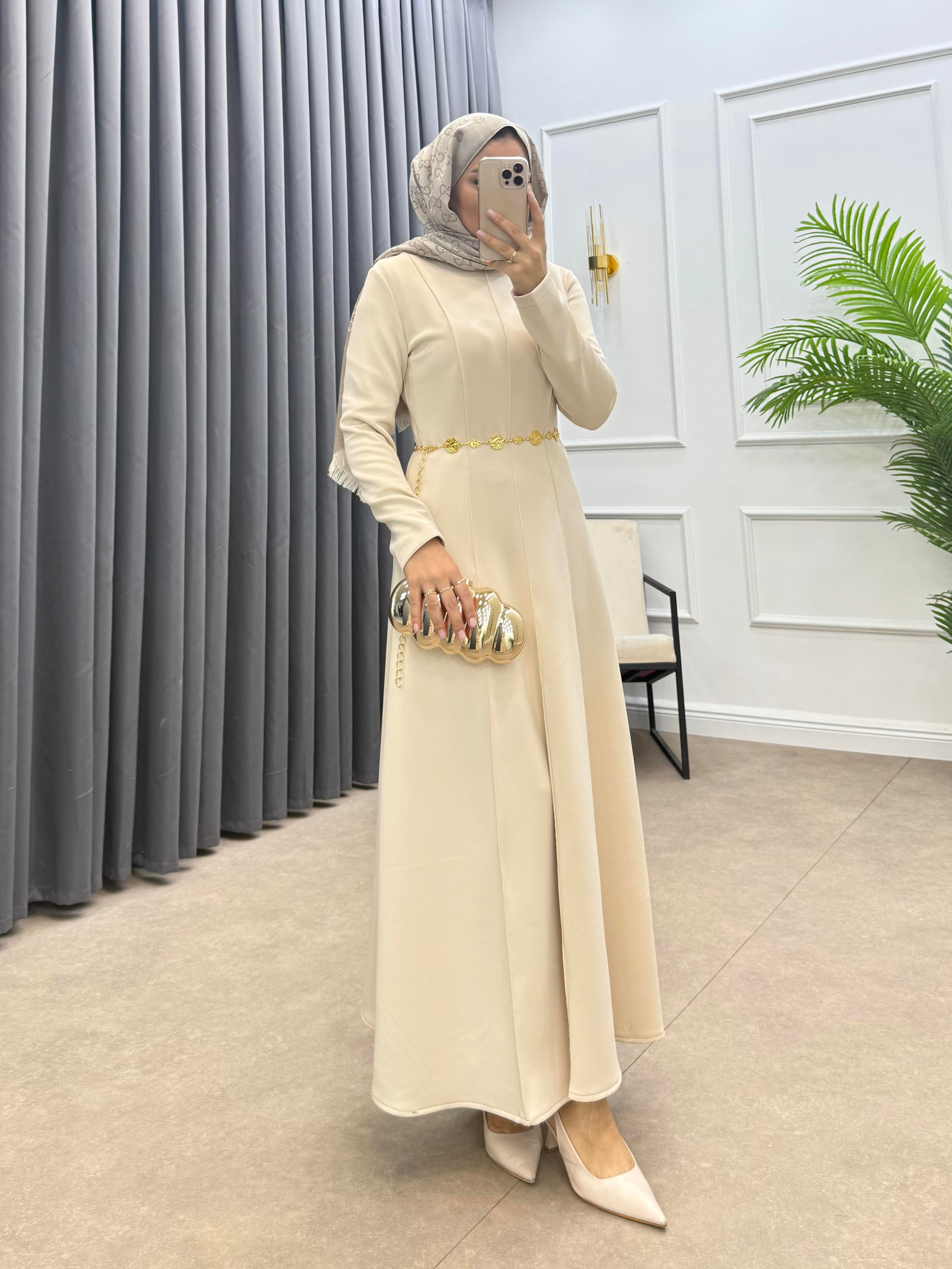 SCUBA ÖRGÜ KEMERLİ ELBİSE TAŞ