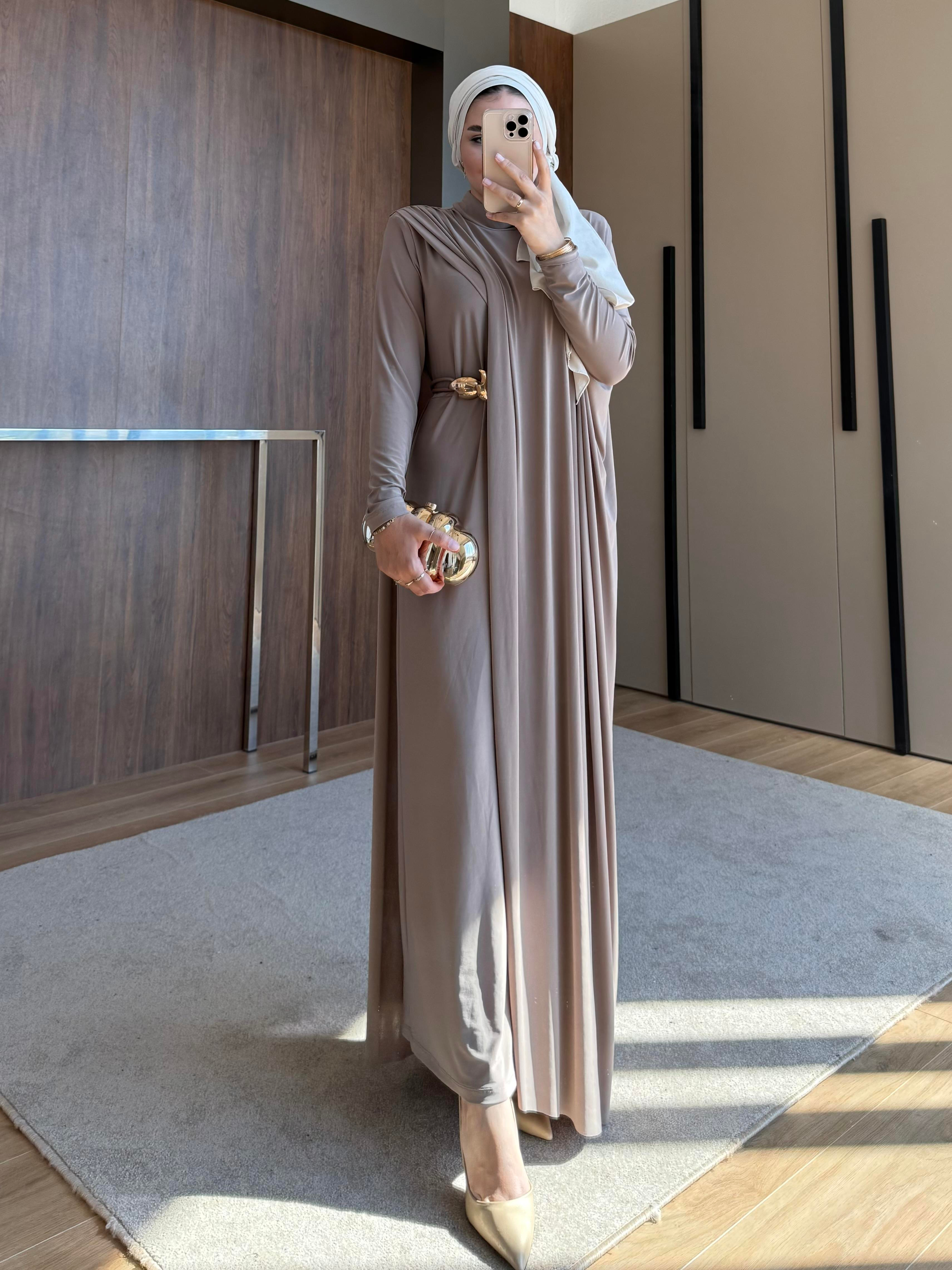 TABA KEMERLİ PENYE ELBİSE BEJ