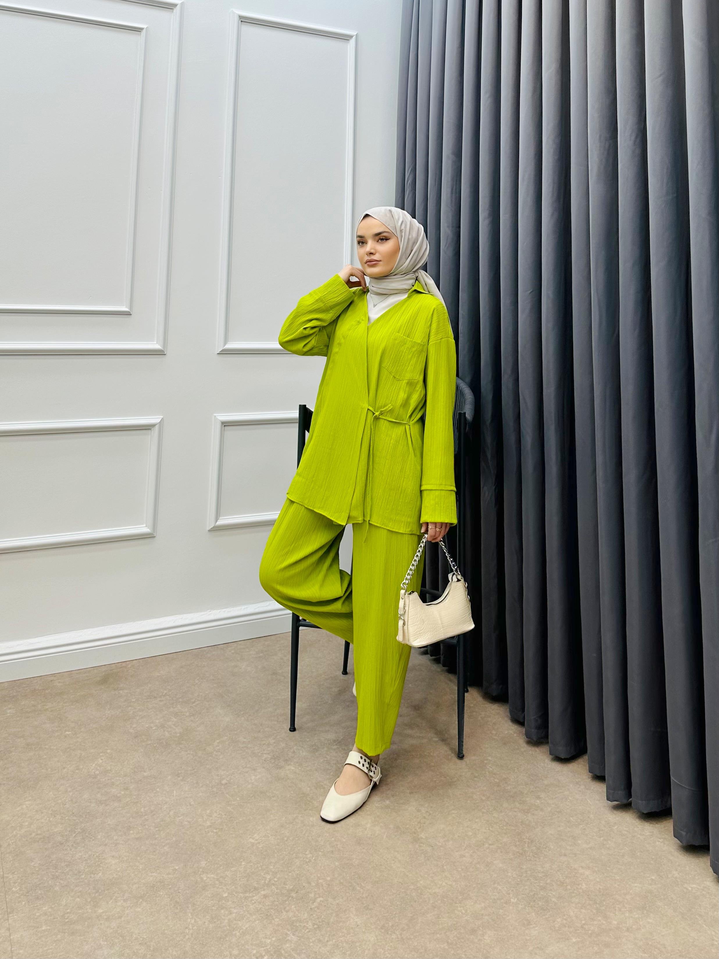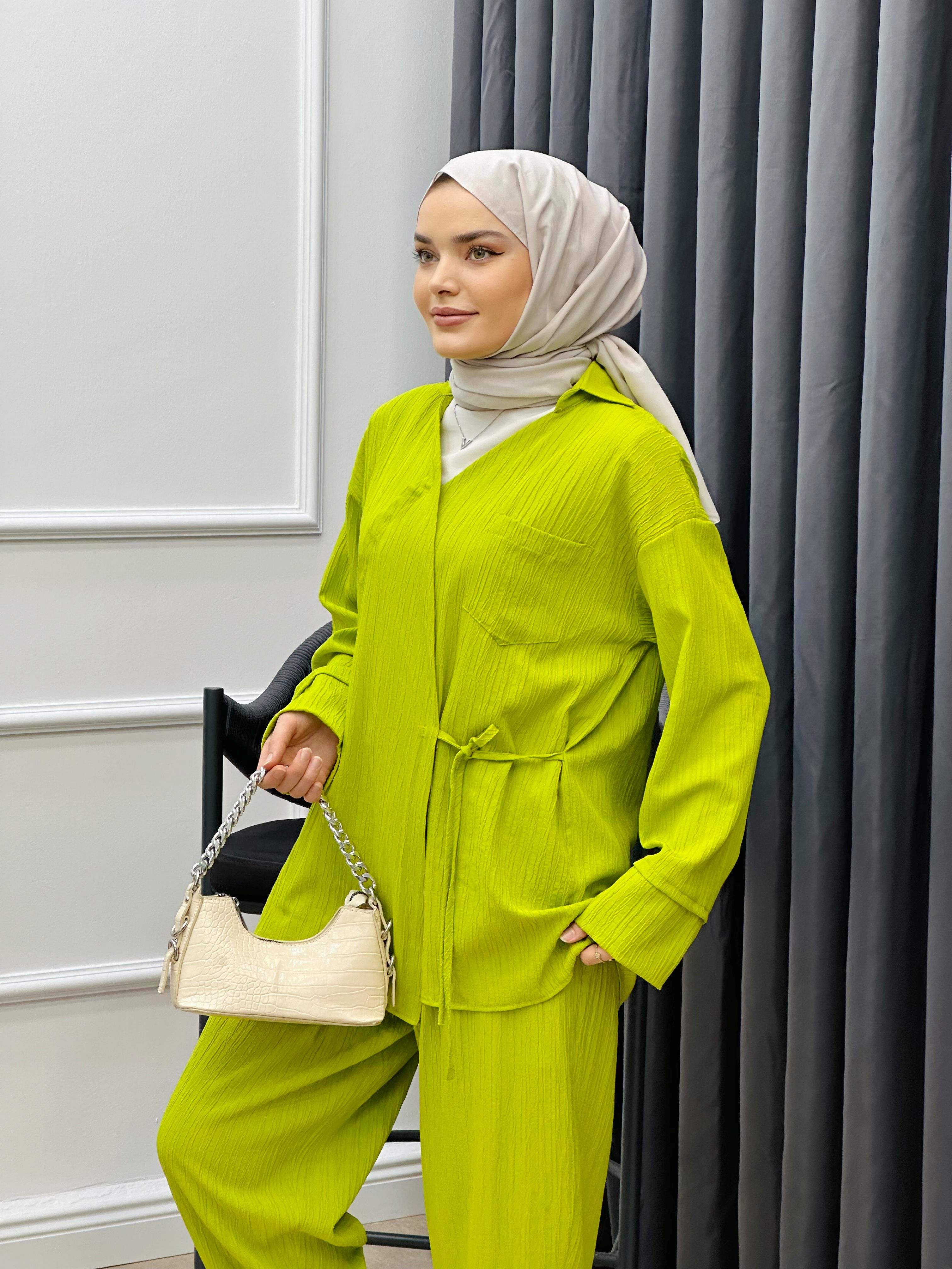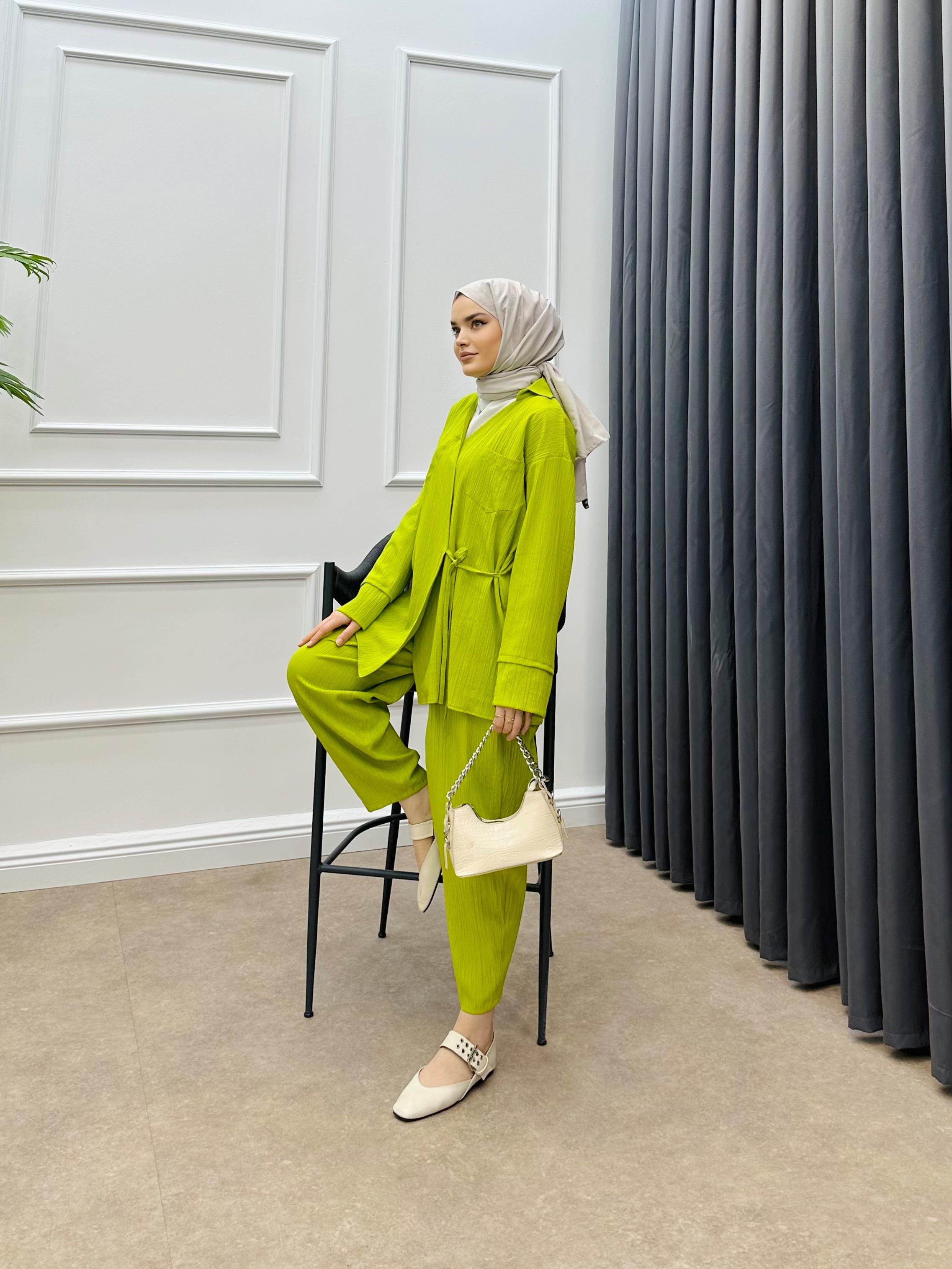 YANDAN BAĞLAMALI İKİLİ TAKIM FISTIK YEŞİLİ