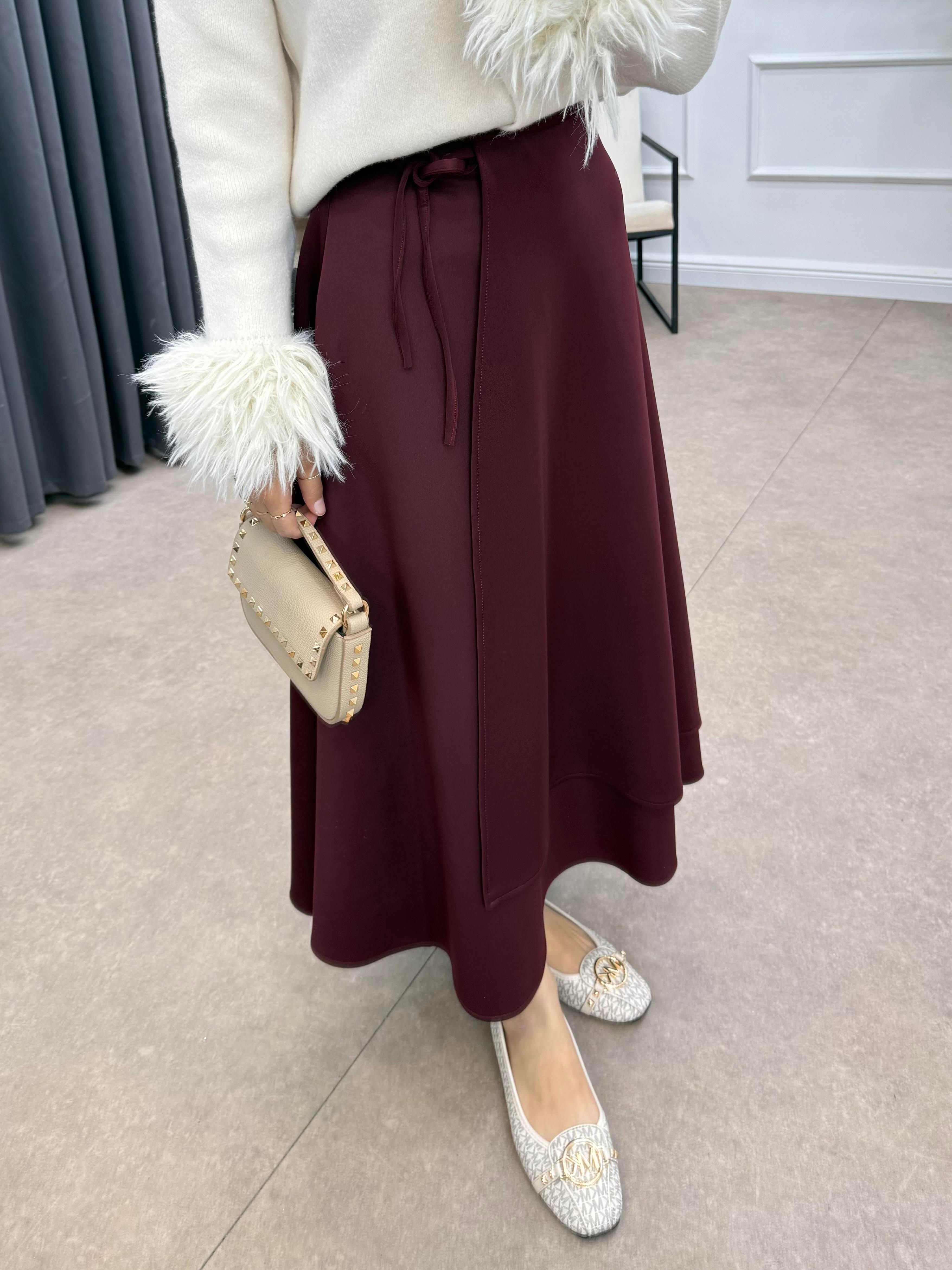 YANDAN İPLE BAĞLAMALI SCUBA ETEK BORDO
