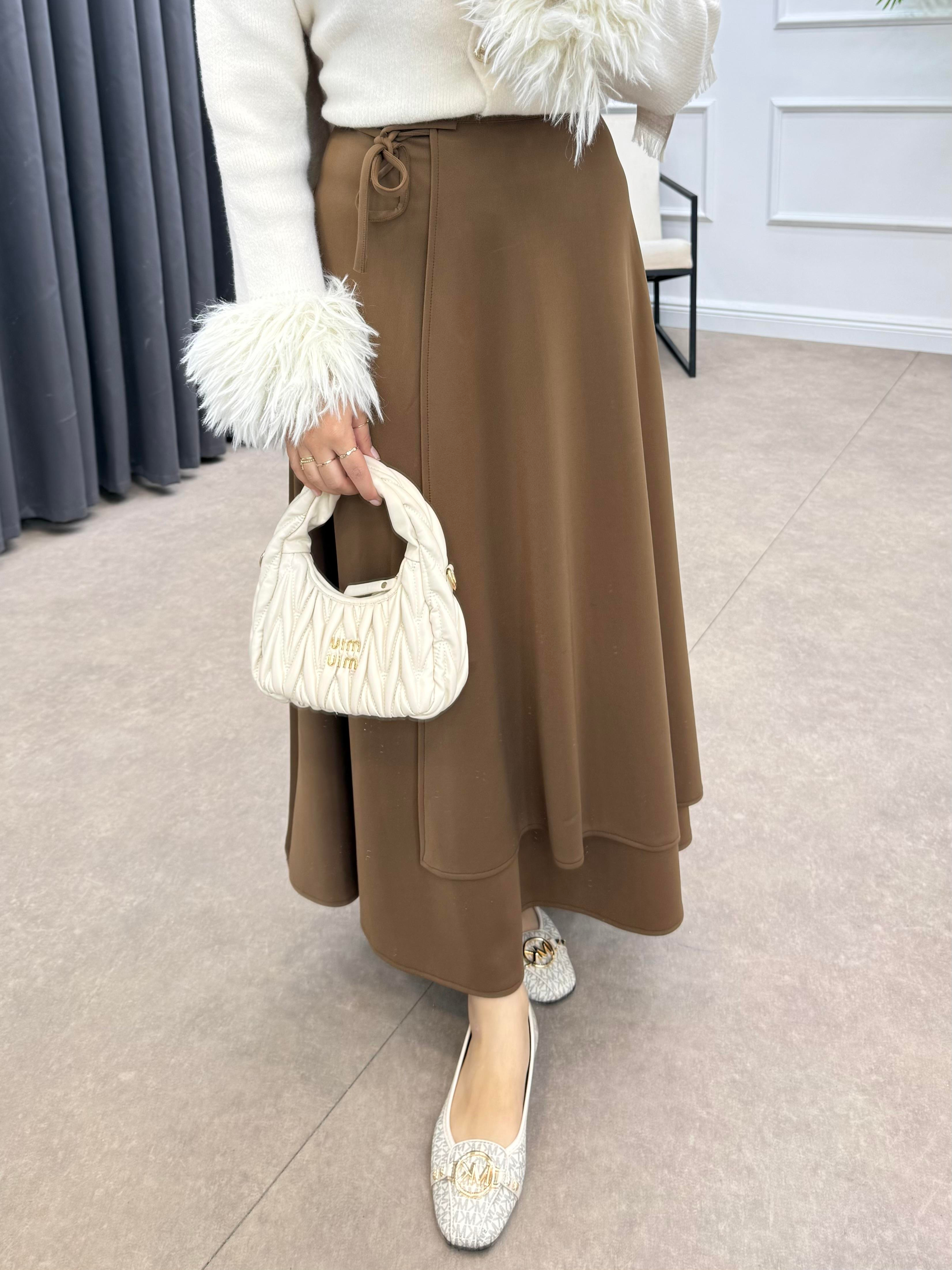 YANDAN İPLE BAĞLAMALI SCUBA ETEK KAHVE