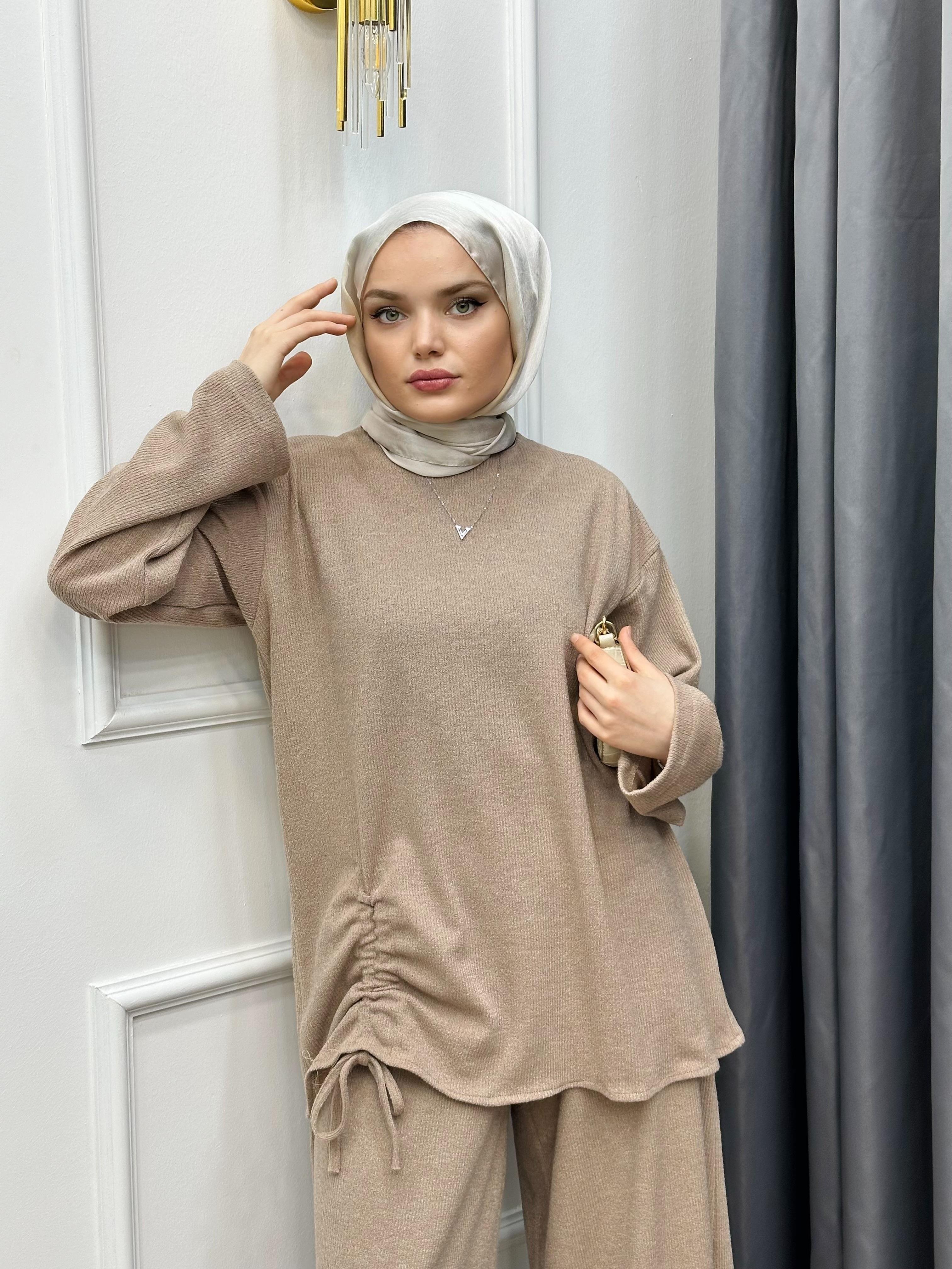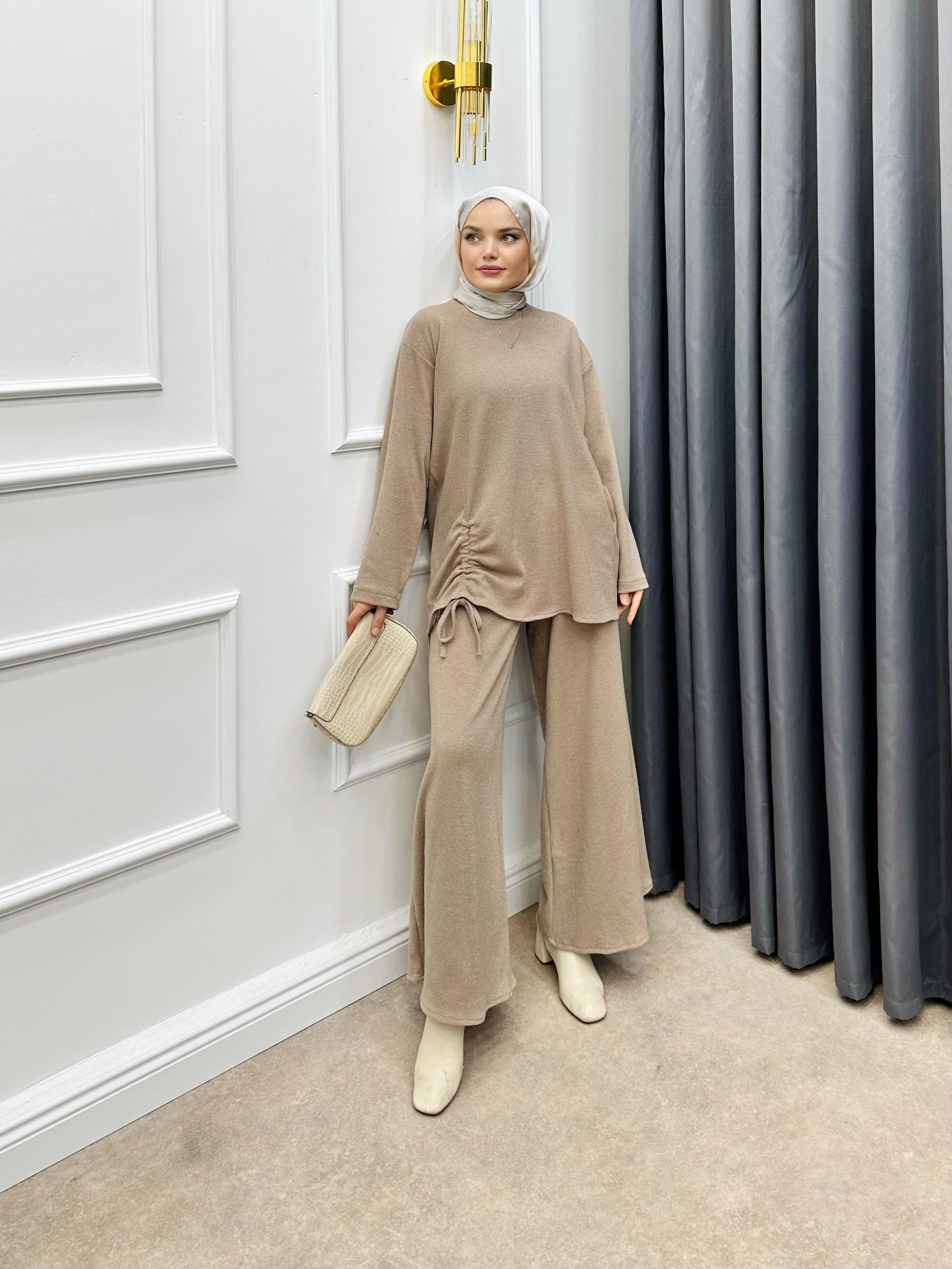 YANDAN İPLİ İKİLİ TAKIM BEJ
