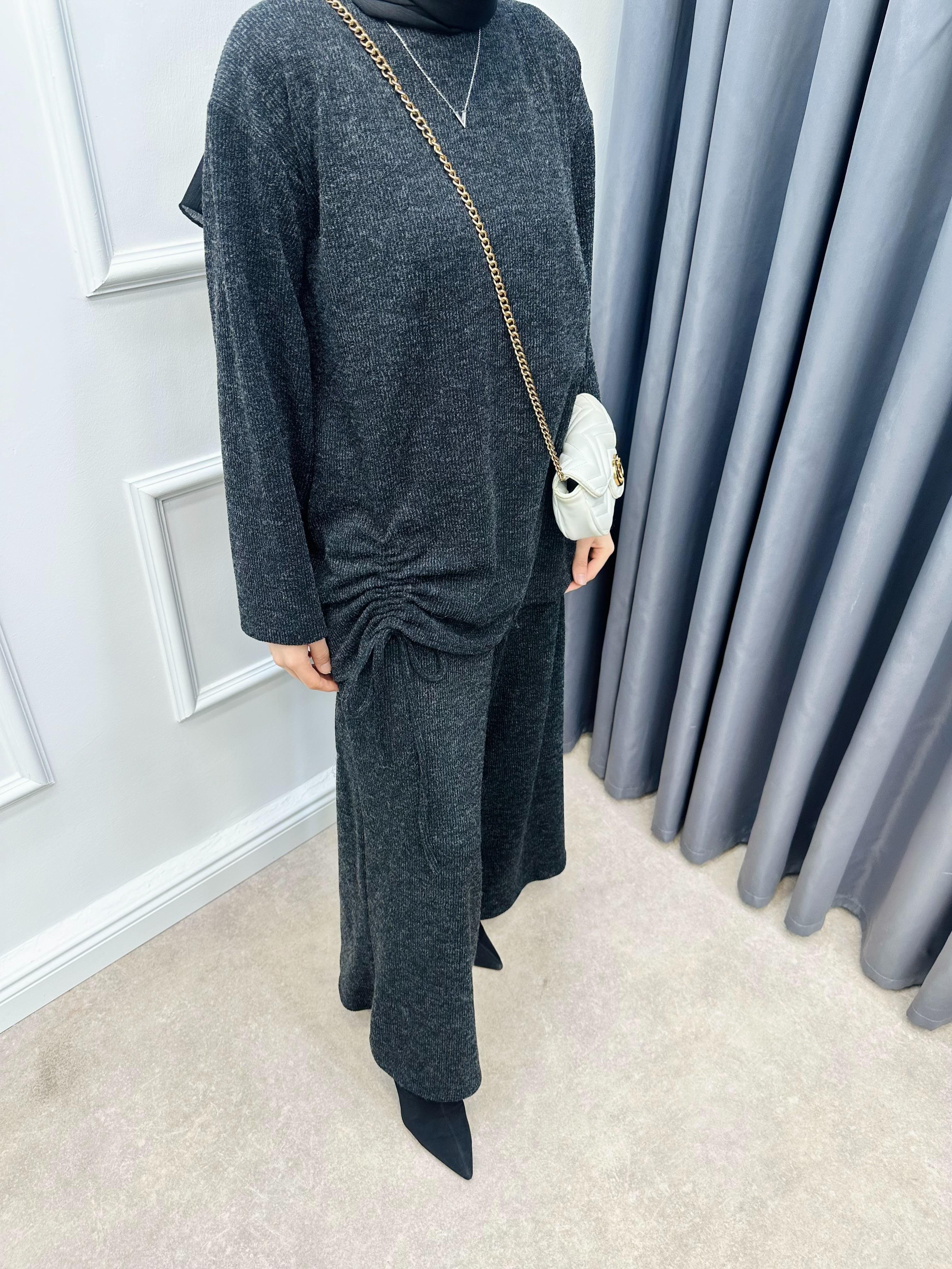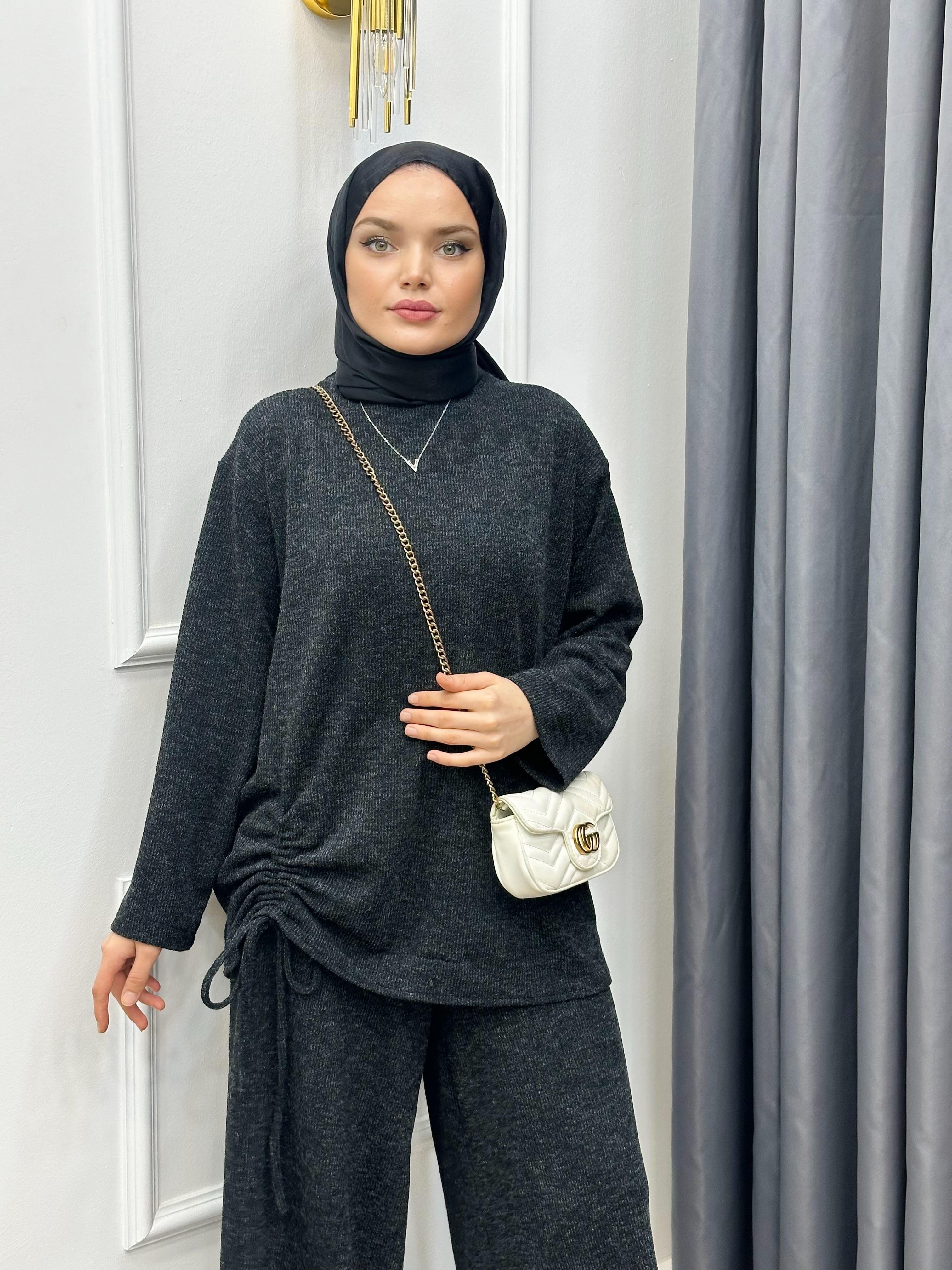 YANDAN İPLİ İKİLİ TAKIM SİYAH