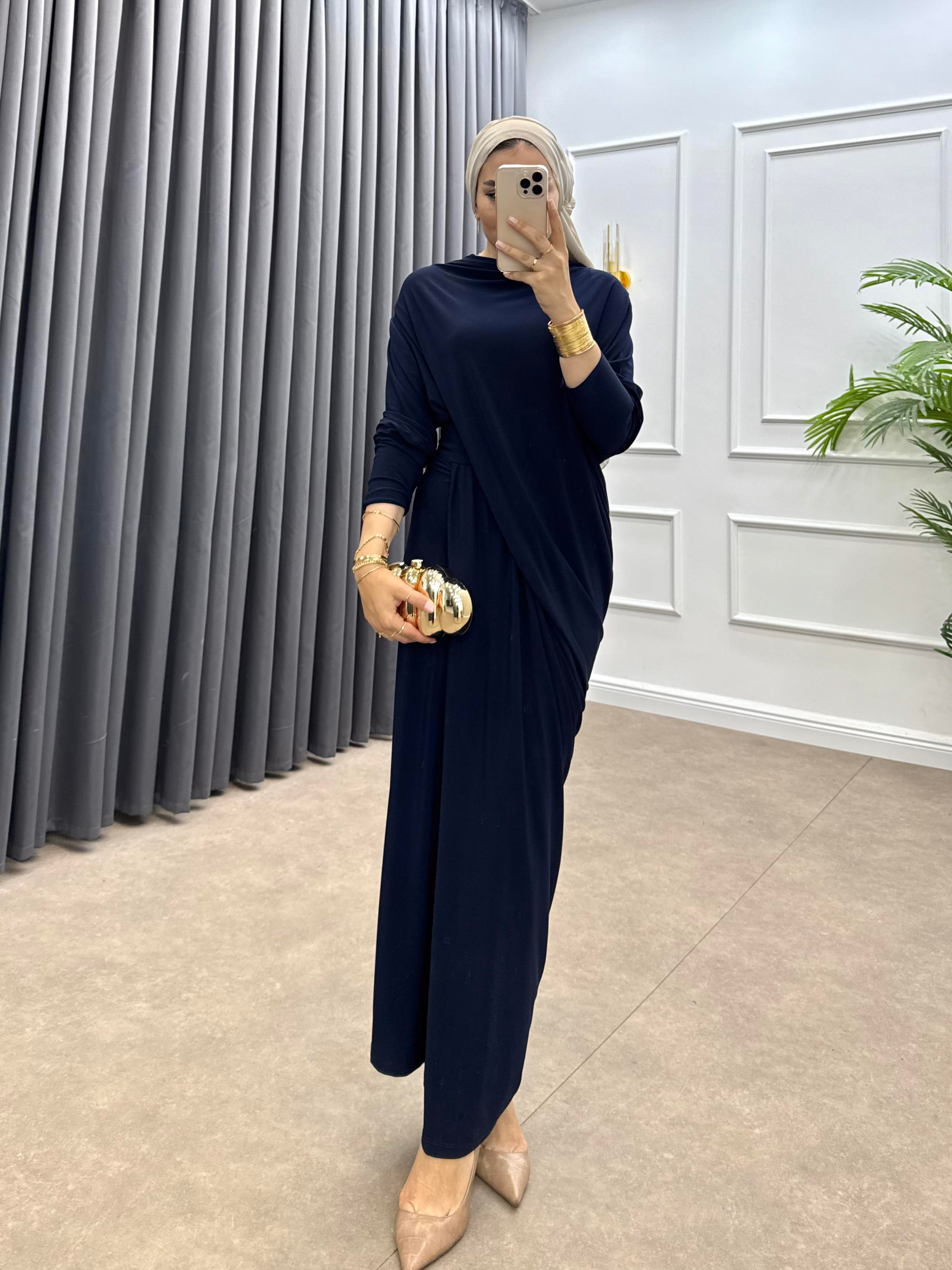 YARASA KOL SANDY ELBİSE LACİVERT