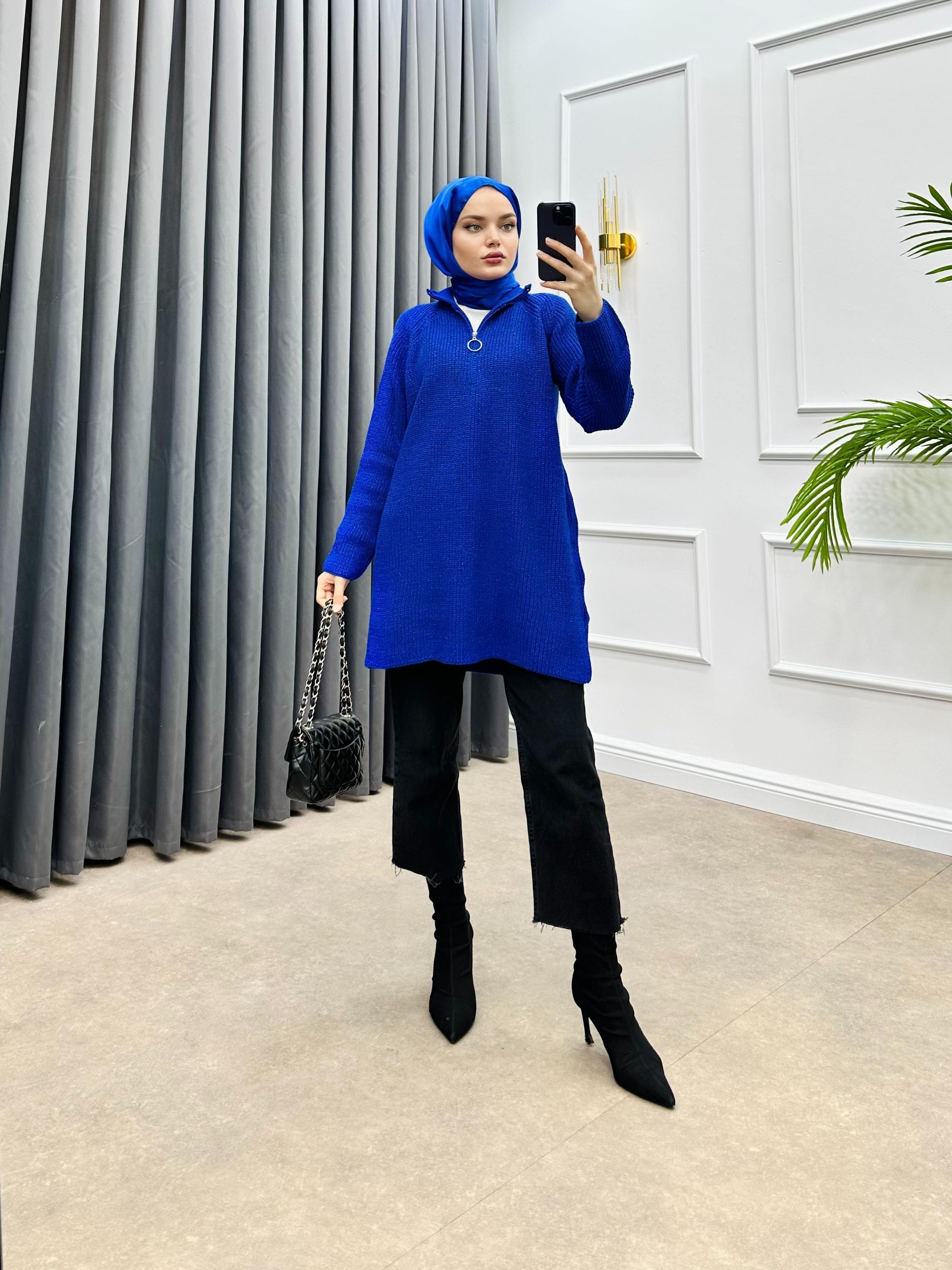 YARIM FERMUARLI SİMLİ KAZAK SAKS